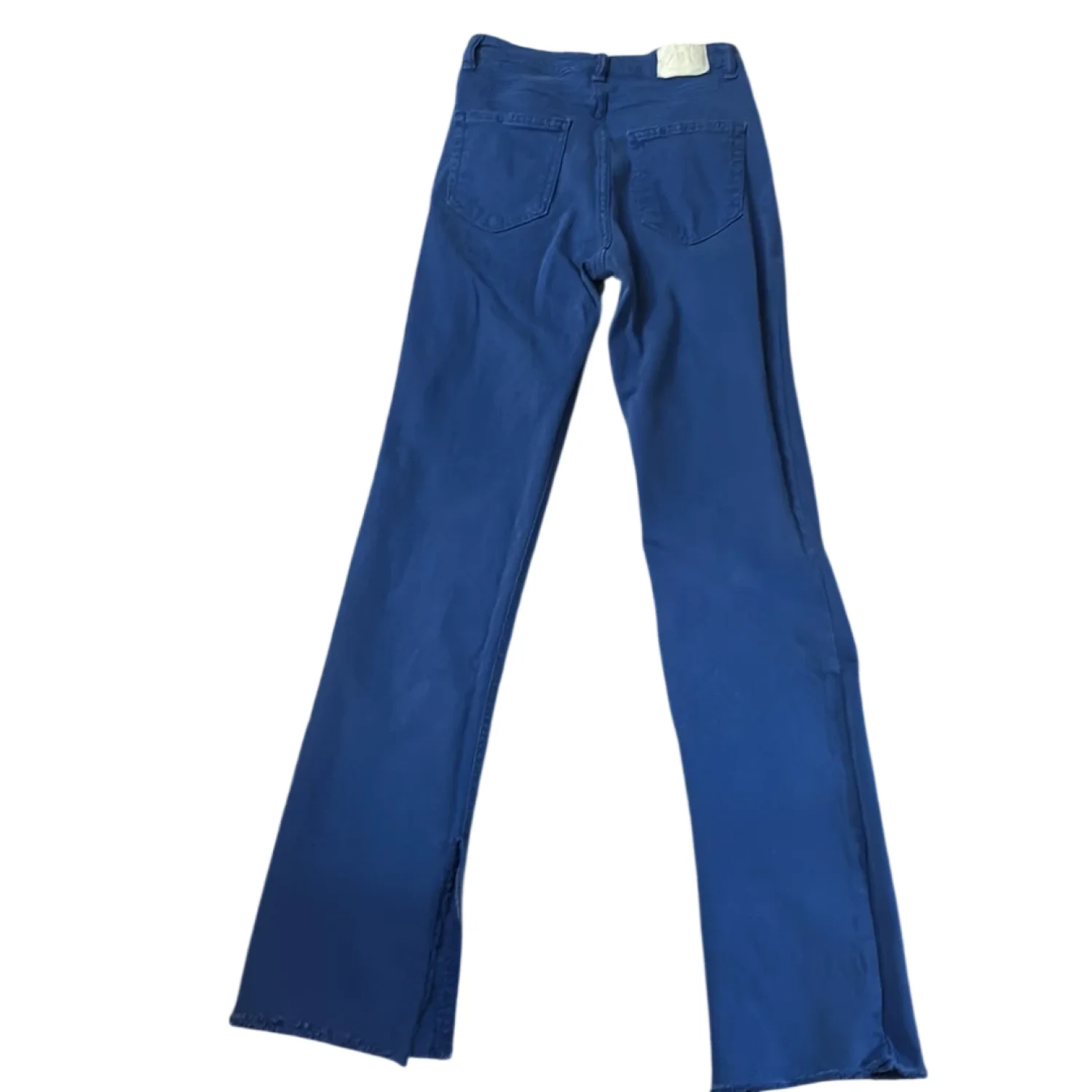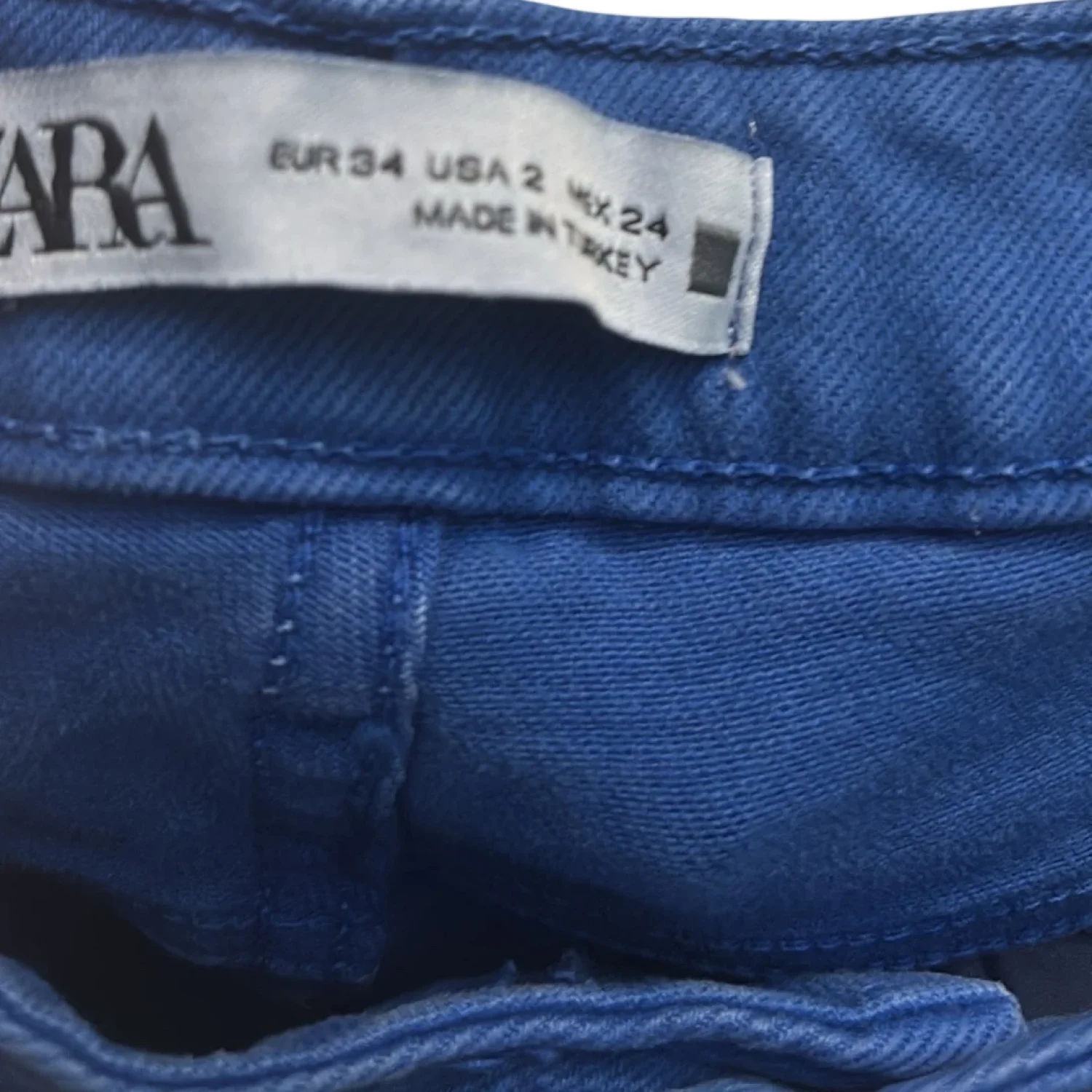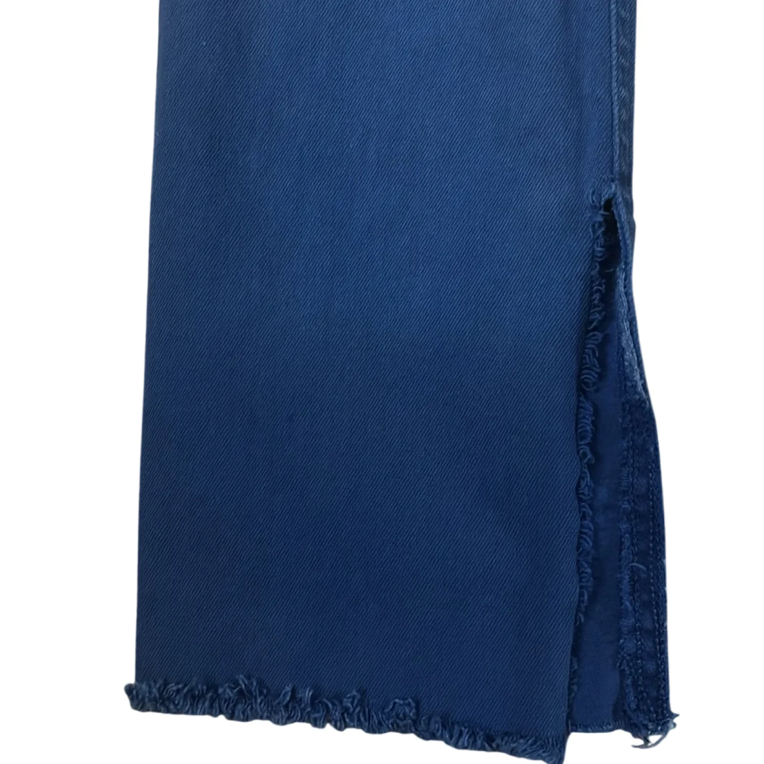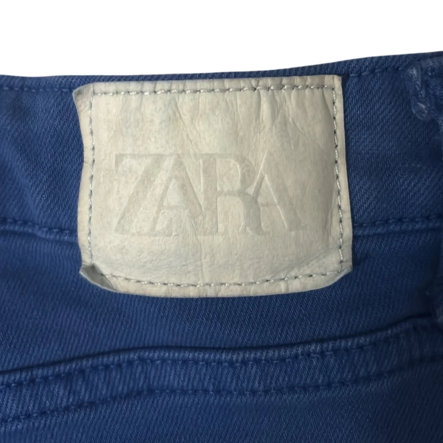 ZARA Straight Leg Jeans Size 2 High Rise Hem Slit Frayed Cobalt Blue Denim