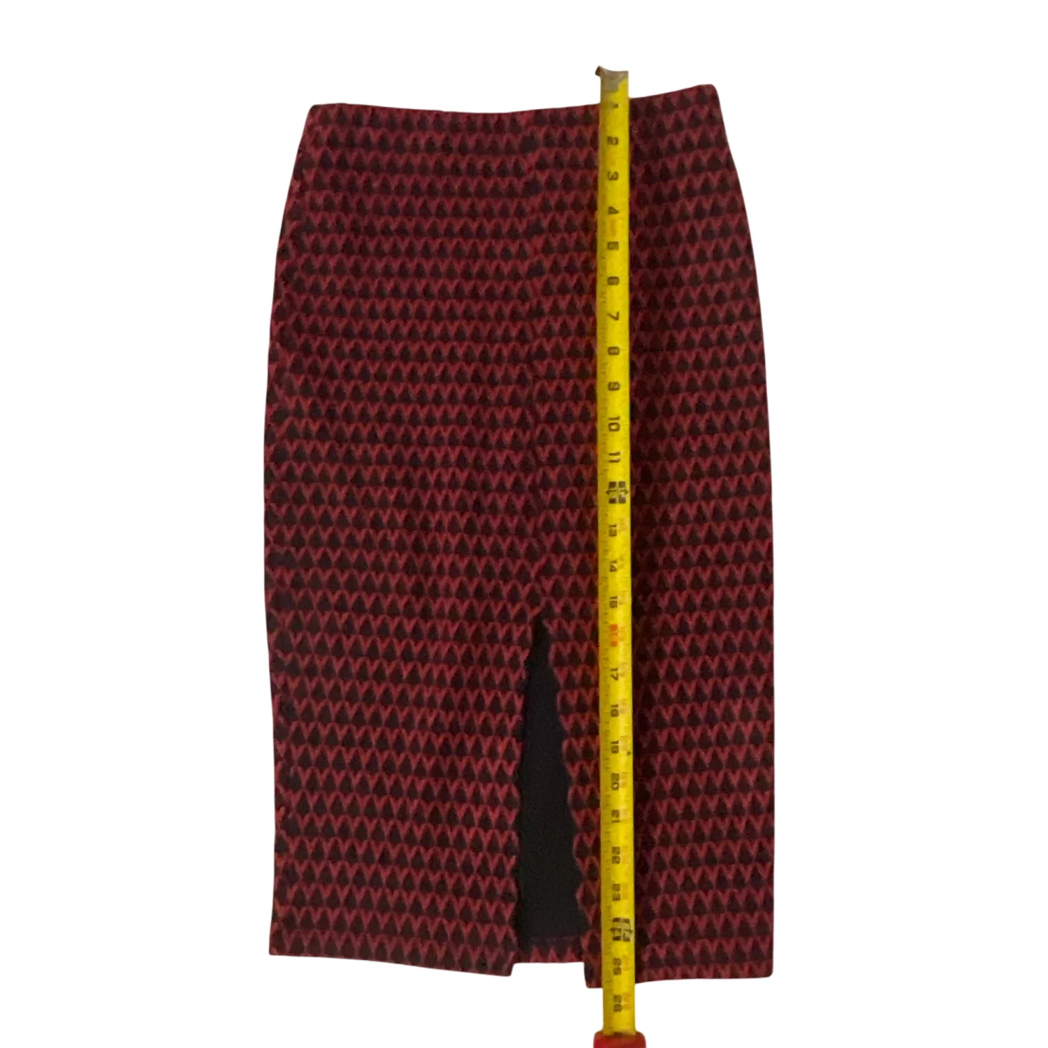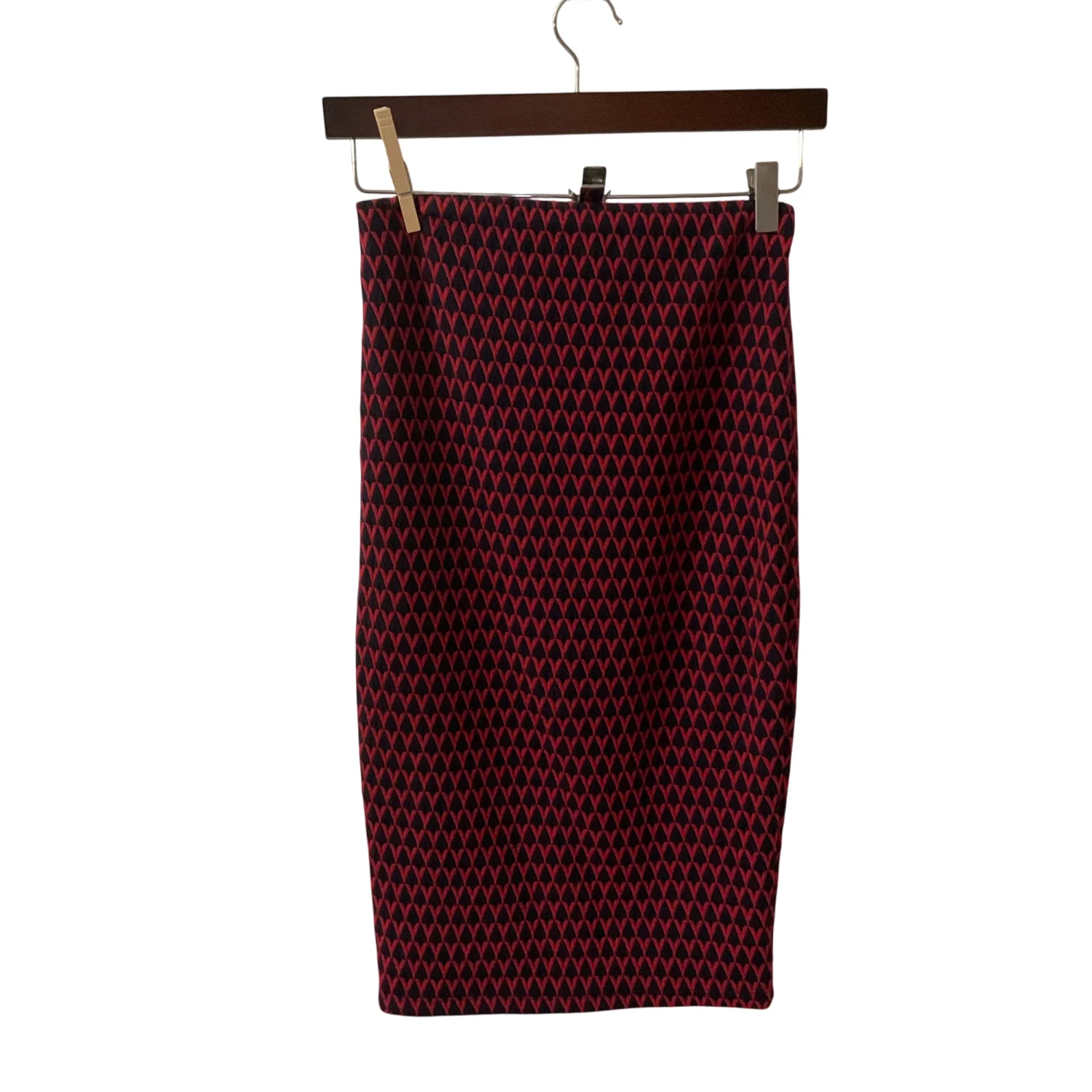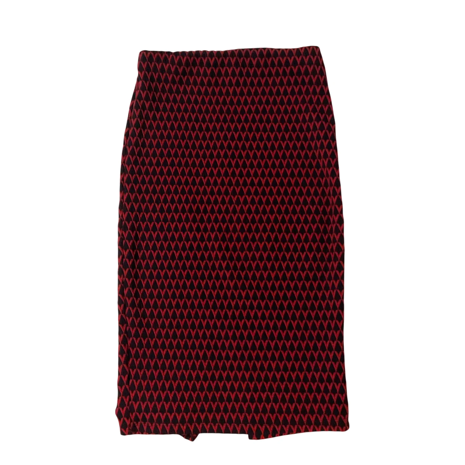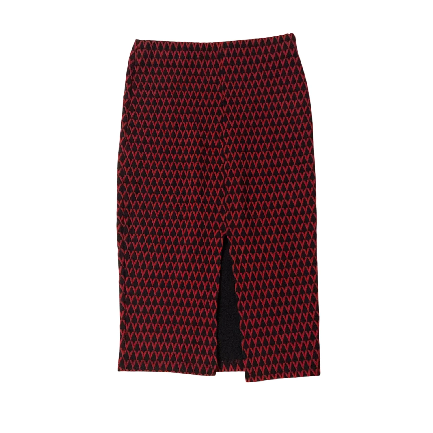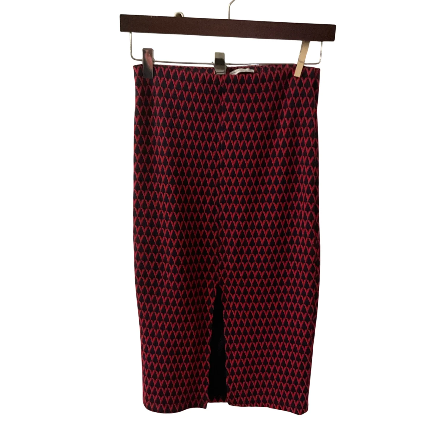 ZARA Trafaluc High Waist Maroon Tribal Geometric Midi Pencil Skirt S Rockabilly