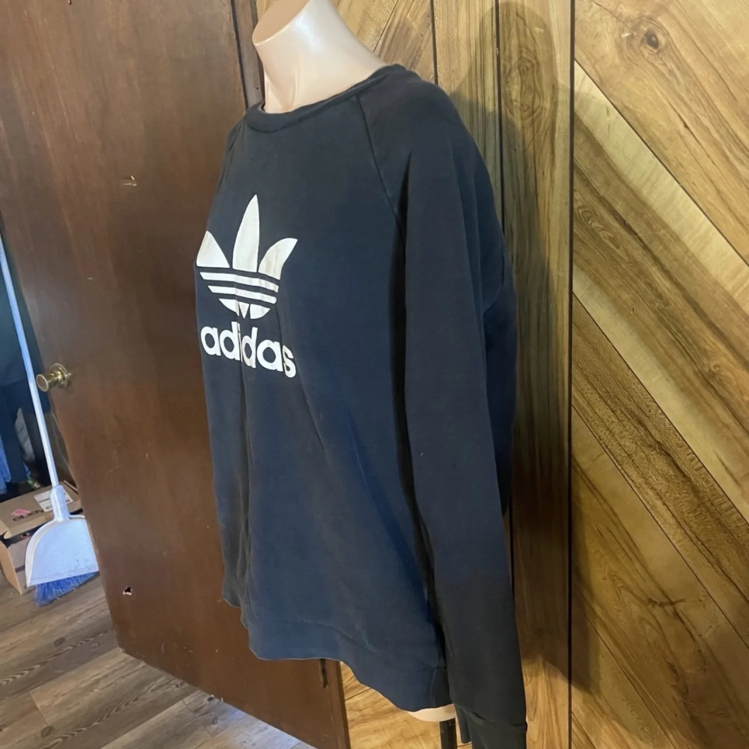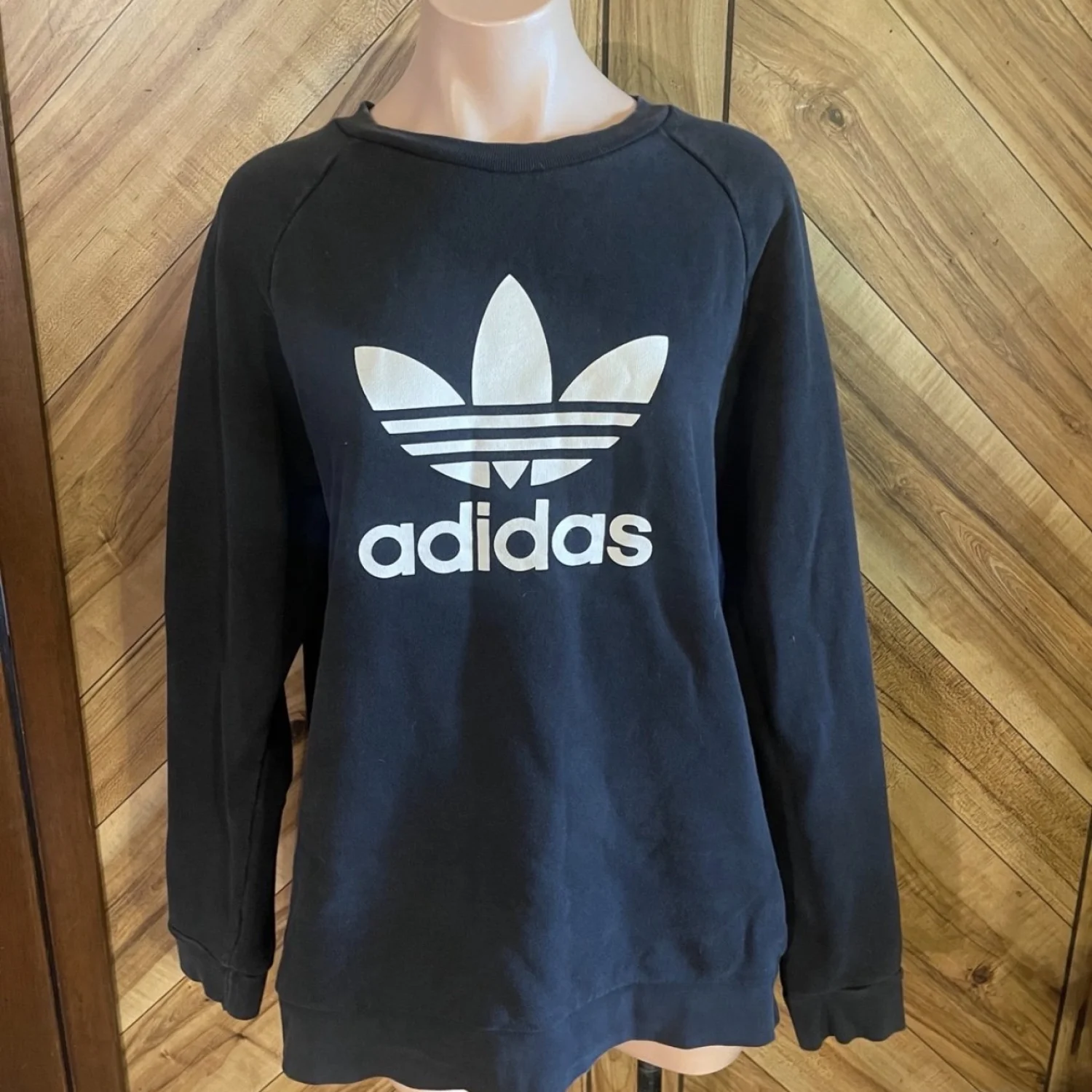 Designed for everyday comfort, it features a traditional crew neck and a regular fit that is neither too tight nor too loose. The soft cotton-blend fleece fabric provides cozy warmth and breathability, while the ribbed cuffs and hem ensure a secure fit that holds its shape. Whether you're layering up for a workout or heading out for a coffee run, this versatile pullover delivers the perfect mix of performance and modern style. • Brand: Adidas • Size: Men’s Large • Color: Black with White Logo • Material: Soft Cotton-Polyester Blend Fleece • Features: Crew neckline, screen-printed or embroidered logo, ribbed cuffs and waistband • Condition: Very Good Used Condition (VGUC) - well-cared for with no major flaws. #Adidas #AdidasOriginals #MensSweatshirt #SizeLarge #BlackSweatshirt #Pullover #Athleisure #Streetwear Style #GymWear #Activewear #ClassicAdidas #SportyStyle #VGUC #ResaleFashion #ComfortWear #LogoSweatshirt Measurements are lying flat: Chest 22” Length 27”