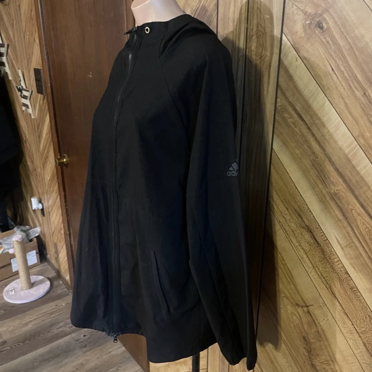 Adidas Men’s XL Black And Gray Full Zip Hooded Windbreaker Missing Drawstring