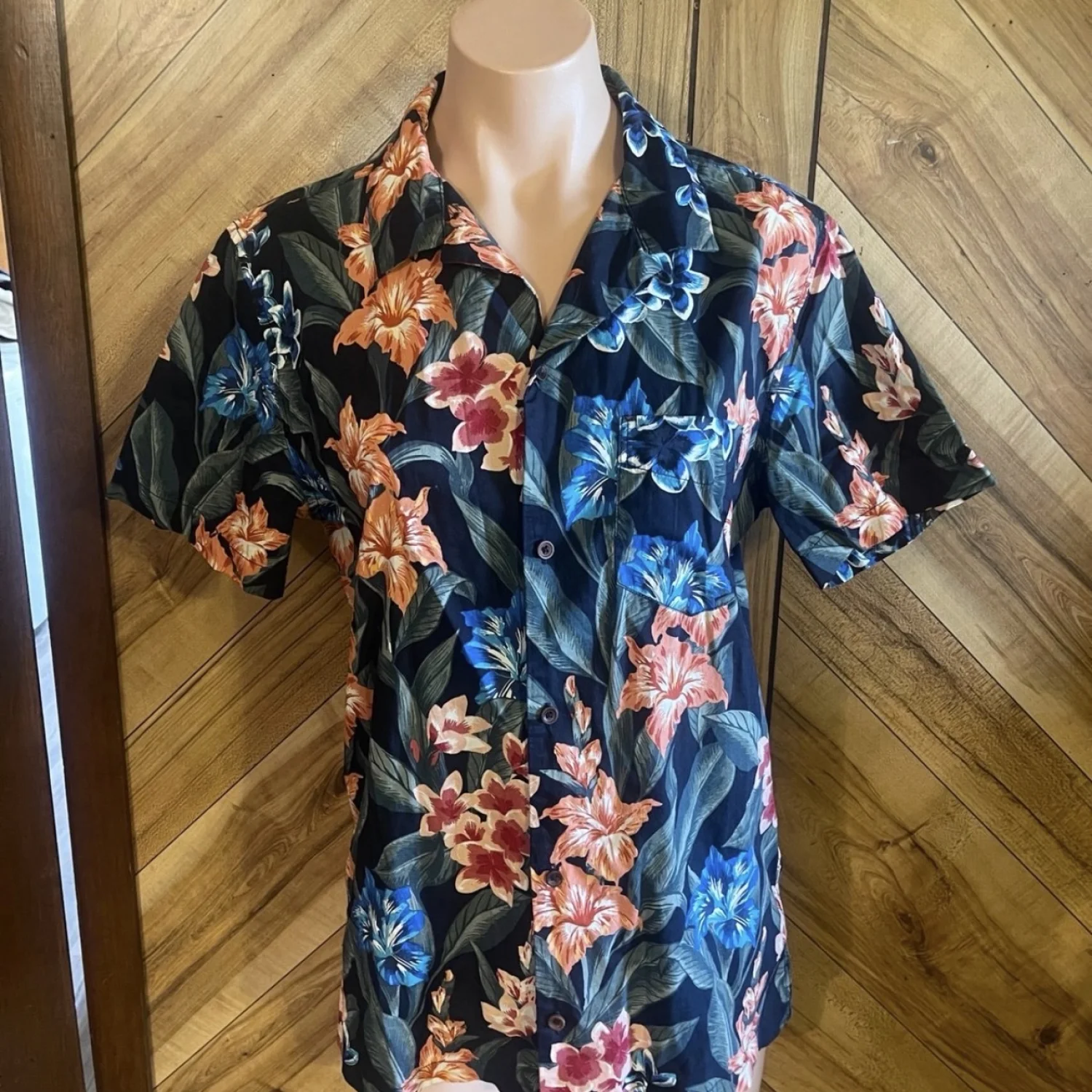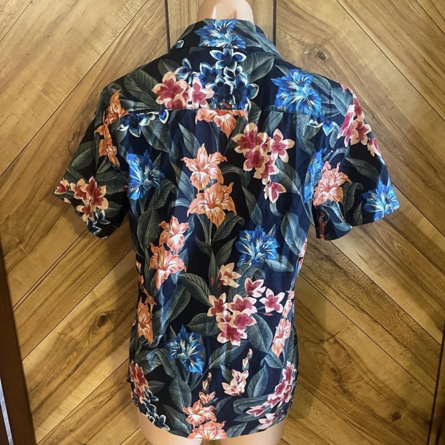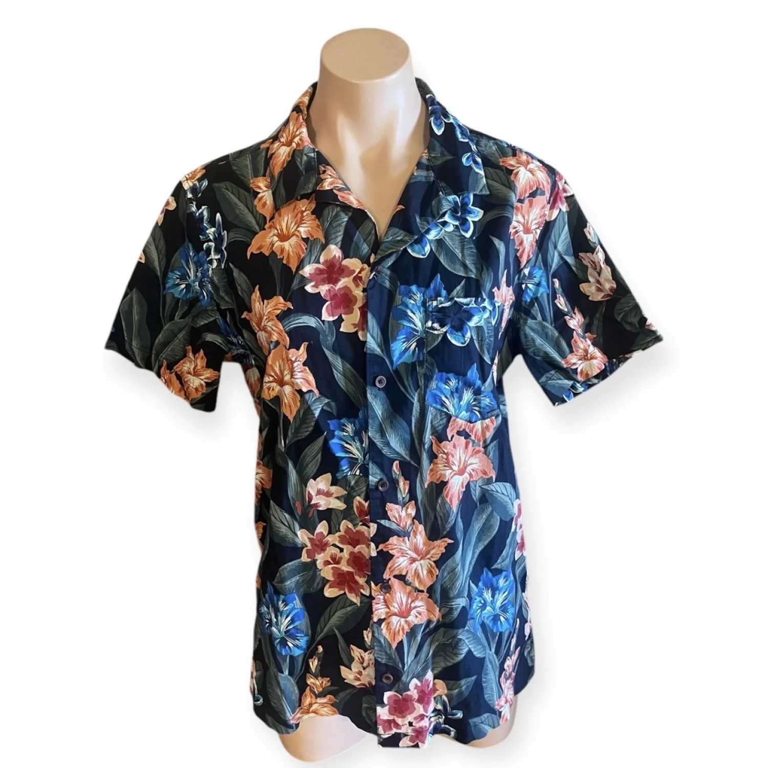 The striking pattern blends hibiscus-style blooms in shades of blue, orange, and deep red against a dark navy or black base, making it a versatile statement piece. Pair it with chino shorts for a classic preppy look or open over a white tee for a laid-back boho-chic aesthetic. • Condition: Brand New With Tags (NWT) • Size: Men’s Small (S) • Fit: Relaxed / Classic Resort Fit • Features: Short sleeves, full button front, chest pocket, and notched collar. #Aeropostale #TheResortShirt #HawaiianShirt #FloralPrint #TropicalVibes #MensSummerFashion #BeachWear #VacationStyle #NWT #AlohaShirt #FestivalFashion #ResortWear #BohoMenswear #IslandStyle #SizeSmall Measurements are lying flat: Chest 20” Length 27”