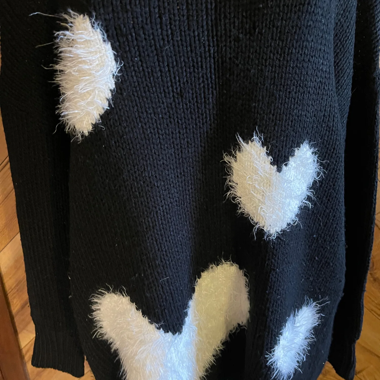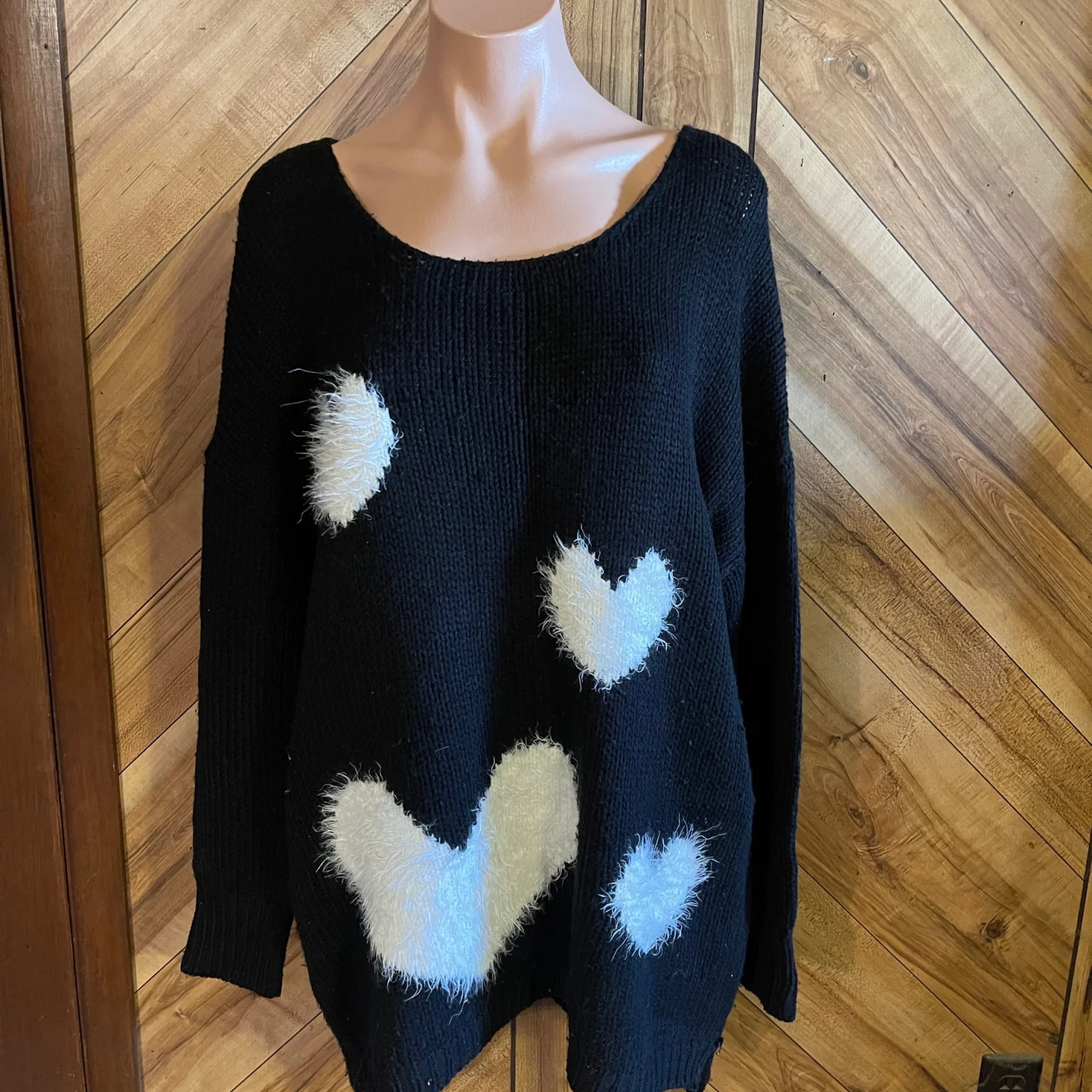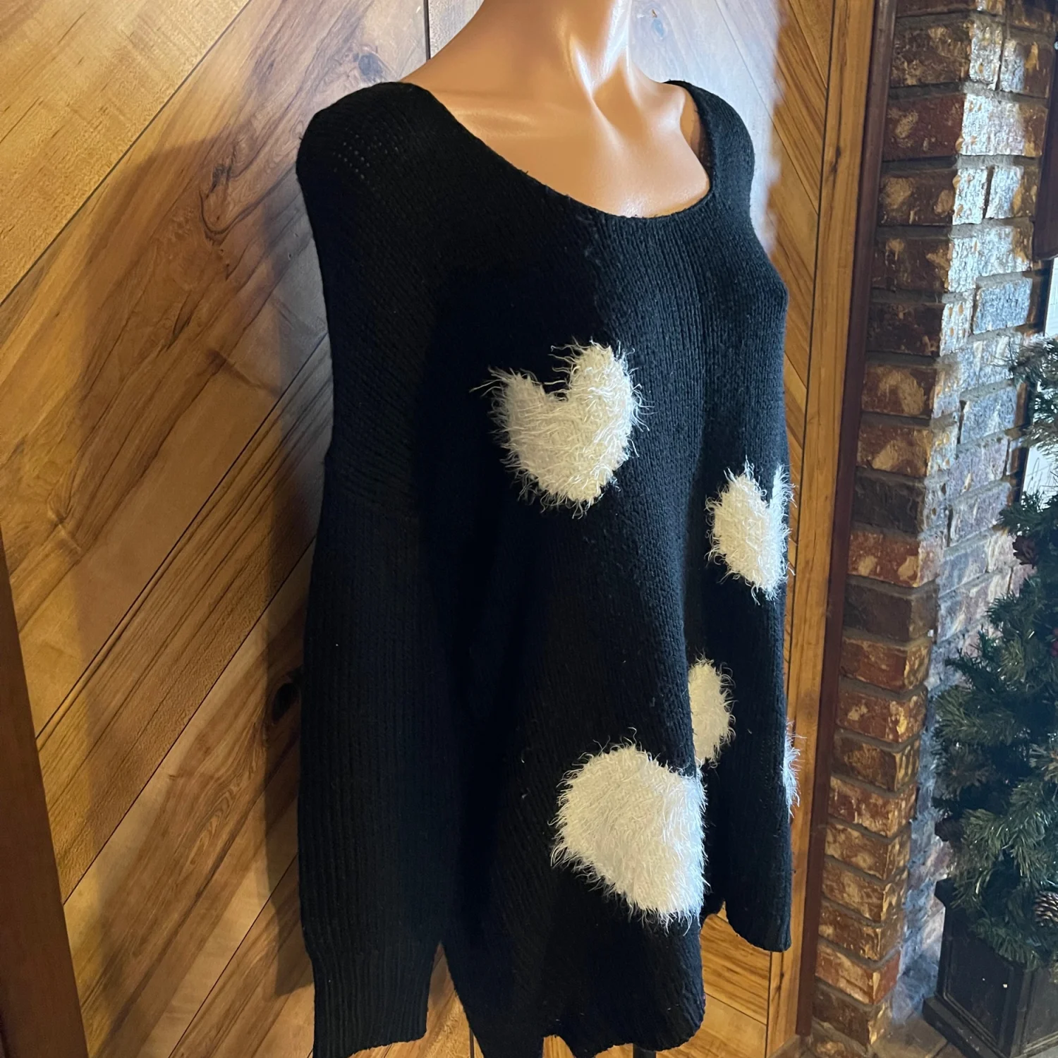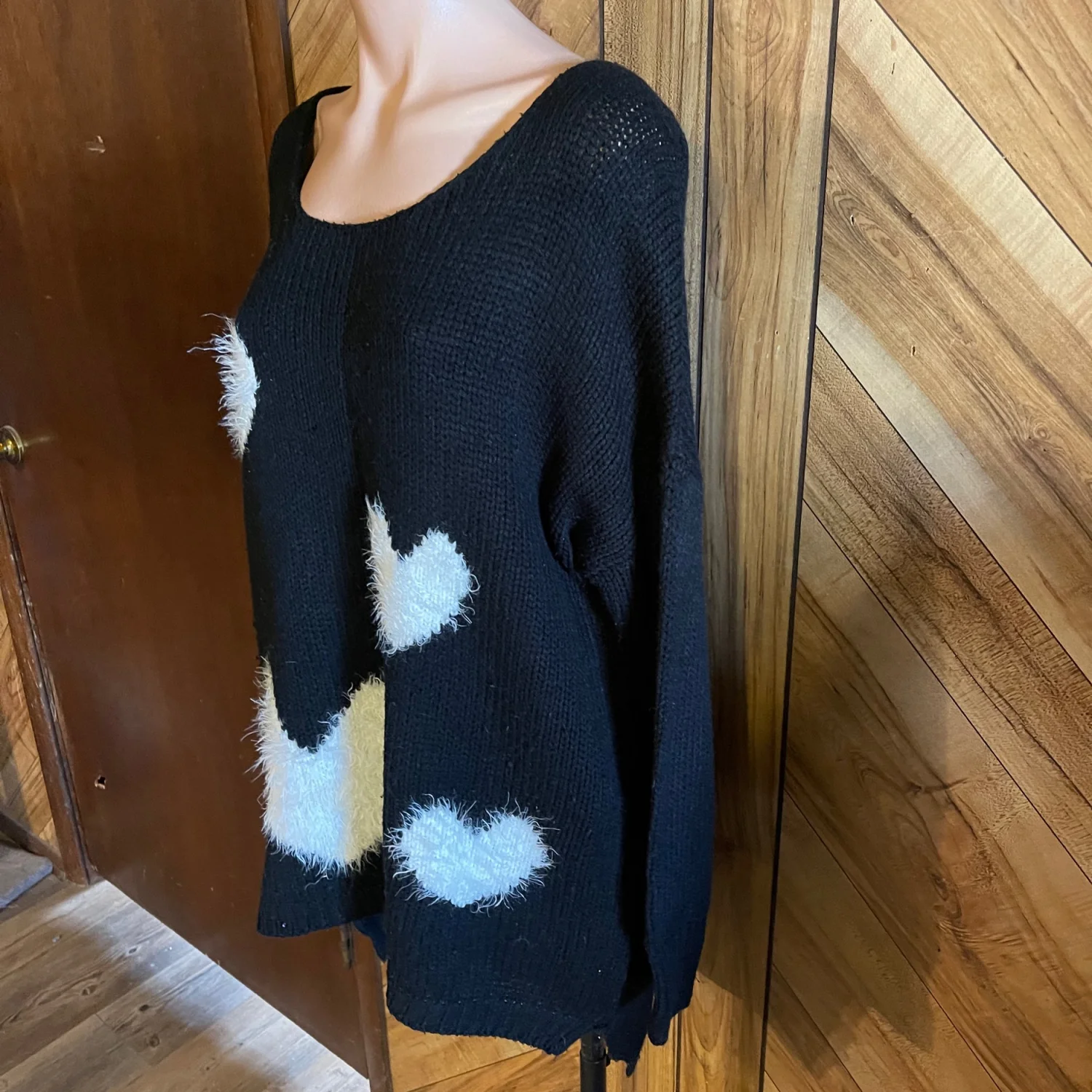 AX Paris Curve Women’s Plus Size 24/26 Black And White Hearts Fuzzy Sweater