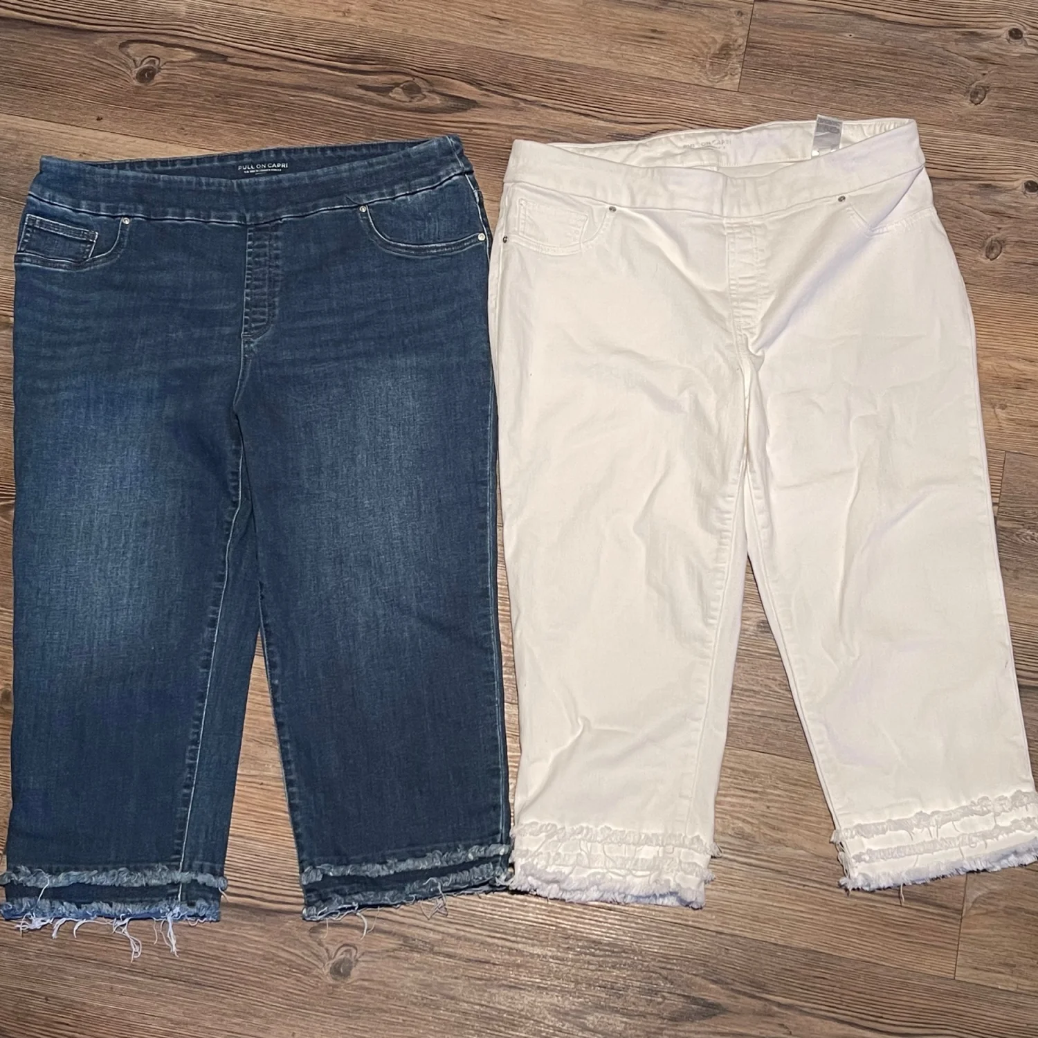 • Brand: Chico’s • Size: Chico’s 2.5 (Equivalent to US Women’s Size 14) • Style: Pull-On Denim Capris / Cropped Jeans • Fit: Classic slim fit with a comfortable elastic waistband and stretch denim fabric • Condition: Very Good Used Condition (VGUC). These have been well-maintained and are ready for their next home! • Bundle: Includes a set of Chico’s denim capris as shown. #Chicos #ChicosJeans #DenimCapris #Size14 #PullOnJeans #StretchDenim #CroppedJeans #SummerEssentials #TravelWear #ComfortStyle #BohoChic #PreppyVibe #CapriPants #VGUC #ChicosSize2.5 Measurements for both pair are approximate lying flat: Waist 18” Inseam 20” Total length 30”