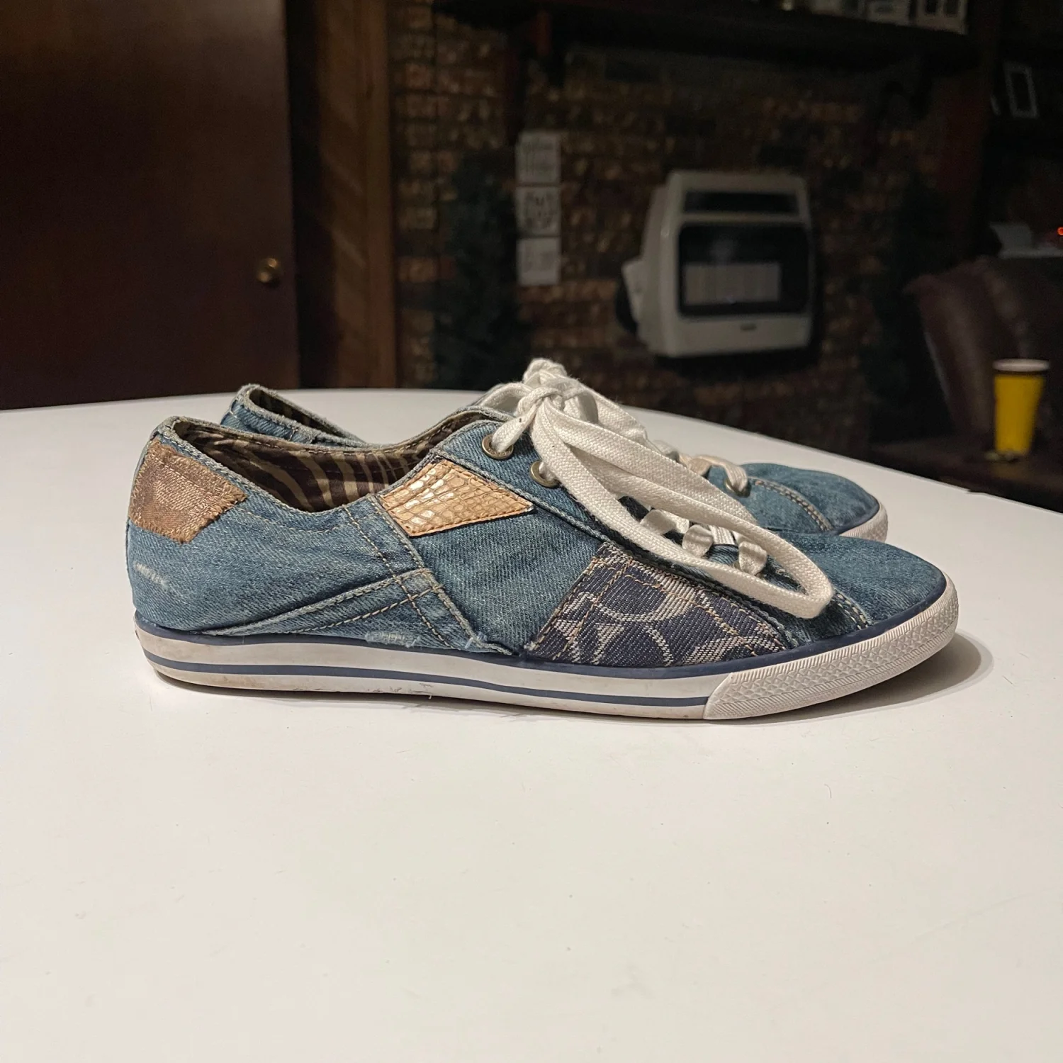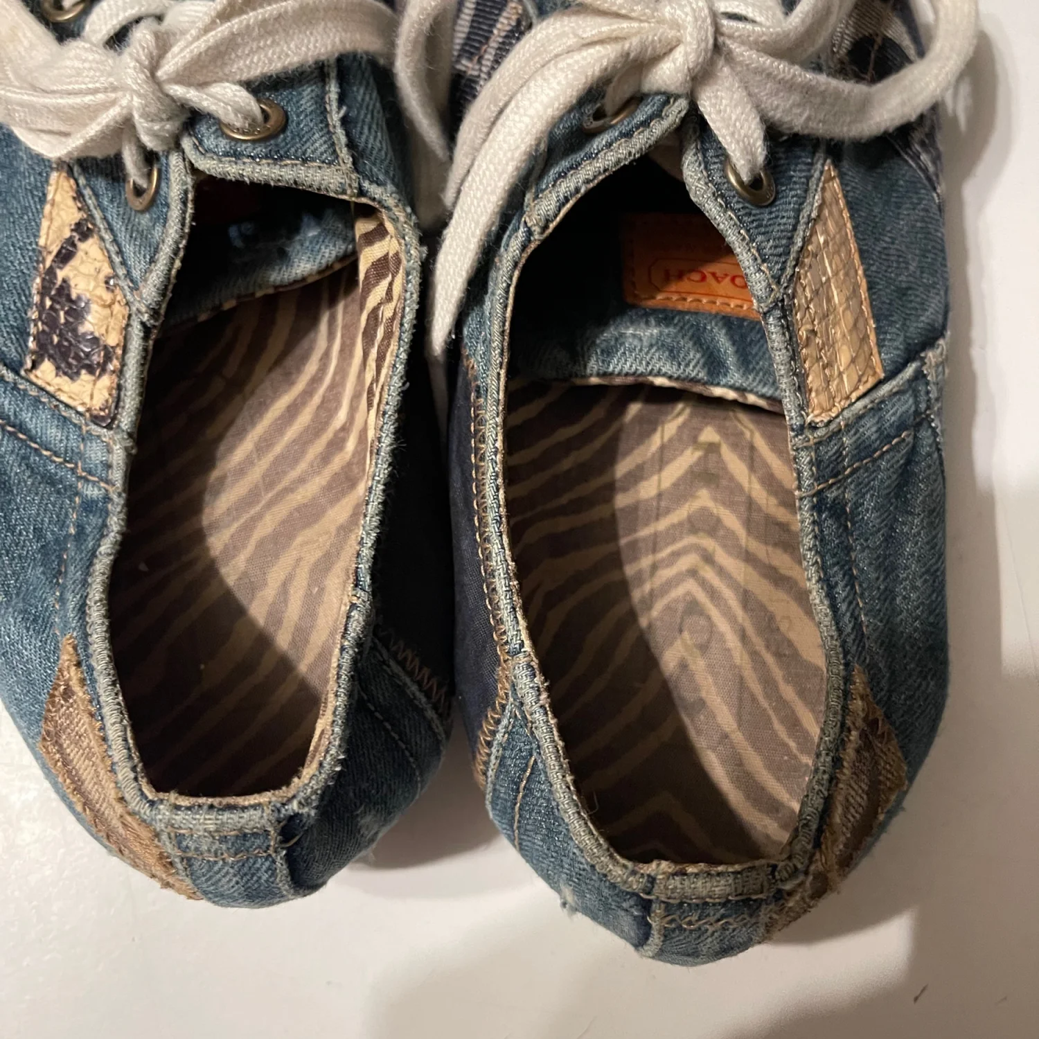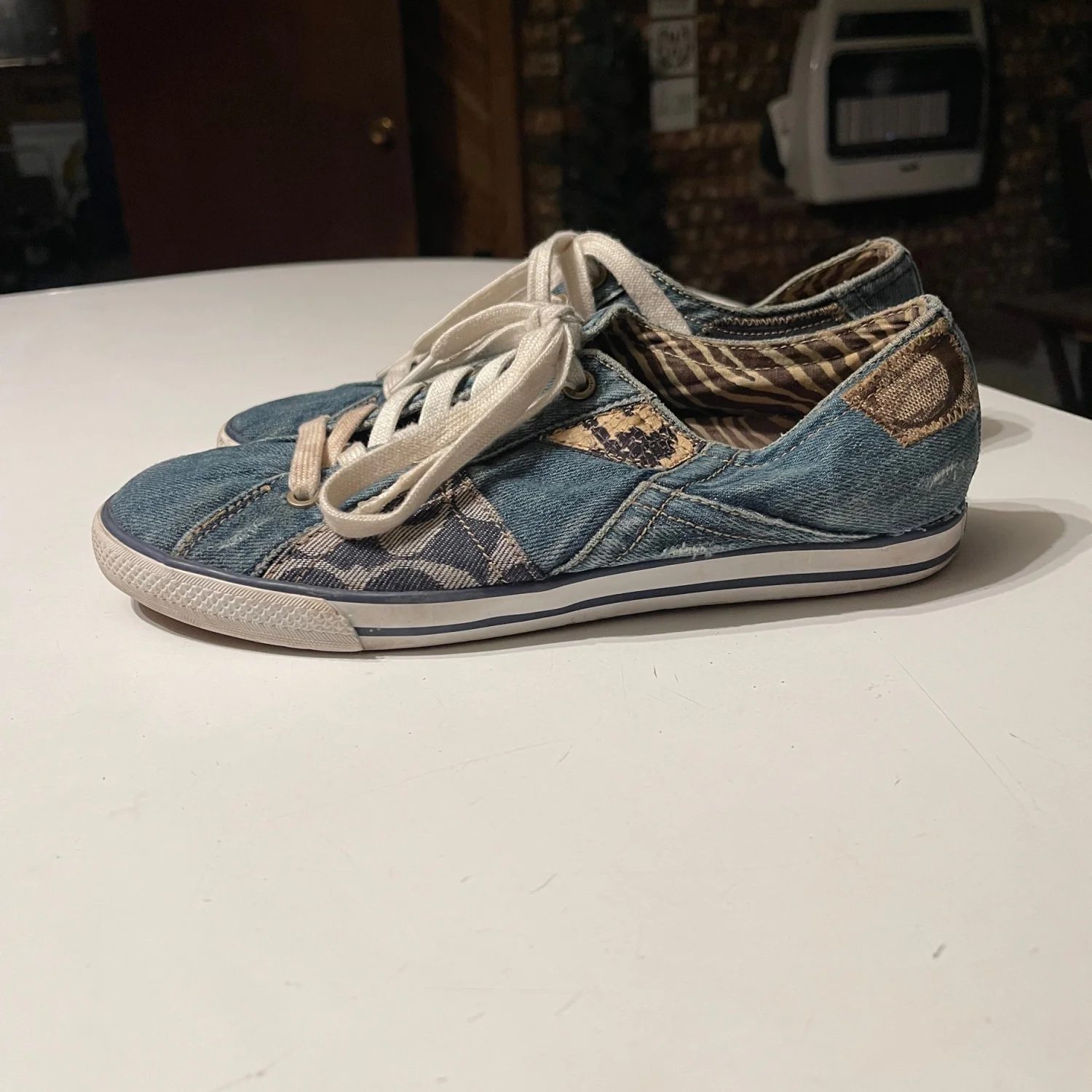 Crafted with a comfortable fabric lining and a durable rubber outsole, these sneakers offer lightweight support and a stylish "it-girl" aesthetic. Pair them with your favorite jeans for a denim-on-denim vibe or with a sundress for a boho-chic look. • Brand: Coach Leatherworks • Model: Tonya Patchwork Sneakers • Size: Women’s 9.5 • Color: Blue Denim Tonal Patchwork • Condition: Very Good Used Condition (VGUC). • Notes: There is some light discoloration on the left shoestring, which can easily be replaced or cleaned. The denim uppers and soles are in great shape with lots of life left! #Coach #CoachSneakers #DenimPatchwork #Y2KStyle #BohoChic #SignatureDenim #VintageCoach #Size9.5 #DenimSneakers #Americana #CasualChic #PatchworkShoes #Streetwear #DesignerSneakers #LowTopSneakers