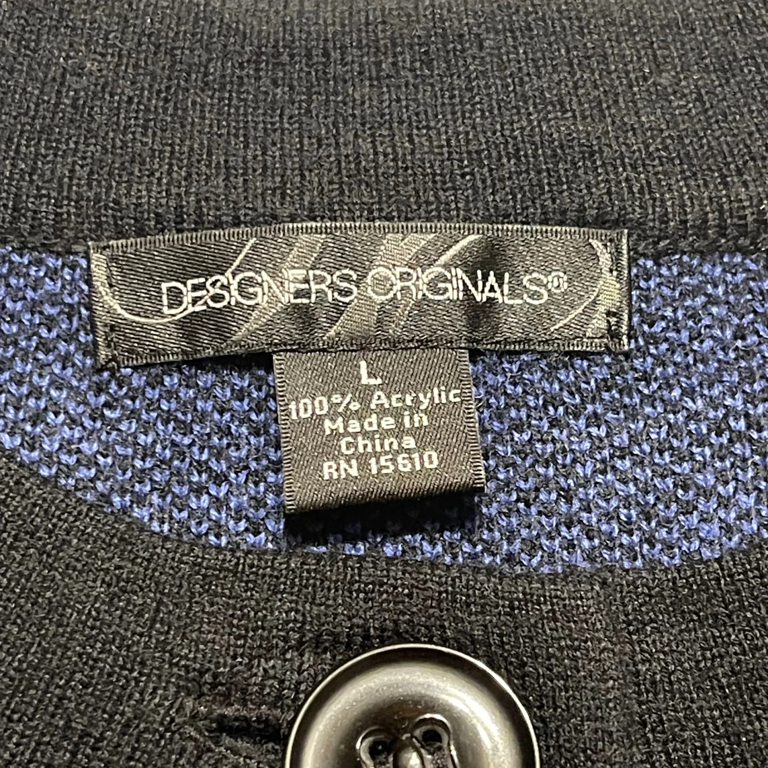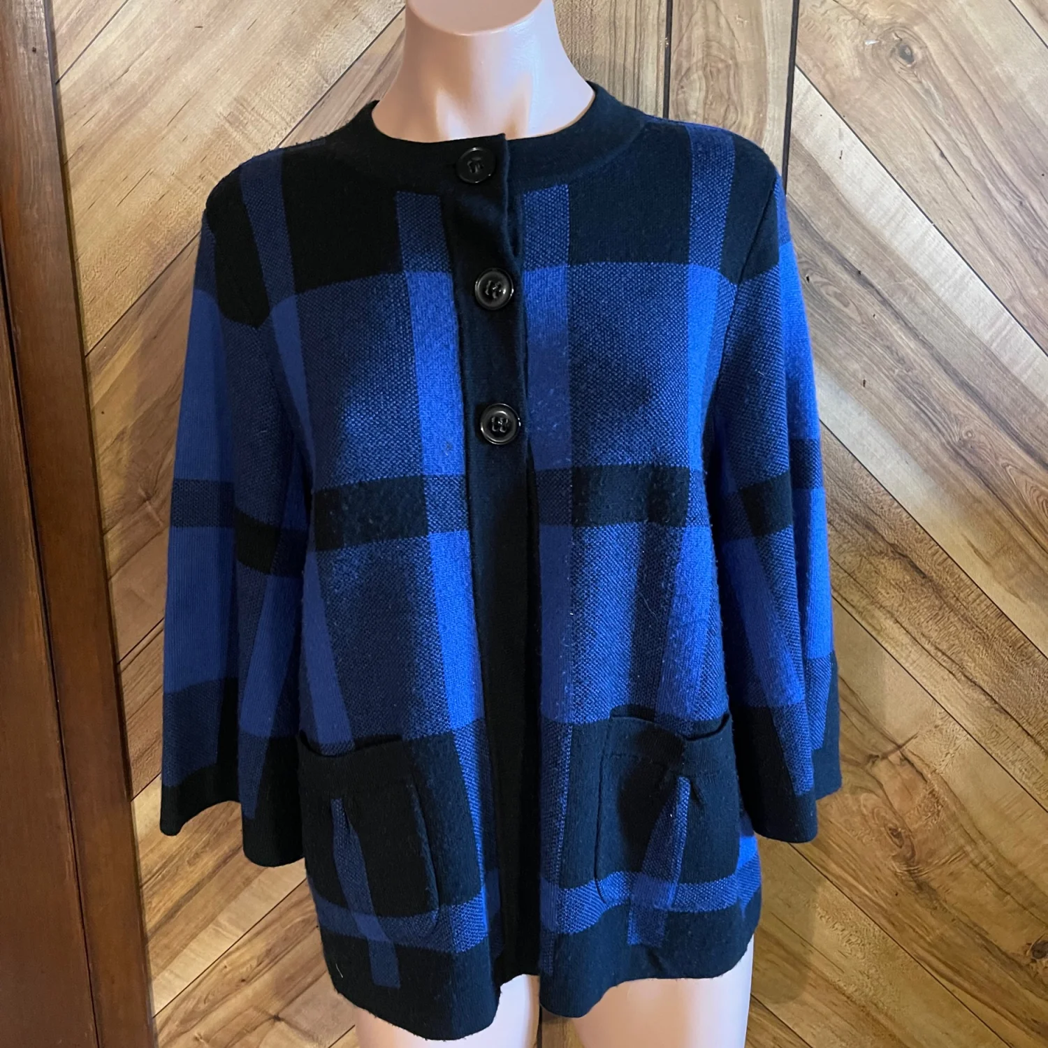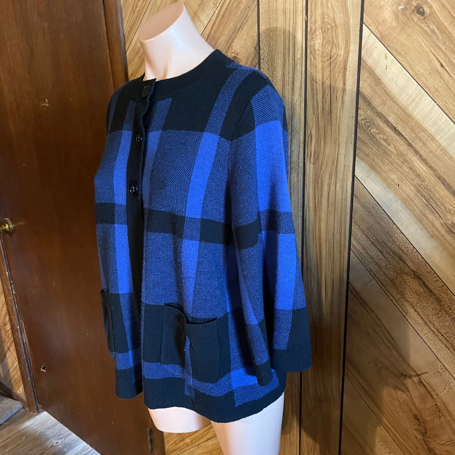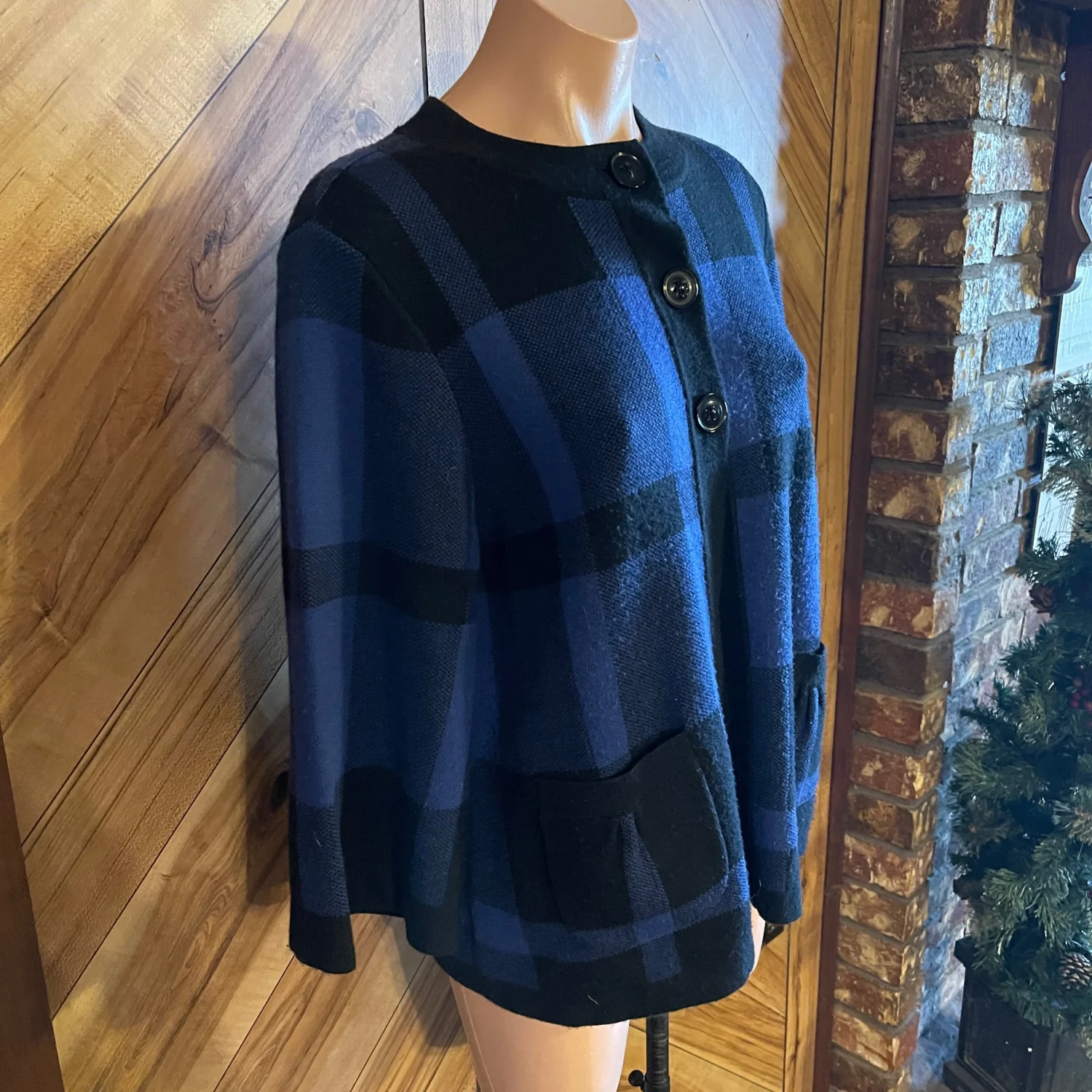 Designers Originals Women’s Large Blue/Black Plaid Acrylic Cardigan Sweater