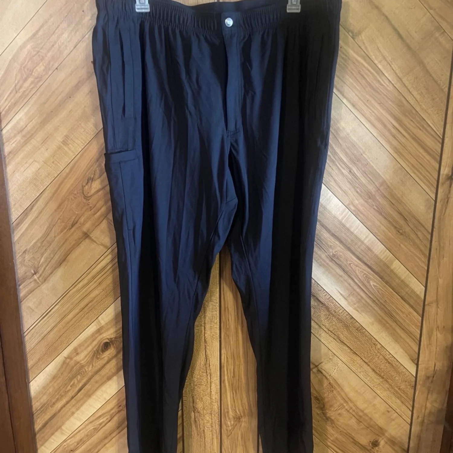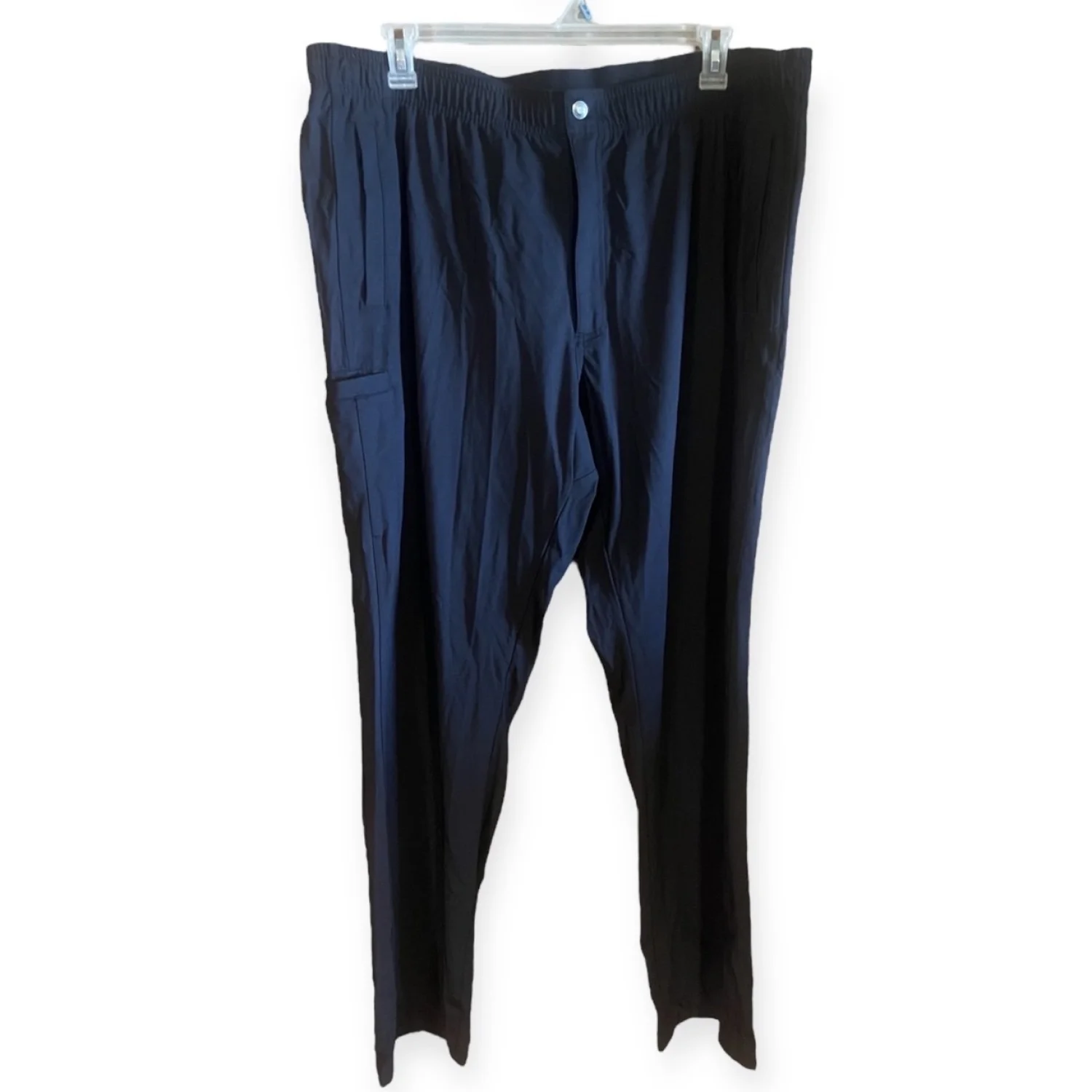 The Auto Pilot line is known for its incredible comfort, featuring a hidden elastic waistband for a flexible fit and a crouch gusset for maximum mobility. With a streamlined straight-leg silhouette and discrete utility pockets, they offer a sharp look without sacrificing the utility Duluth is famous for. • Brand: Duluth Trading Co. • Size: Men’s 2XL (XXL) x 34 Inseam • Color: Solid Black • Material: Lightweight Performance Polyester Blend • Condition: Excellent Used Condition (EUC) - no visible flaws, stains, or pilling. #DuluthTradingCo #AutoPilotPants #PerformancePants #MensWorkwear #Size2XL #BigAndTall #TravelPants #MoistureWicking #BusinessCasual #CommuterWear #Gorpcore #UtilityPants #GolfPants #EUC #ResaleFashion Measurements are lying flat: Waist 20” Inseam 34” Total Length 45”