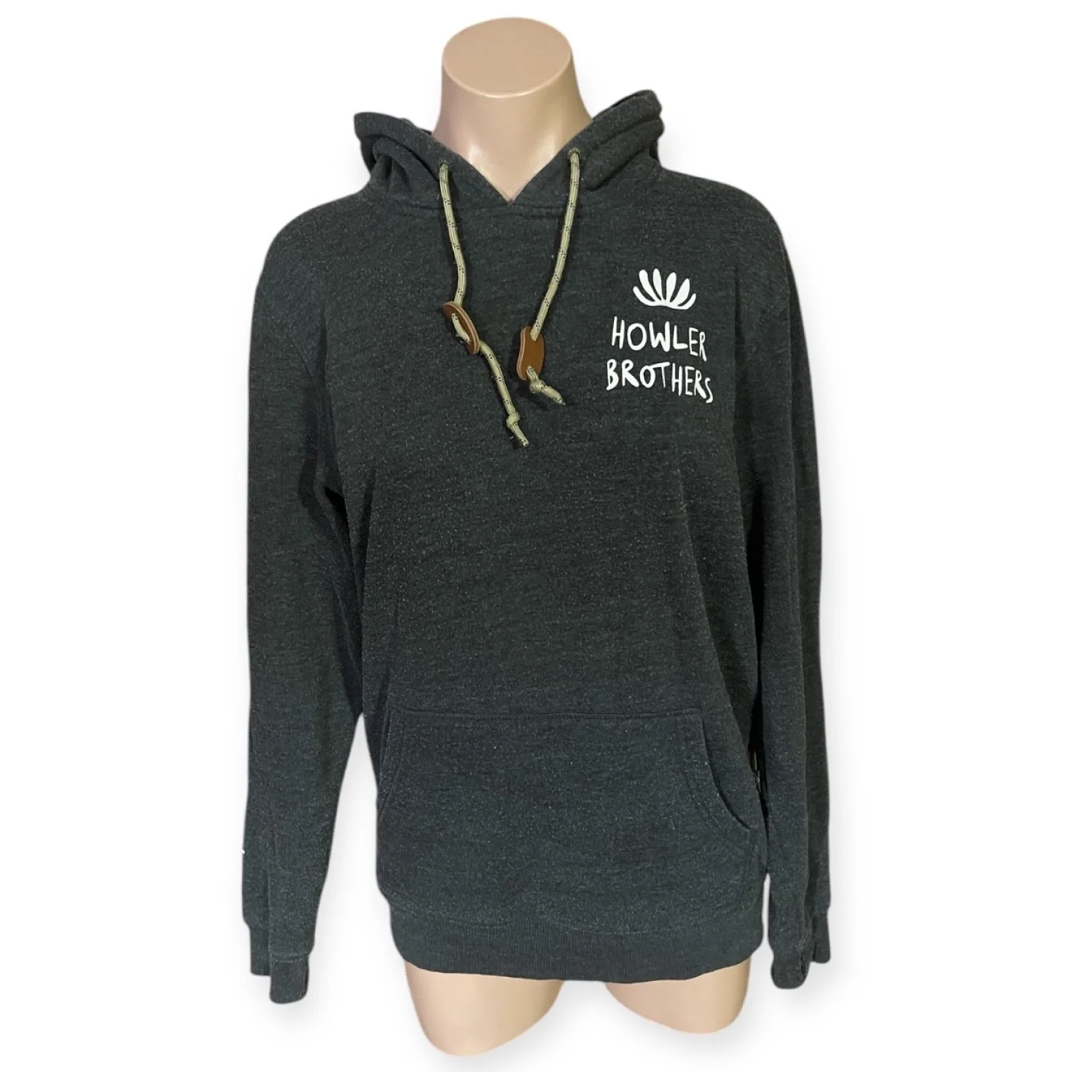 Featuring a classic pullover design, it includes a generous kangaroo front pocket and a full-coverage hood with adjustable drawcords. The comfortable, mid-weight fabric blend provides warmth without being overly bulky, making it a reliable athleisure staple for any season. Condition Note: This hoodie is in Very Good Used Condition (VGUC). It shows slight pilling throughout from normal wear, but remains clean and free of significant flaws. • Brand: Howler Brothers • Size: Men’s Small (S) • Color: Charcoal Gray • Features: Front kangaroo pocket, drawstring hood, ribbed cuffs and hem • Fit: Regular fit, true to size (Chest: 36"-38") #HowlerBrothers #HowlerBros #MensHoodie #SizeSmall #OutdoorStyle #Gorpcore #Streetwear #CharcoalGray #PulloverHoodie #HikingGear #CoastalStyle #DistantForms #Athleisure #VGUC #ResaleFashion #CozyVibes Measurements are lying flat: Chest 21” Length 26”
