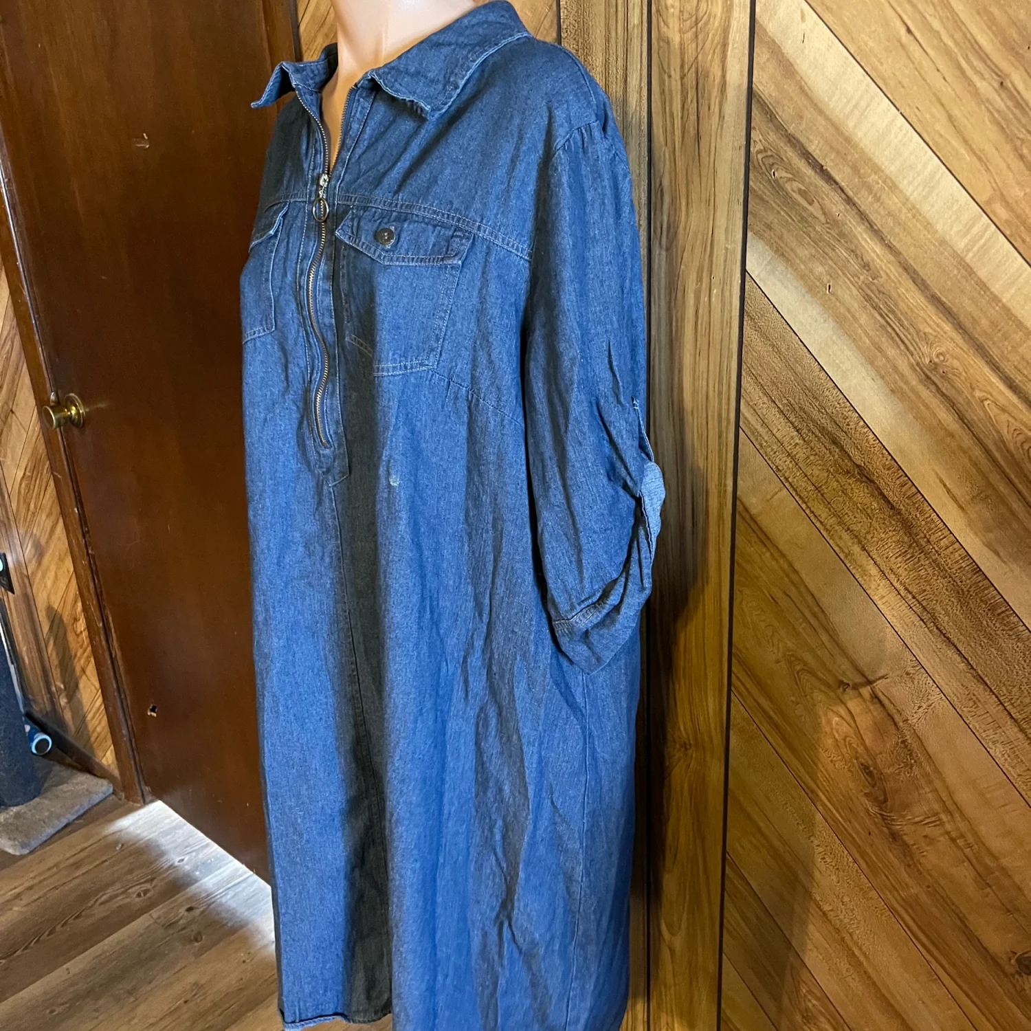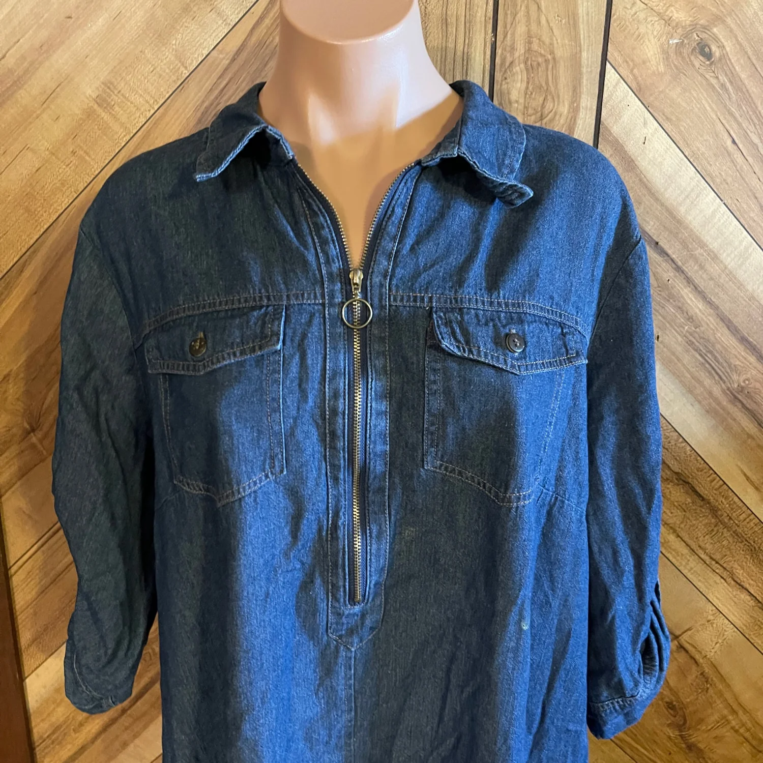 J.Gee Women’s Plus Size 2X Blue Denim 3/4 Sleeve Knee Length Dress Tunic