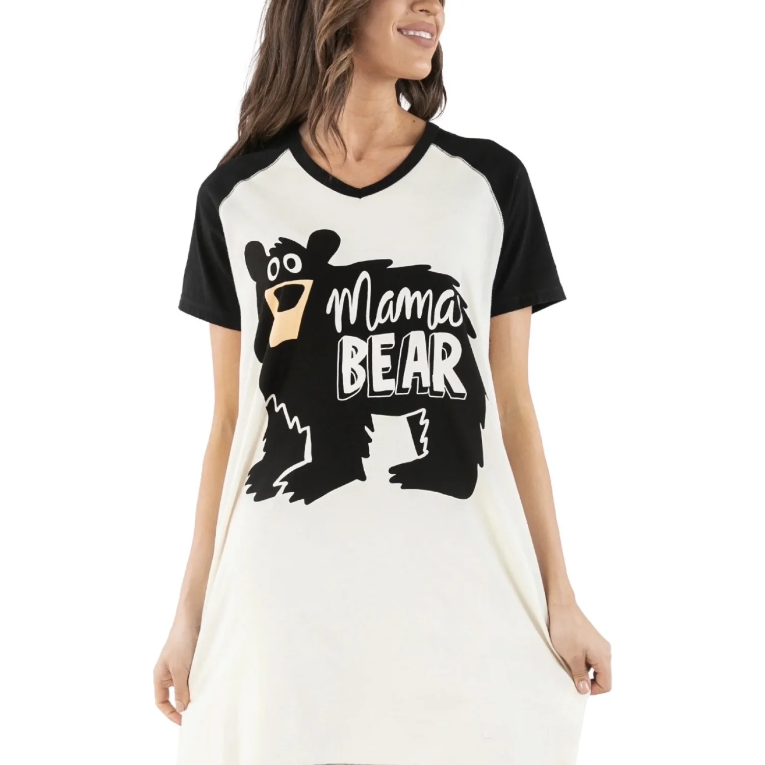 Lazy Ones Women’s L/XL Mama Bear Graphic Design V-Neck Sleep Shirt Night Gown