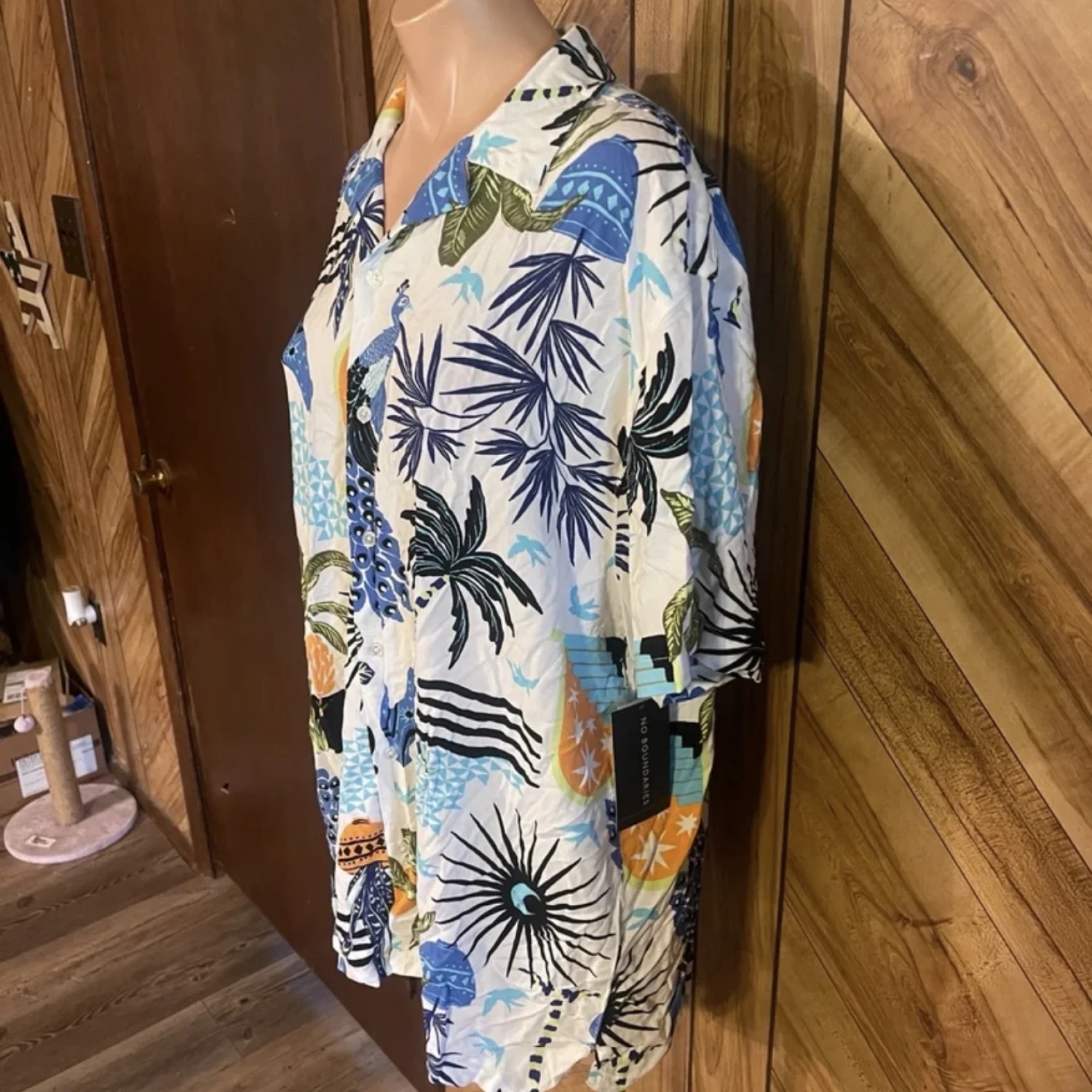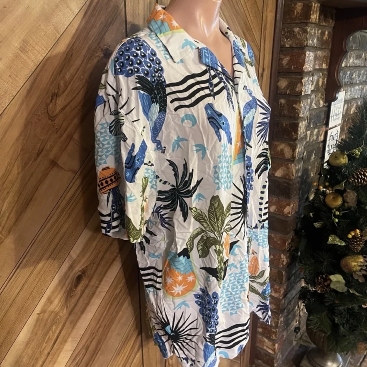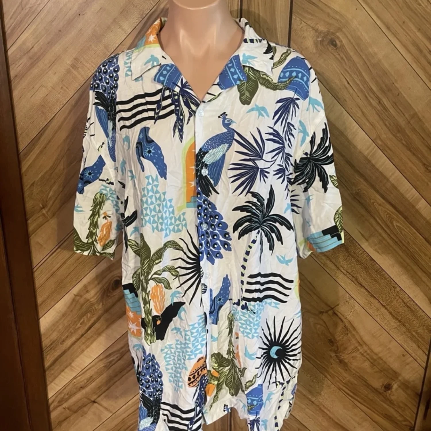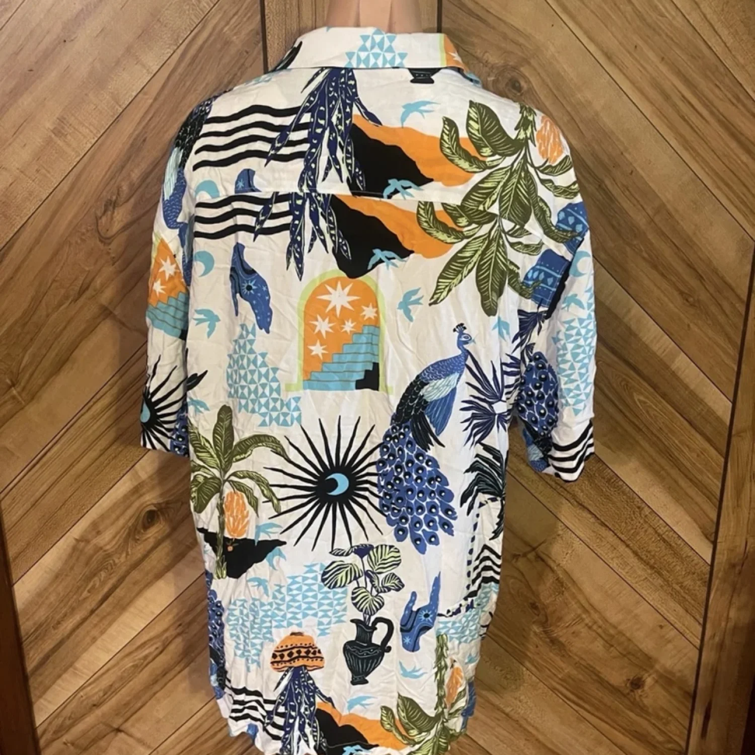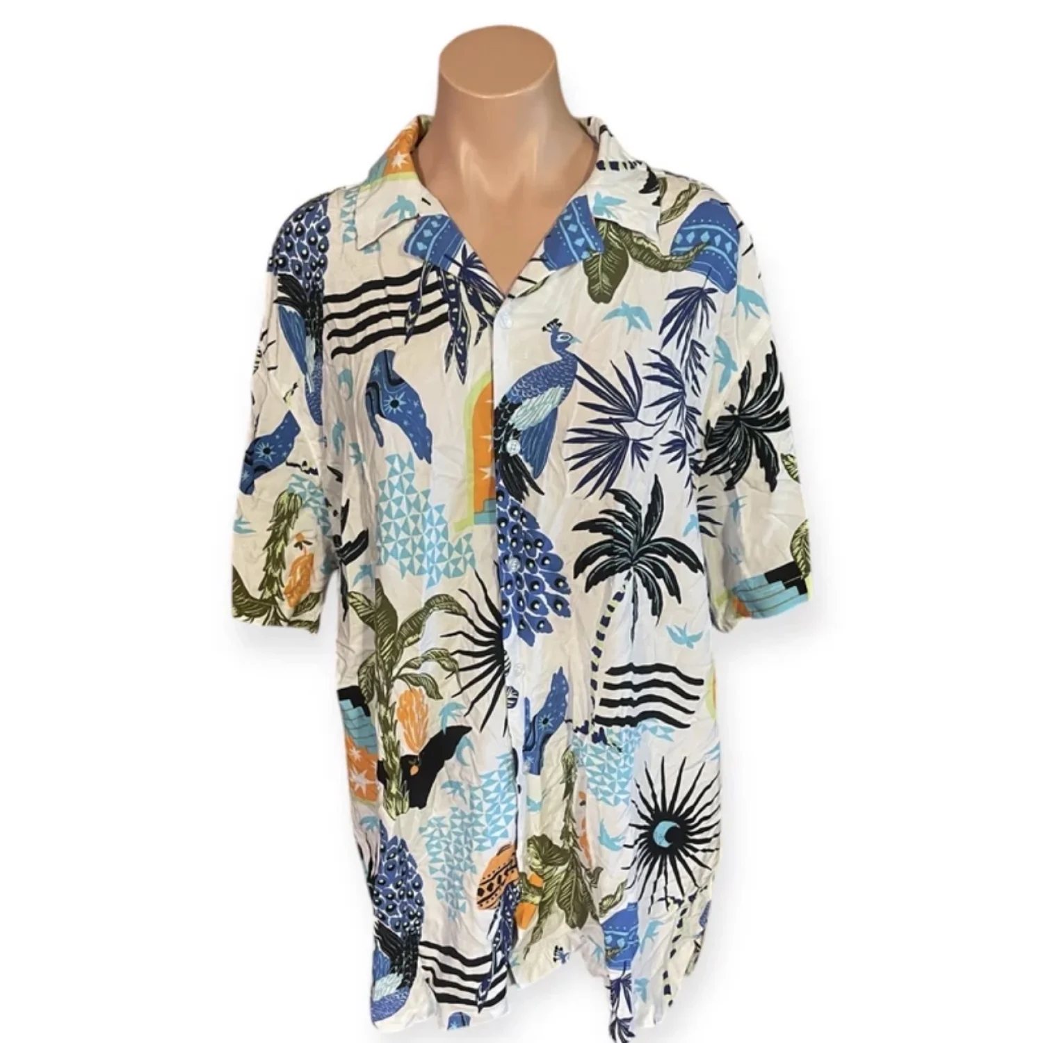 Brand new with tags (NWT), this shirt is crafted from a lightweight, breathable fabric—likely 100% Rayon or a comfortable polyester blend—designed to keep you cool and relaxed during any tropical getaway or casual outing. It features a classic spread collar, a full button-front closure, and a functional chest pocket. Whether you're heading to a summer festival, a beach party, or just a backyard luau, this mystic-print shirt offers a trendy, laid-back vibe that pairs perfectly with shorts or chinos. • Brand: No Boundaries • Condition: New With Tags (NWT) • Size: Men’s Large • Color: White with Mystical Peacock, Palm Tree, and Tropical Sun Print • Features: Short sleeves, spread collar, front button closure, front pocket • Care: Machine washable for easy maintenance #NoBoundaries #HawaiianShirt #MysticalPrint #NWT #MensSummerFashion #SizeLarge #BohoChic #PeacockPrint #BeachWear #TropicalVibes #ResortWear #FestivalOutfits Measurements are lying flat: Chest 24” Length 30”