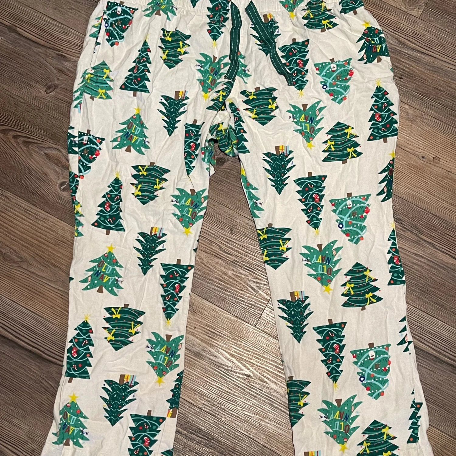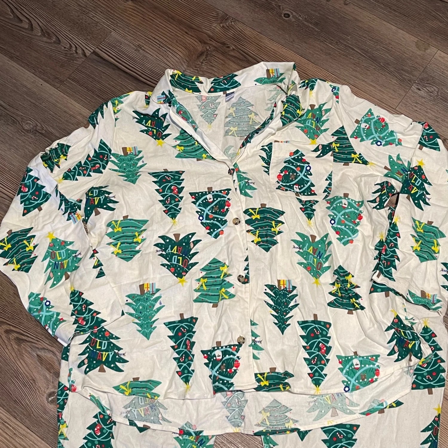 Featuring a classic button-front sleep shirt with a notched collar and matching drawstring-waist pants, this set offers a relaxed fit for maximum comfort. Crafted from soft, double-brushed 100% cotton flannel, these pajamas are designed to keep you warm and cozy all winter long. • Brand: Old Navy • Collection: Match The Fam / Jingle Jammies • Size: Women’s 2X • Set Includes: Long-sleeve button-down top and matching elastic-waist pants. • Material: 100% Cotton Flannel • Features: Chest patch pocket, adjustable drawstring, and side on-seam pockets on pants. • Condition: Very Good Used Condition (VGUC). #OldNavy #MatchingPJs #ChristmasPajamas #MatchTheFam #FlannelPJs #HolidayStyle #PlusSizeFashion #Size2X #FamilyPajamas #Snoopy #BuffaloPlaid #WinterWear #JingleJammies #CozyVibes #VGUC Measurements are approximate lying flat: Top Chest 25” Length 27” Bottoms Waist 21” Inseam 28” Total length 38”