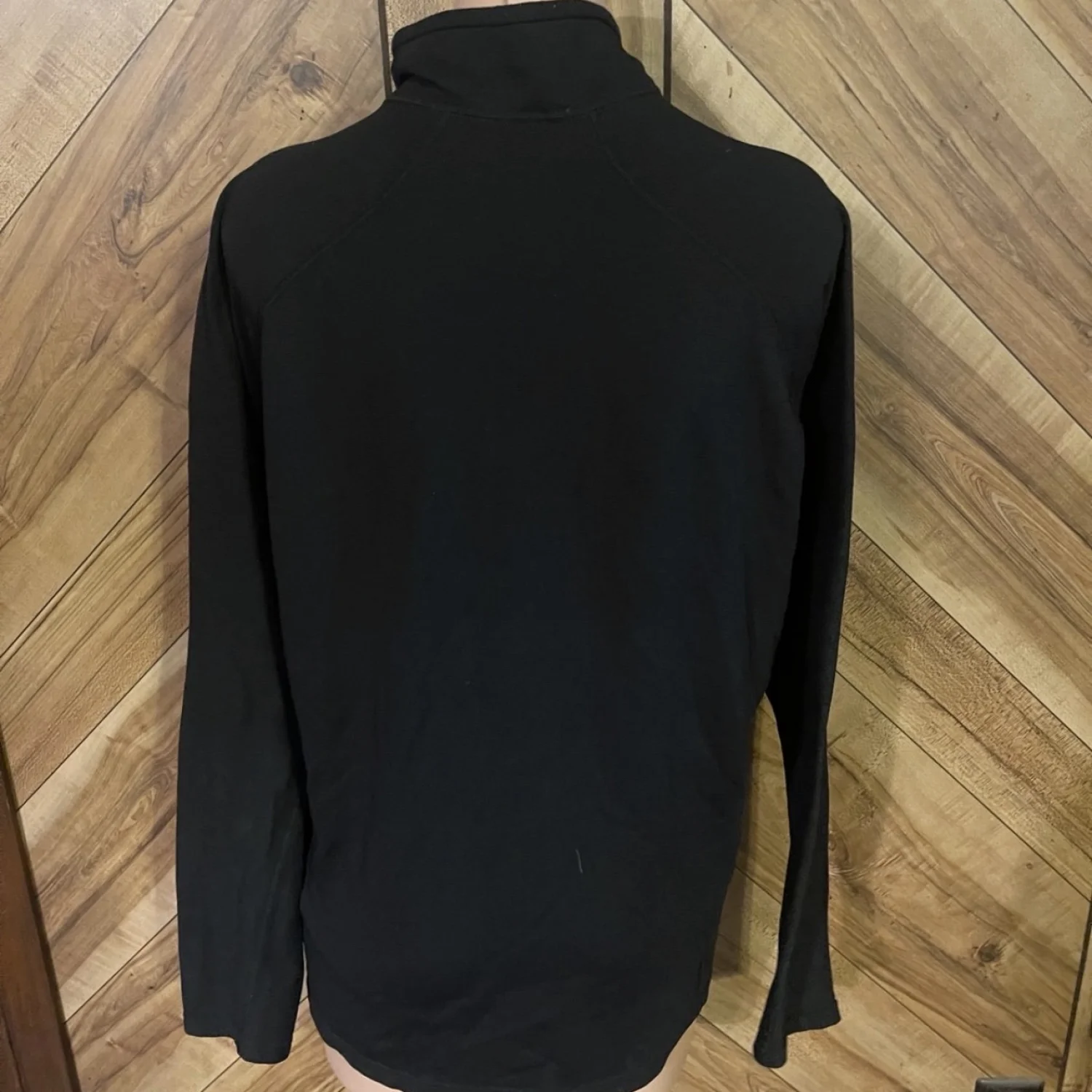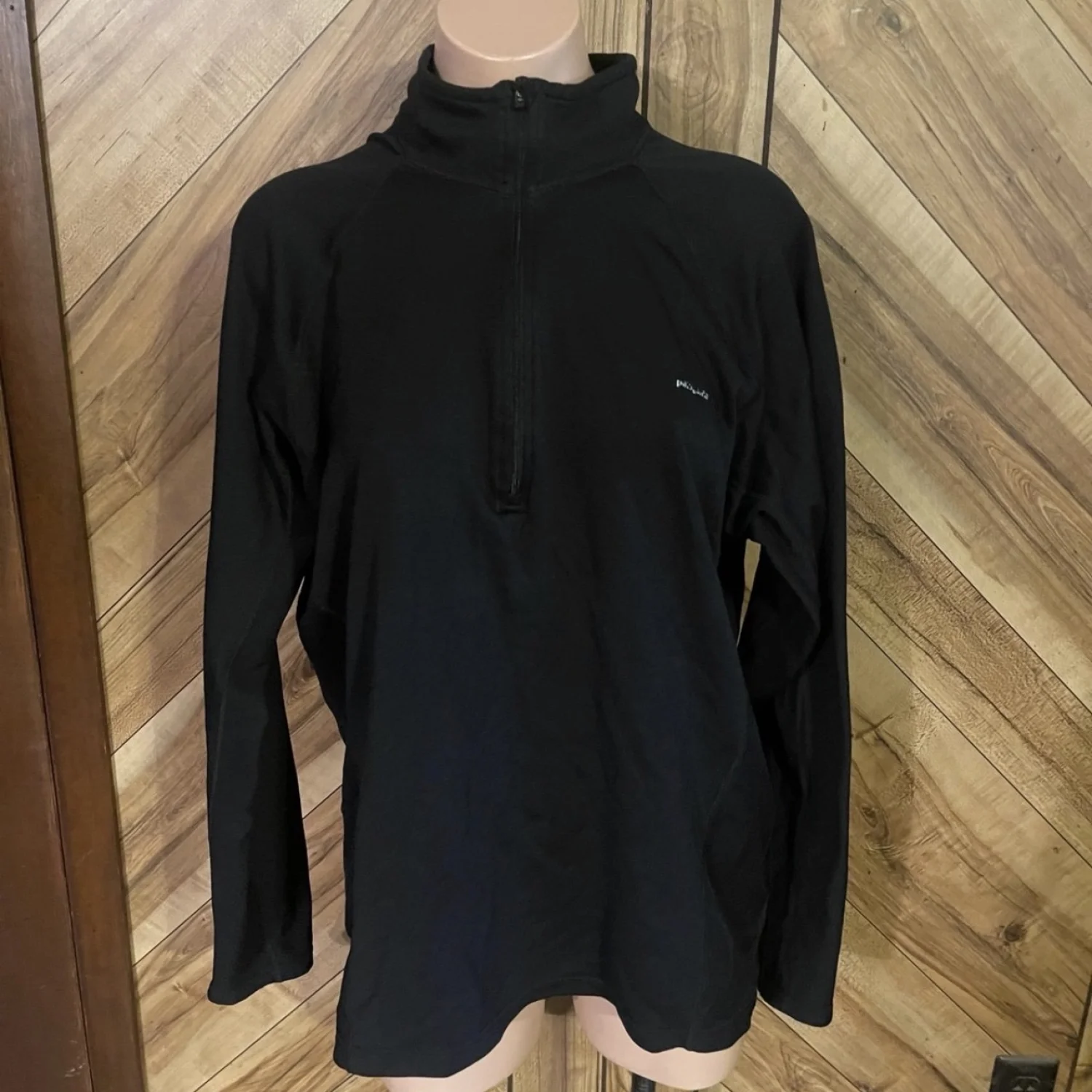 This classic Patagonia 1/4 or Half-Zip Pullover is a versatile and functional piece, often identified as a Capilene Midweight or similar base layer. It is constructed from recycled polyester fabric, designed to be breathable, quick-drying, and moisture-wicking for high-exertion outdoor activities. Known for their snug, comfortable fit, these base layers are perfect for layering for hiking, skiing, climbing, or everyday athleisure wear in cool to cold conditions. • Condition: Good Used Condition (GUC) - Note: The Patagonia logo on the chest is peeling, as noted in the user's description. This should be clearly shown in photos. • Brand: Patagonia • Style: 1/4 Zip / Half-Zip Pullover, Base Layer, Thermal Top, Long Sleeve Shirt • Size: Men's Extra Large (XL) • Color: Solid Black • Material: 100% Recycled Polyester (Synthetic) • Features: Moisture Wicking, Quick Dry, High Collar, HeiQ Odor Control (common feature) #Patagonia #PatagoniaMen #SizeXL #QuarterZip #HalfZip #Pullover #BaseLayer #Thermal #Capilene #Midweight #TechnicalFleece #Activewear #Hiking #Climbing #Skiing #Outdoors #Gorpcore #Athleisure #BlackPullover Measurements are lying flat: Chest 20” Length 26”