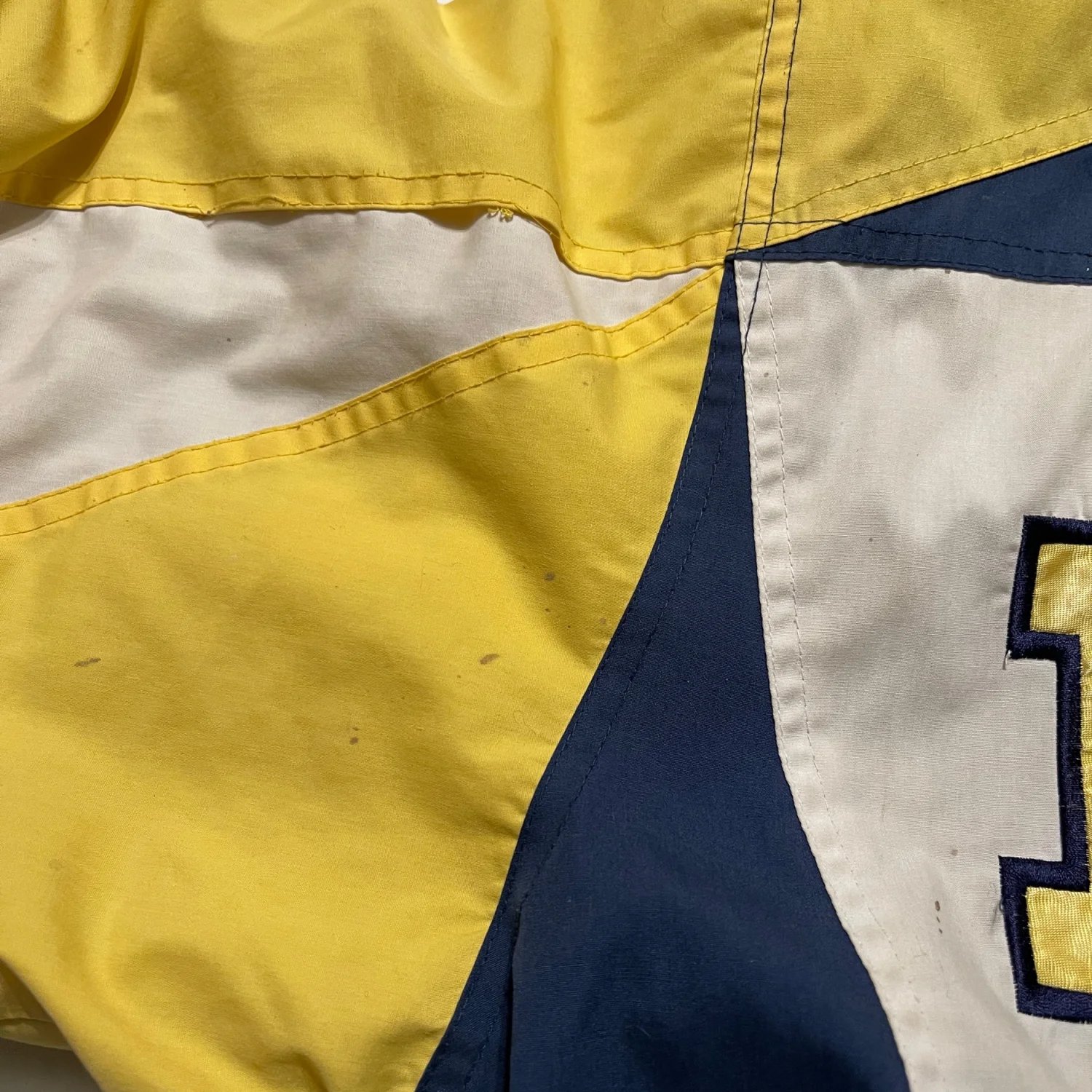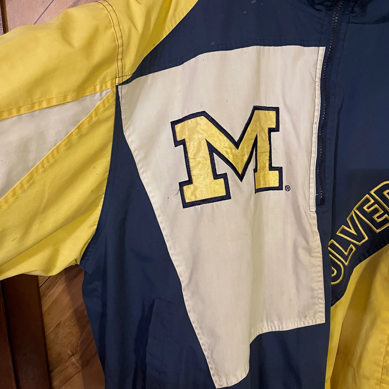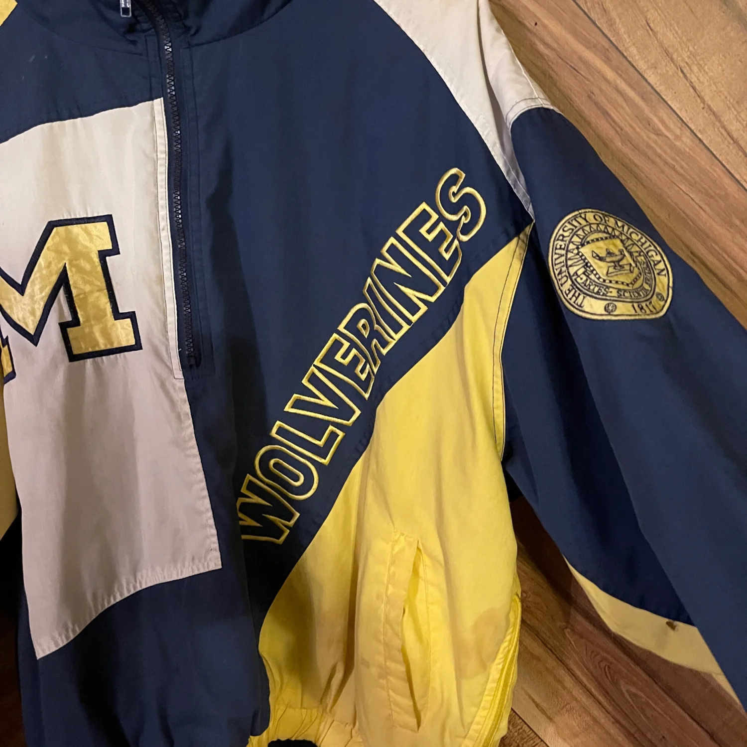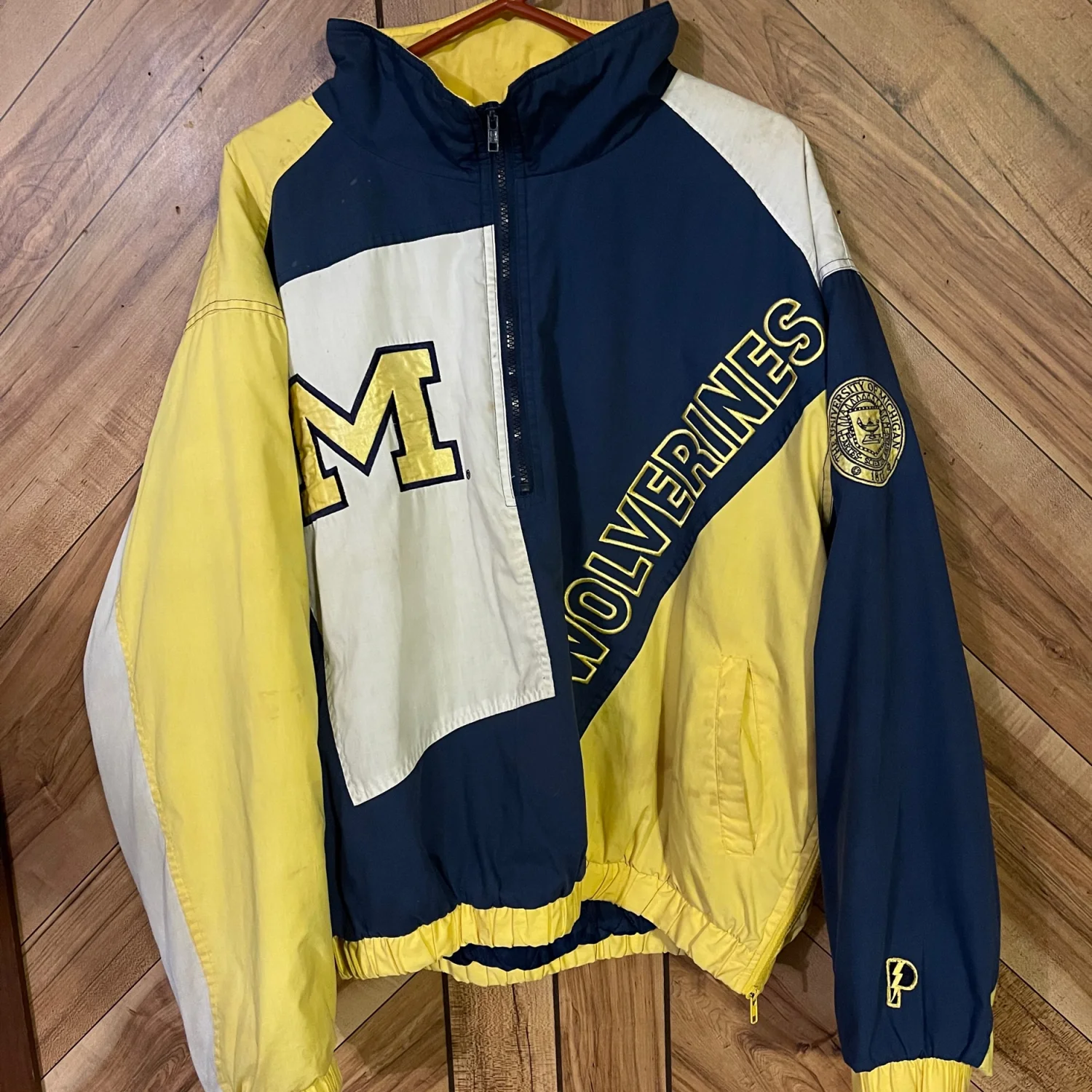 The jacket is packed with premium details, including an embroidered "M" logo, "Wolverines" script across the front and back, the University of Michigan seal on the sleeve, and the iconic Pro Player "P" logo on the cuff. With its mock neck, half-zip closure, and elastic cuffs/hem, it's the ultimate layer for a chilly Saturday at the Big House. • Condition: Very Good Used Condition (VGUC). Shows some light vintage wear with a few small spots/marks consistent with age (see photos); these have not been treated and may lift with professional cleaning. • Size: Men's XL (Extra Large) • Brand: Pro Player • Era: 1990s Measurements are approximate lying flat: Chest 29” Length 24” #MichiganWolverines #GoBlue #VintageProPlayer #90sSportswear #VintageStarterJacket #UniversityOfMichigan #CollegeFootball #RetroStyle #Vintagewear #XL #Streetwear #GamedayGear #Wolverines #90sFashion #VGUC