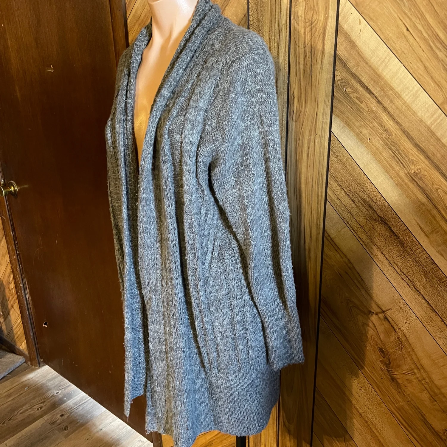 The soft knit fabric and relaxed silhouette offer an effortless boho or coastal grandmother vibe, while the neutral marled gray color ensures it pairs perfectly with your favorite jeans, leggings, or dresses. • Condition: Very Good Used Condition (VGUC). • Size: 1X (Torrid Size 1). • Color: Gray / Heathered Gray. • Material: Soft, lightweight cable knit. • Features: Open front, long sleeves, cable knit texture, breathable knit. #Torrid #TorridPlusSize #Size1X #GrayCardigan #CableKnit #OpenFrontCardigan #PlusSizeFashion #BohoChic #CoastalGrandmother #LightweightSweater #LayeringPiece #CozyVibes #ResaleFashion #VGUC Measurements are approximate lying flat: Chest 22” Length 30”