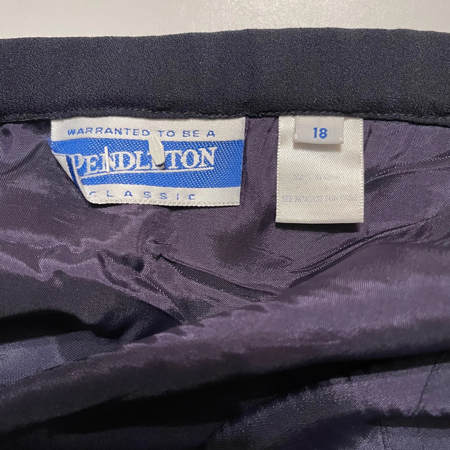 Vintage Pendleton Women’s Navy Blue Size 18 Faux Wrap Knee Length Skirt
