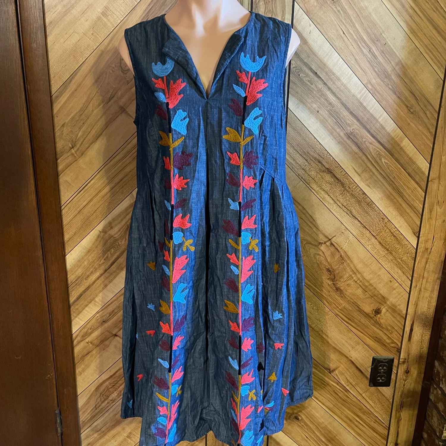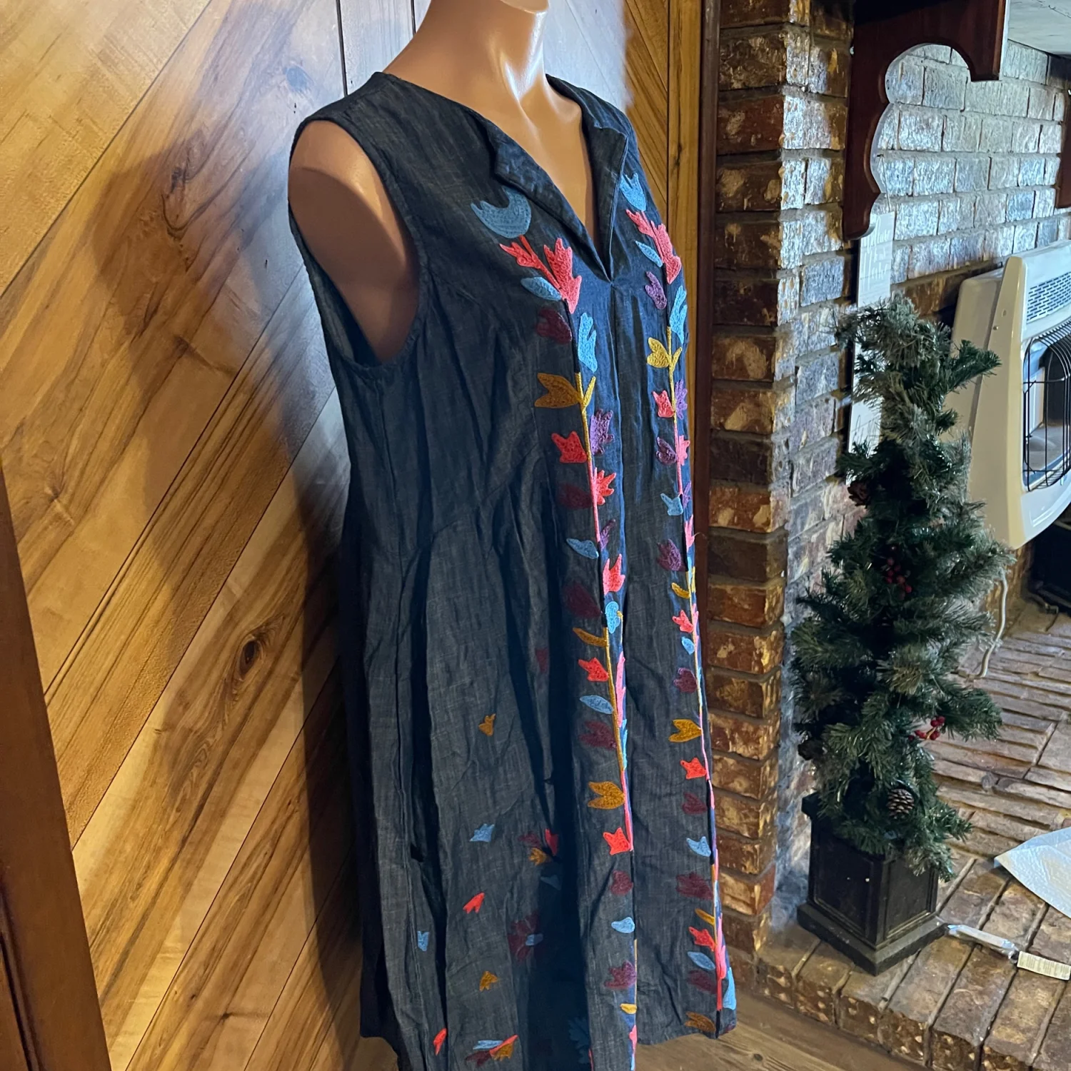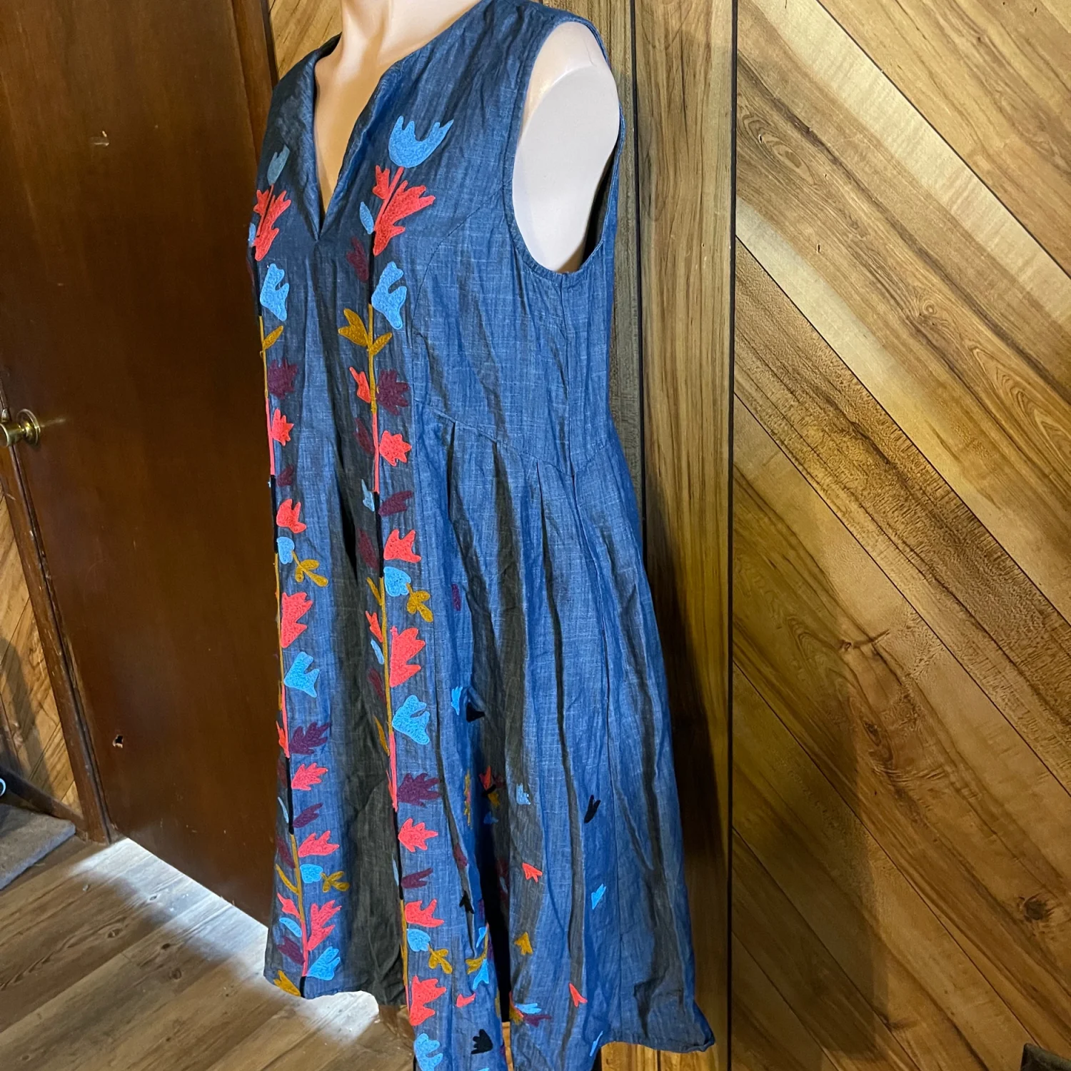 Wayward Fancies eShakti Women’s Large Sleeveless Embroidered Denim Dress