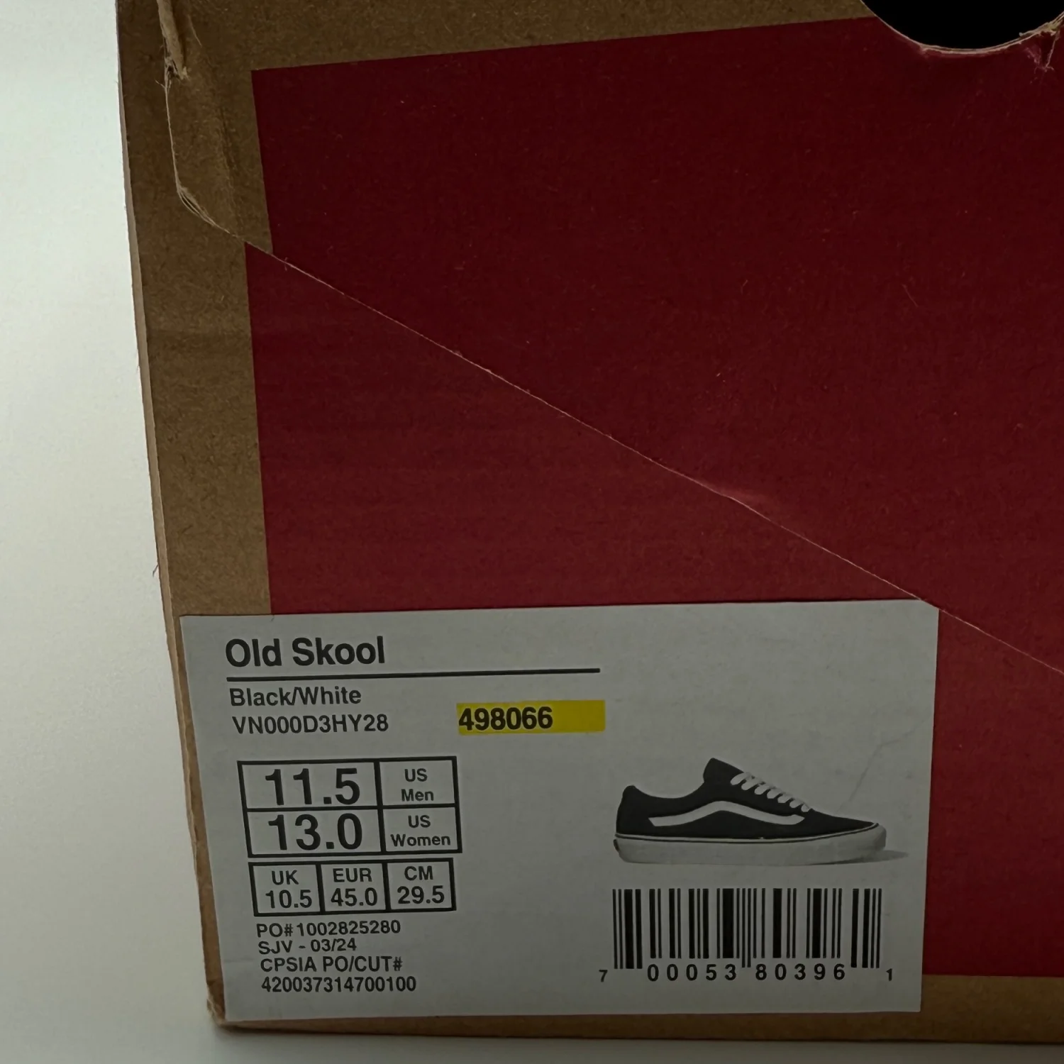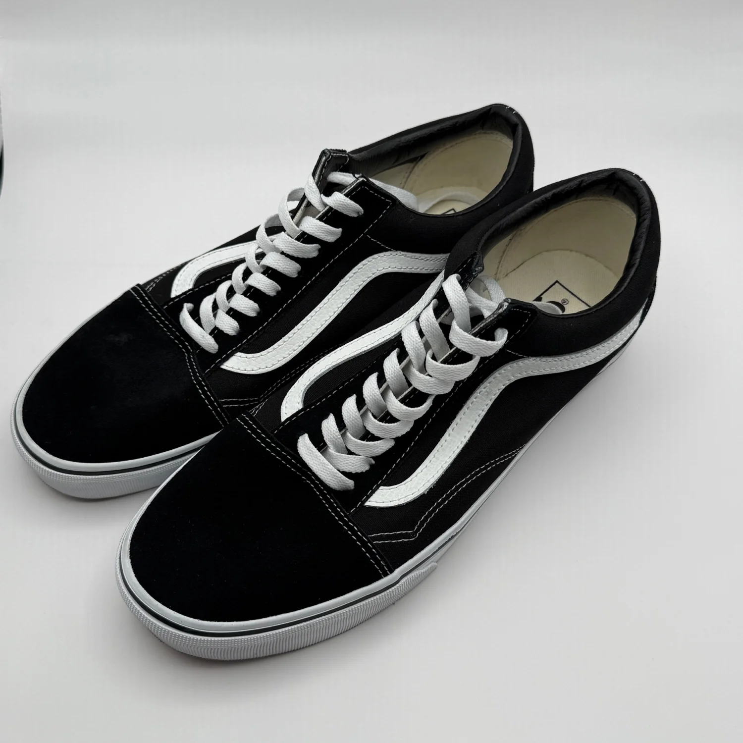 The VANS Old Skool Black White Canvas Sneakers are versatile athletic shoes suitable for both men and women. Featuring a lace-up closure and a low-top shoe shaft style, these sneakers are perfect for casual or activewear occasions in all seasons. The rubber outsole provides durability and the foam insole ensures comfort for school or skateboarding activities. With the iconic VANS brand and classic old-school design, these sneakers are sure to become a stylish staple in anyone's wardrobe. US Men 11.5 US Women 13.0 UK 10.5 EUR 45.0 CM 29.5 Please feel free to reach out with any questions before completing your purchase.