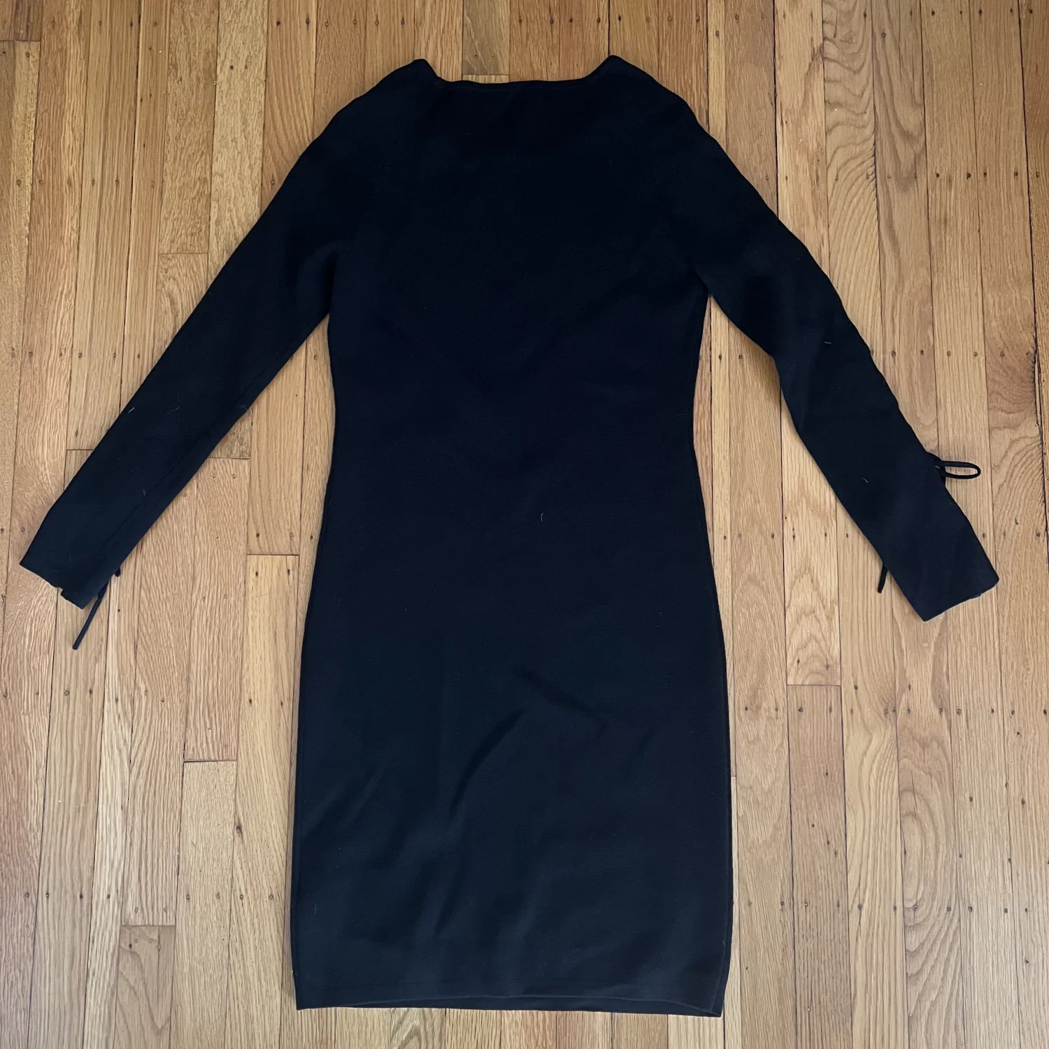 Anne Fontaine black knit midi dress with lace-up long sleeves and a round neckline. “Size 40”