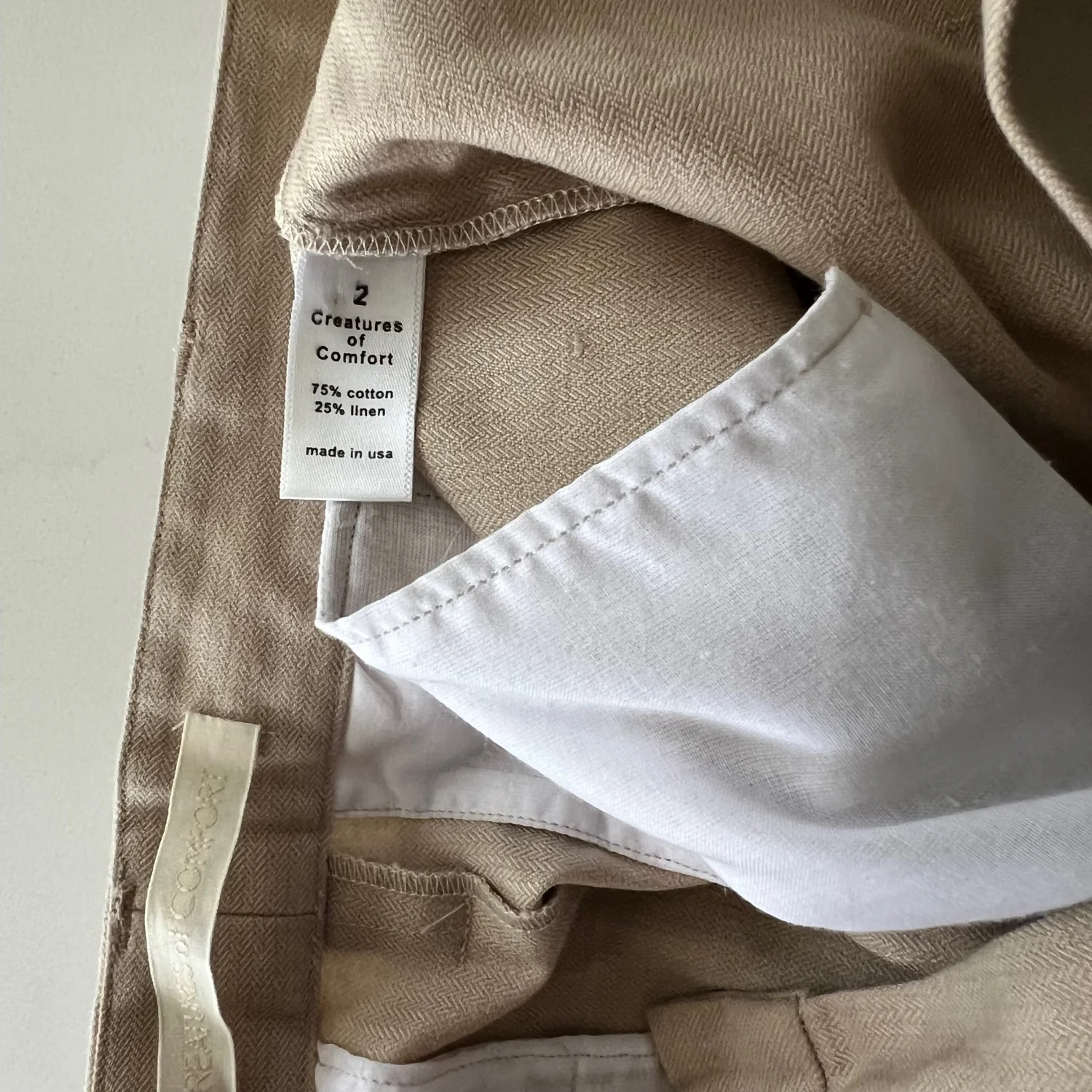 High waisted shorts, size 2. Creatures of comfort. 75% cotton, 25% linen ~6.5” inseam ~ 18.5” length
