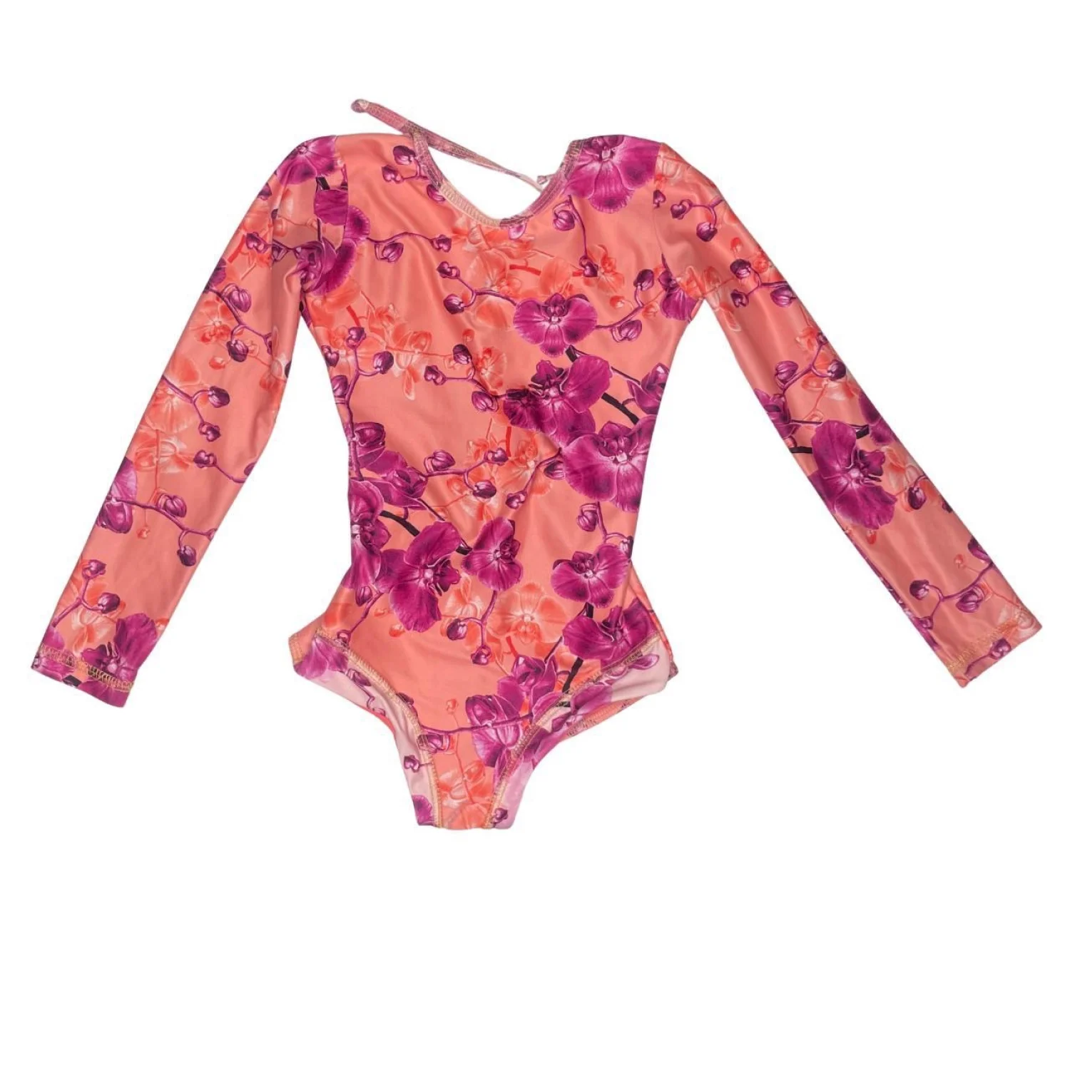 Features: The cutest designer swimsuit for your mini! Mar de Lua orchid print long-sleeve one-piece. Stunning shades of pink and coral. Has an open back with adjustable ties. High-end Colombian swim brand, very well made and sustainable. Perfect for beach days or surf lessons! ⢠Style Profile: kidsfashion, mini, beachbaby, floral, tropical, designerkids, sunprotective, rashguard, vacation, resortwear, coastal, sustainable, orchid, boho, luxurykids ⢠Flaws: No Holes, stains, or tears (Excellent pre-owned condition) Happy to answer your questions! Super Fast Shipper!