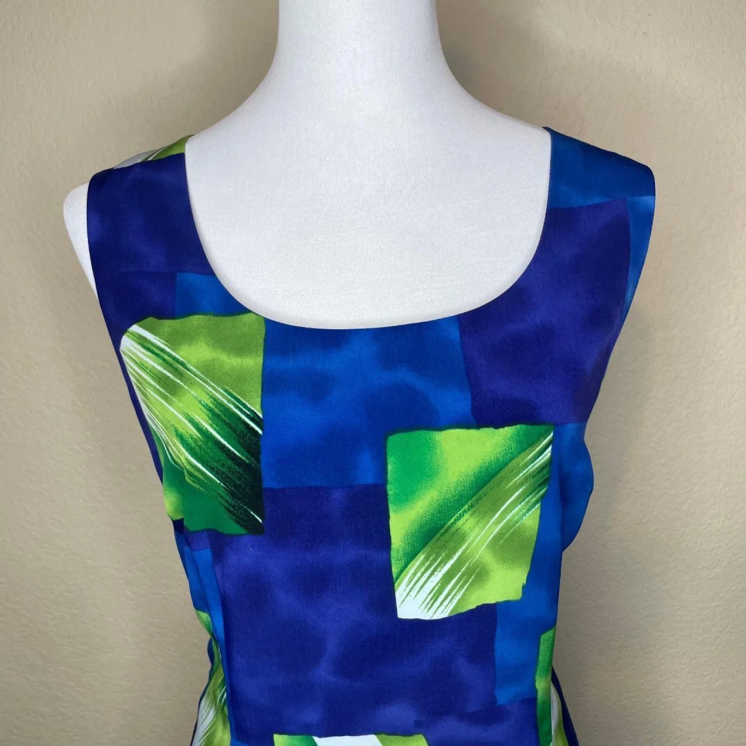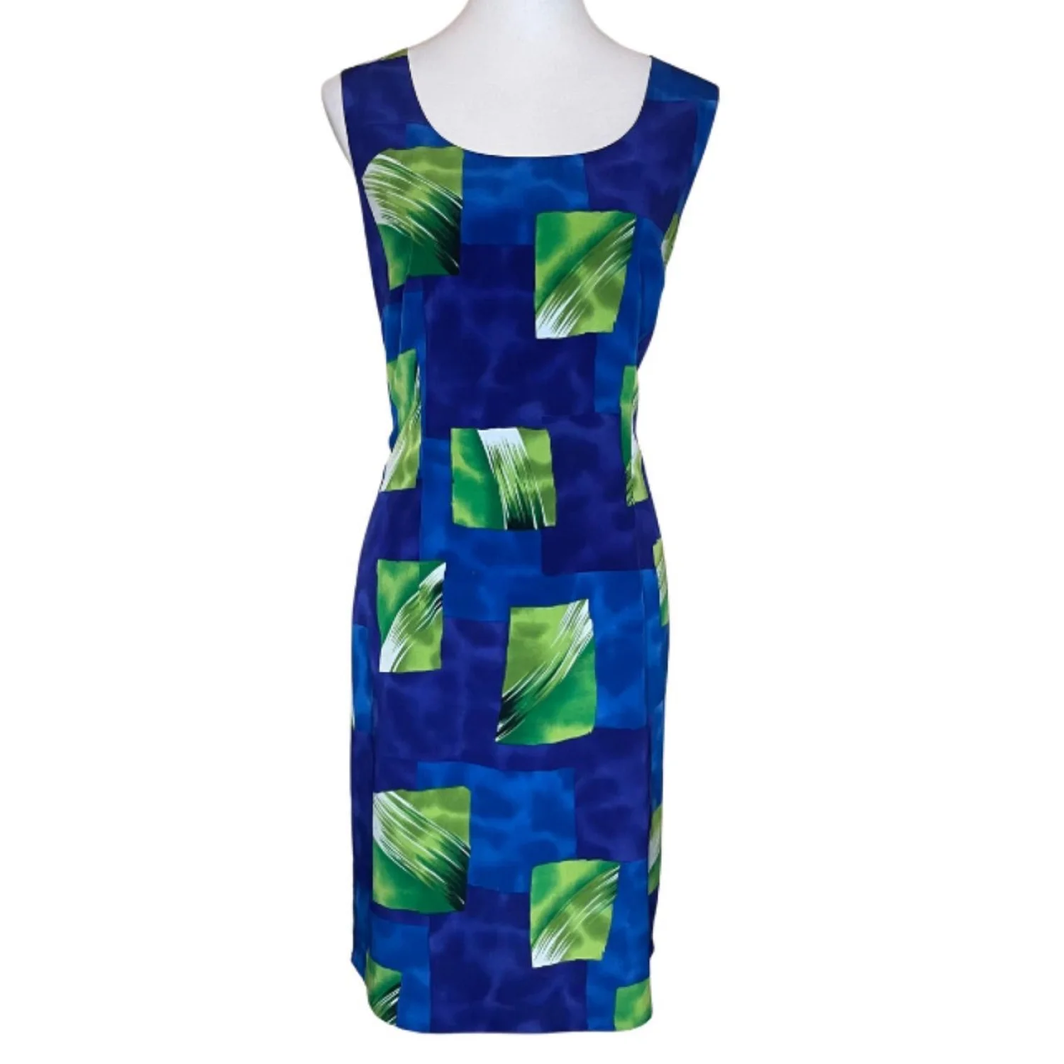 90s Vintage John Roberts Artsy Geometric Sheath Dress 🎨 Features: Description: The ultimate 90s art teacher energy! This vintage John Roberts sheath dress has the coolest abstract geometric print in vibrant blues and greens. Features a sleeveless cut and a flattering fit. Perfect for a dopamine dressing moment. • Style Profile: 90s, vintage, artsy, eclectic, maximalist, geometric, abstract, dopamine dressing, retro, indie, funky, sleeveless • Flaws: No Holes, stains, or tears (Excellent vintage condition with no flaws.) • All measurements are approximate PTP: 20" Length: 38.5" Happy to answer your questions! Super Fast Shipper!