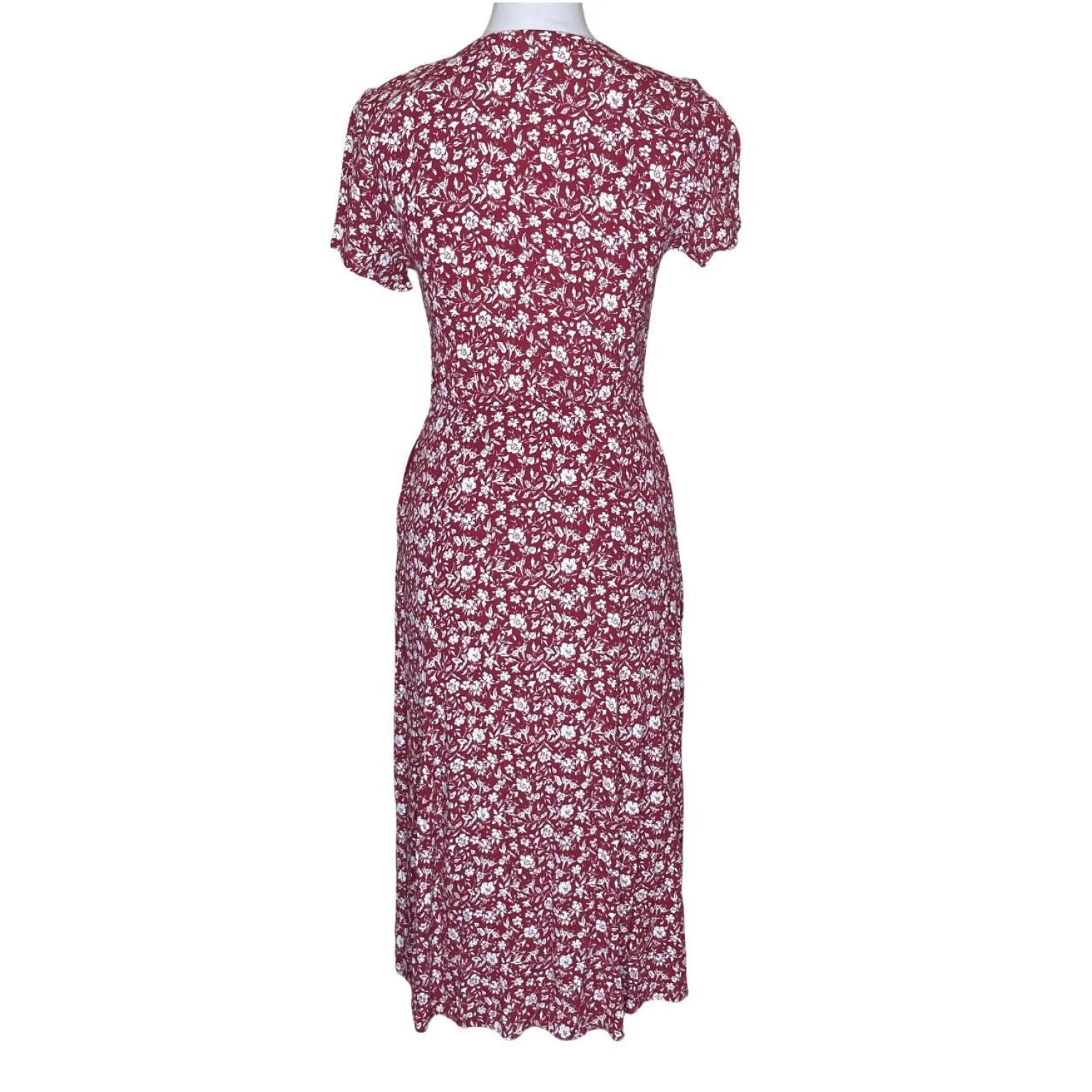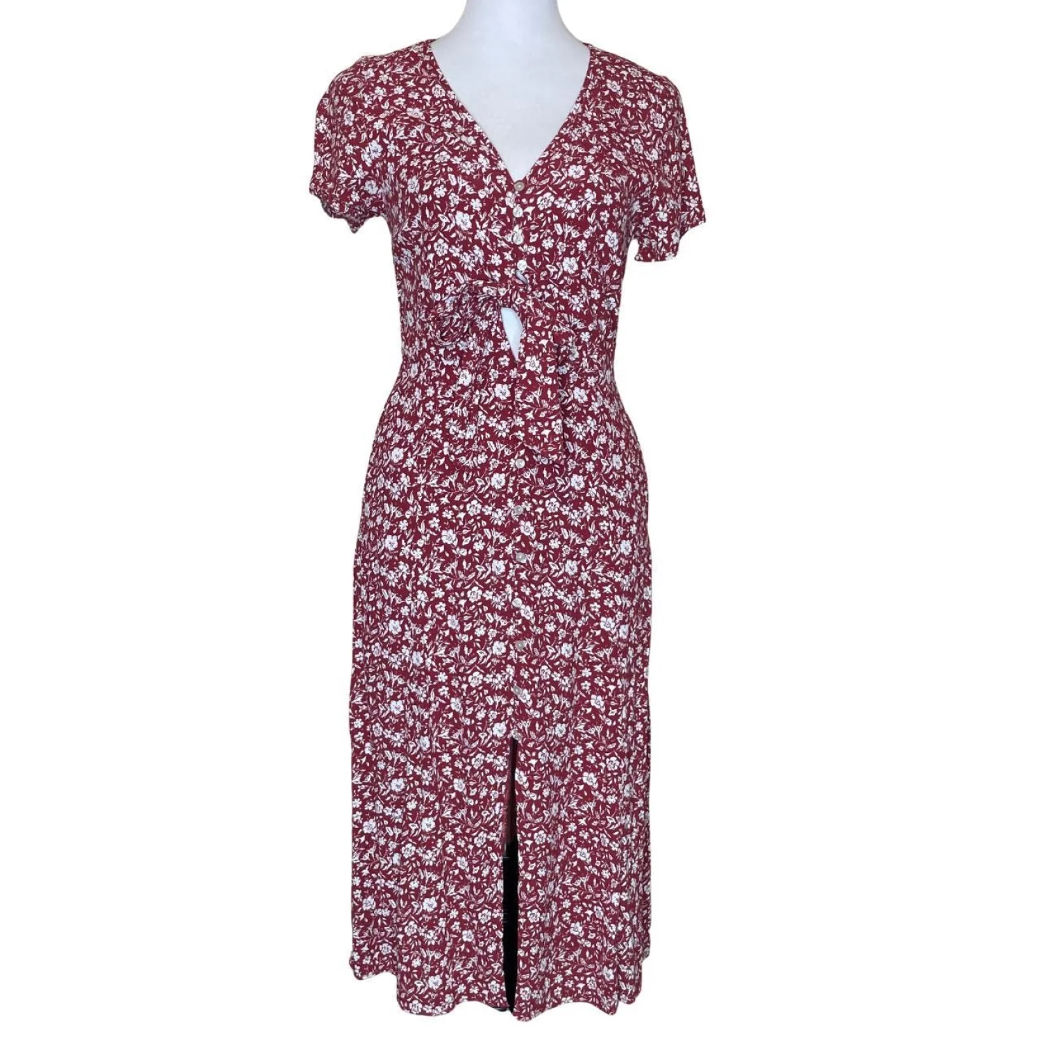 Abercrombie & Fitch Floral Orange Button Up Tie Waist Midi Dress