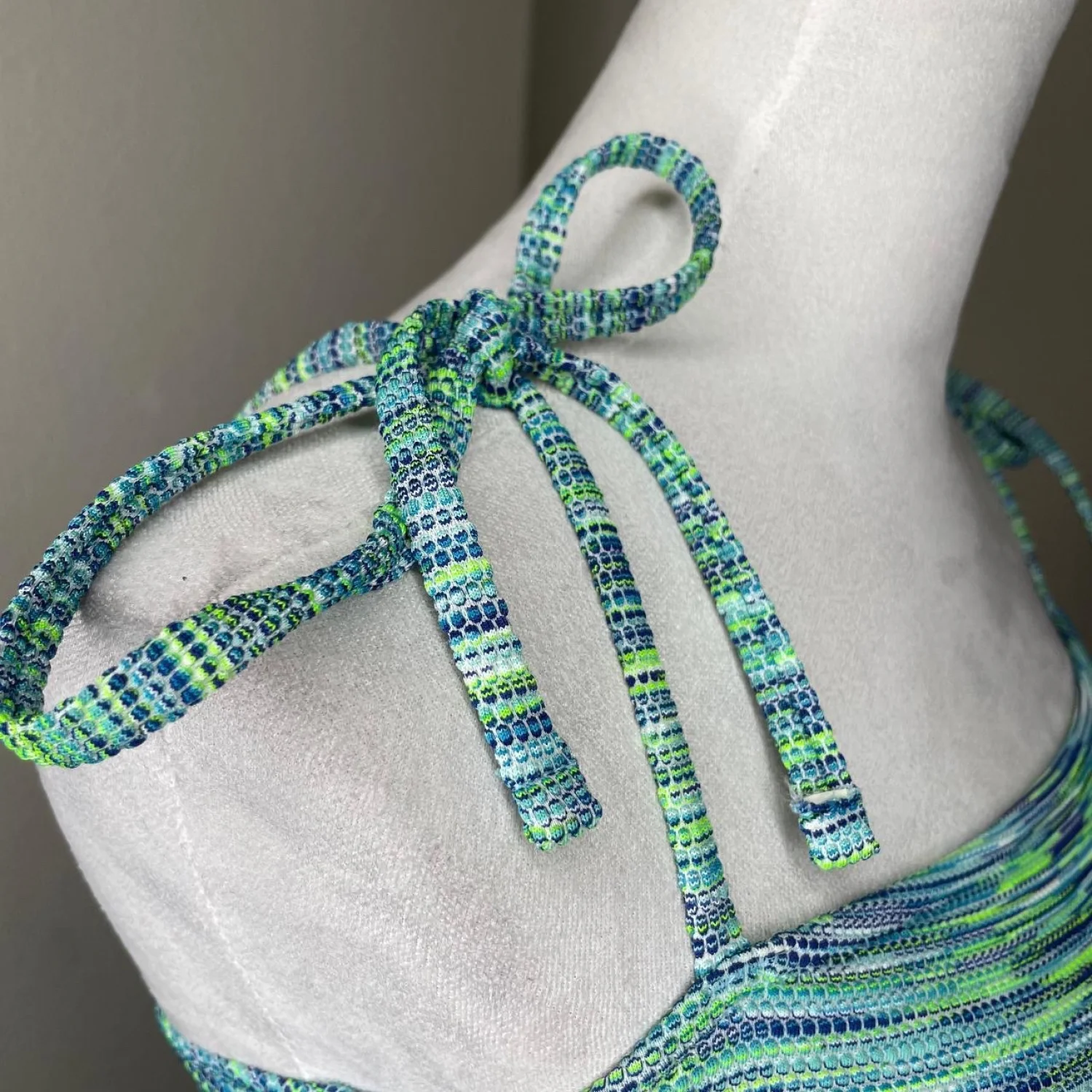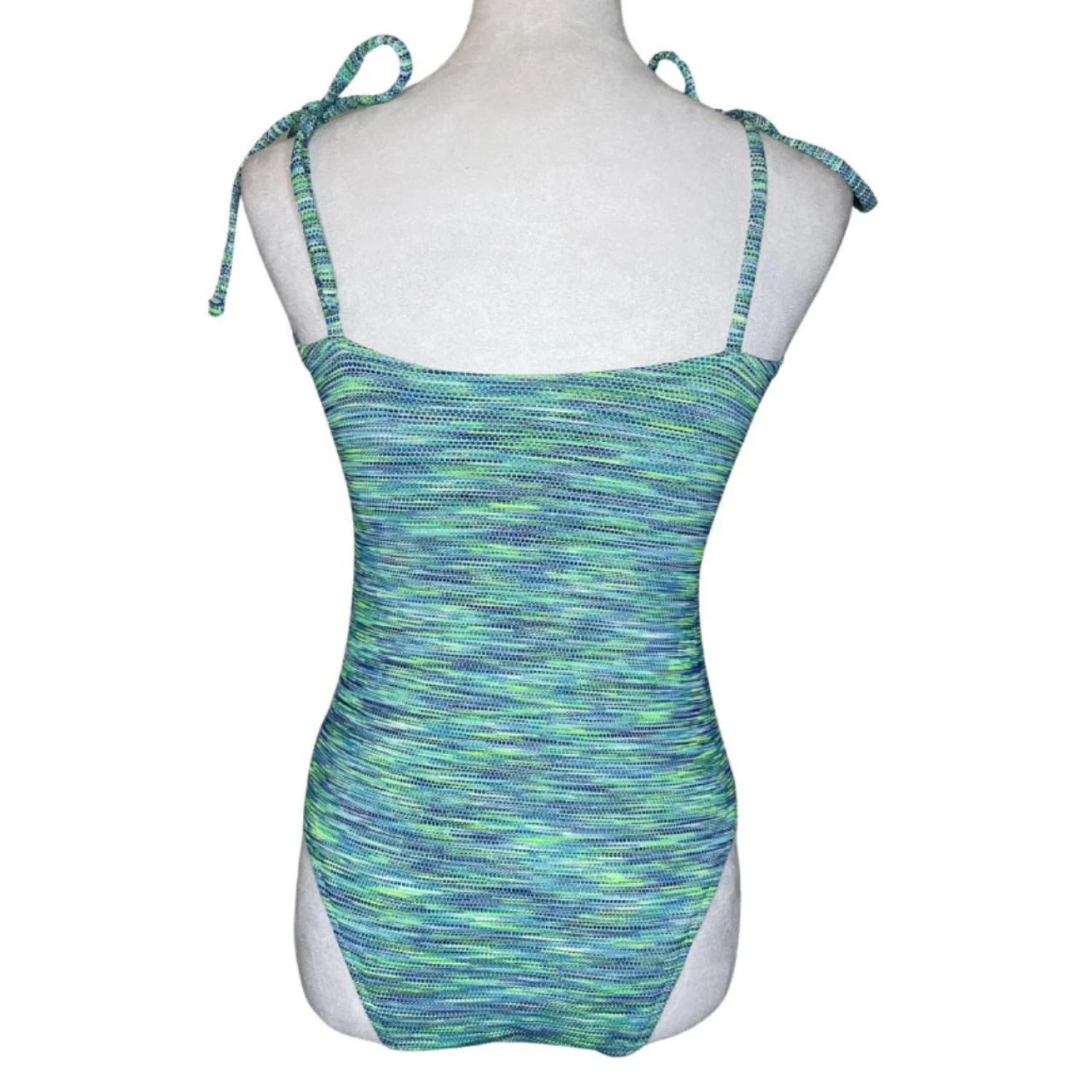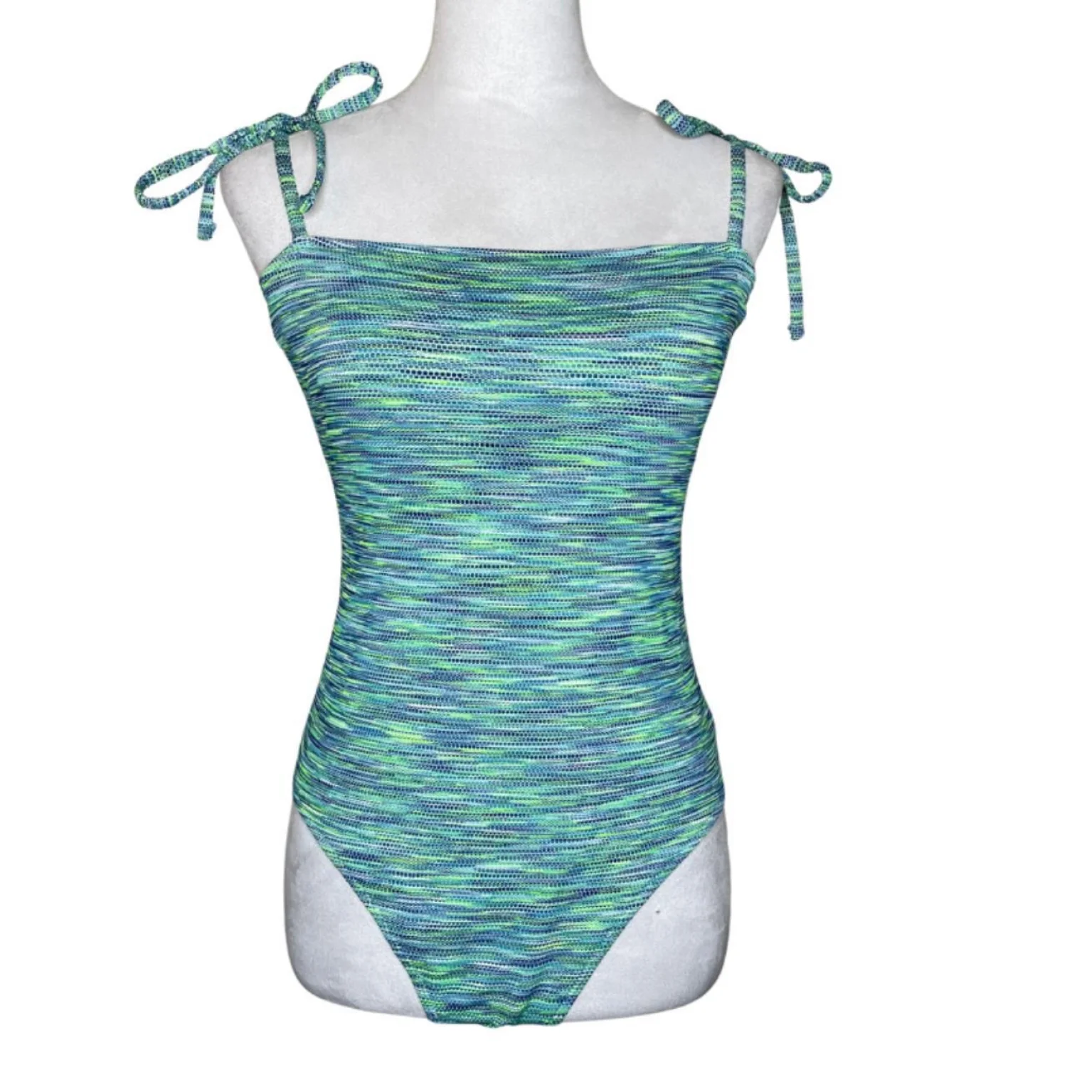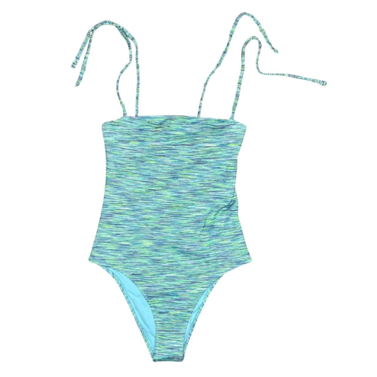 Aerie Space Dye Pique Bandeau One Piece Cheeky Coquine Swimsuit Medium Features: Dive into summer with this adorable Aerie one-piece! Featuring a vibrant blue and green space dye pattern on a textured pique fabric. The functional tie-shoulder straps allow for a custom fit, and the cheeky cut is super flattering. Perfect for your next beach day or tropical getaway! • Style Profile: Beach, Tropical, Summer, Vacation, Coastal, Retro, Boho, Boho Chic, Mermaidcore, Colorful • Flaws: No Holes, stains, or tears • Happy to answer your questions! Super Fast Shipper!