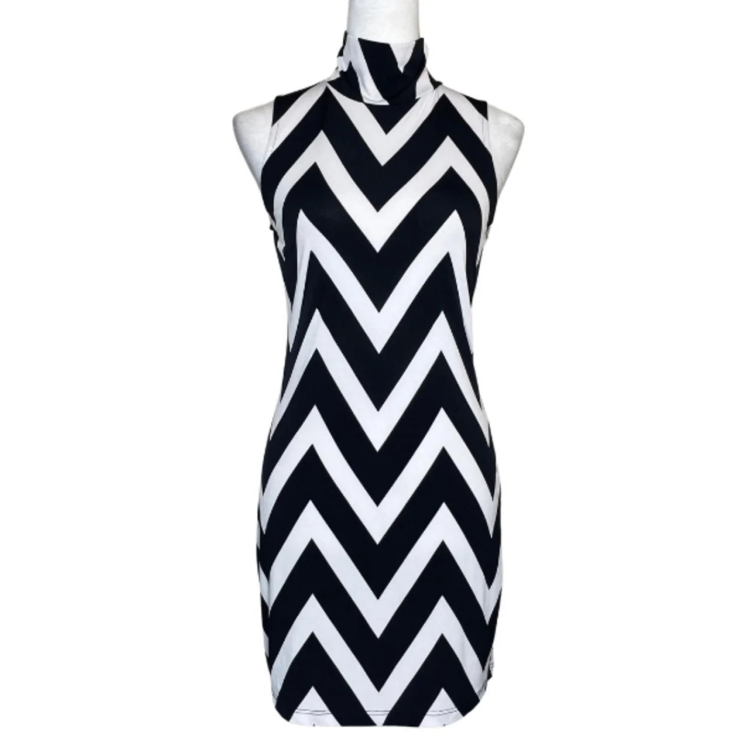 a'gaci Small Chevron Geometric Mock Neck Mini Dress Black & White Features: • Style Profile: Event Club Date Sexy Grunge Edgy • Flaws: No Holes, stains, or tears • Please see photos for measurements (in inches). PTP: 15.5' Length: 32.5' • Happy to answer your questions! Super Fast Shipper!
