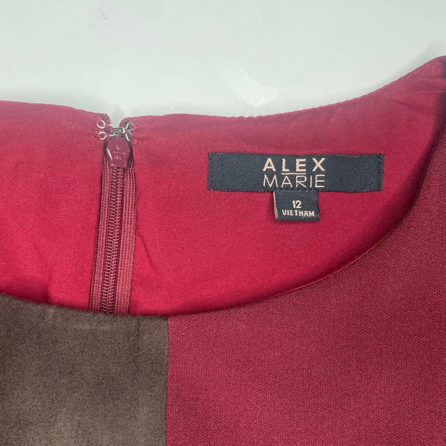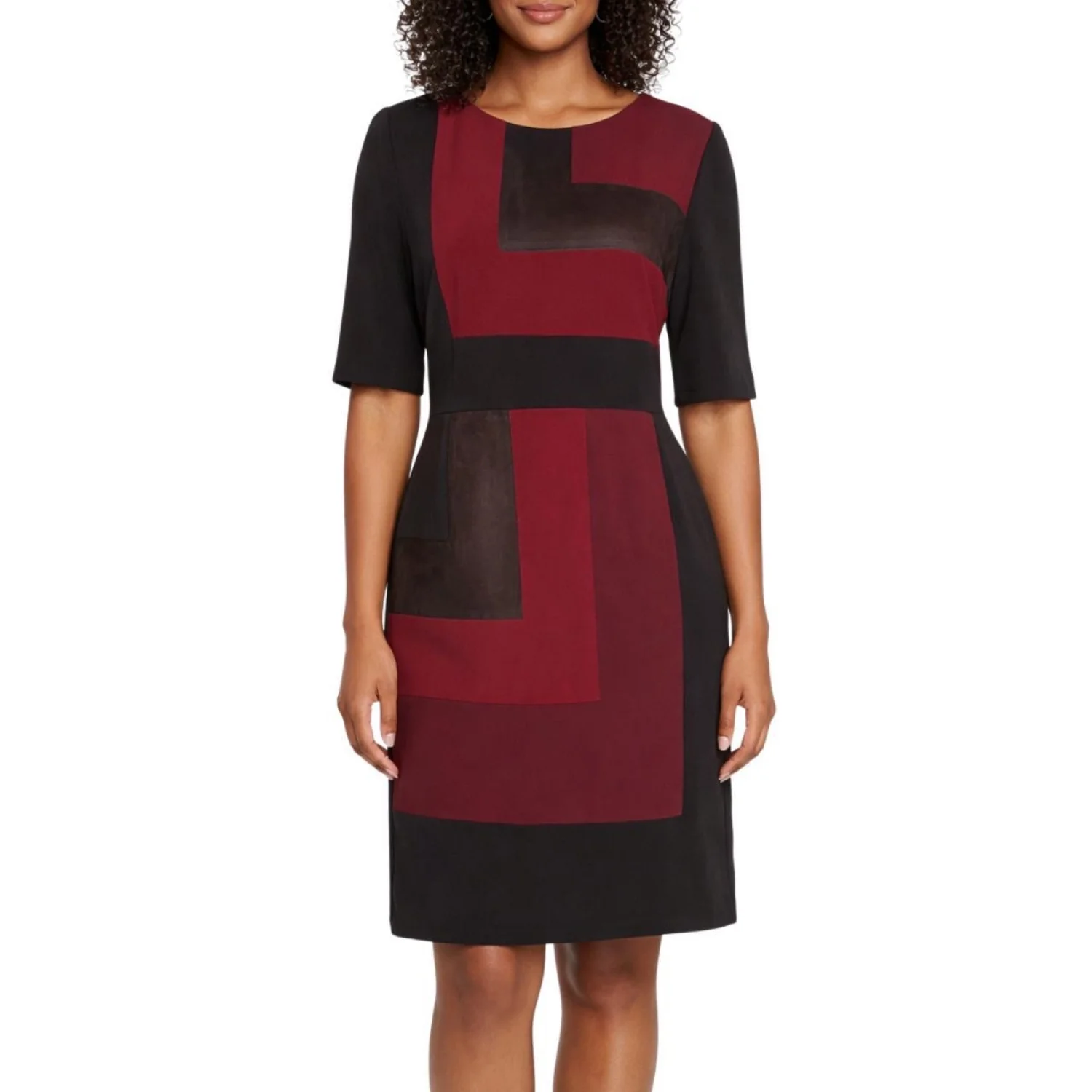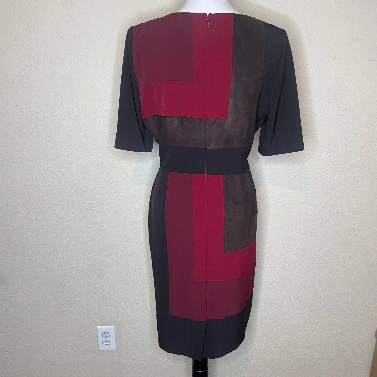 Vintage Inspired Colorblock Faux Suede Mini/Midi Dress Features: The ultimate 60s mod meets modern corporate chic. 🍷 This Alex Marie sheath dress features a stunning earthy colorblock palette of oxblood, espresso, and black. The faux suede feel is so soft and perfect for fall/winter layering. Style with sheer tights and platform loafers for a dark academia look. • Style Profile: careerwear, dark academia, mod, 60s inspired, minimalist, autumnal, corporate chic, geometric, colorblock, earthy tones, faux suede, sheath dress, office wear, sophisticated, modest, winter fashion • Flaws: No Holes, stains, or tears (Excellent pre-owned condition) • All measurements are approximate PTP: 19" Length: 38" Happy to answer your questions! Super Fast Shipper!