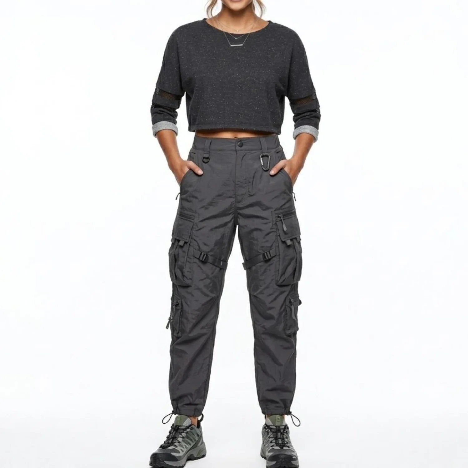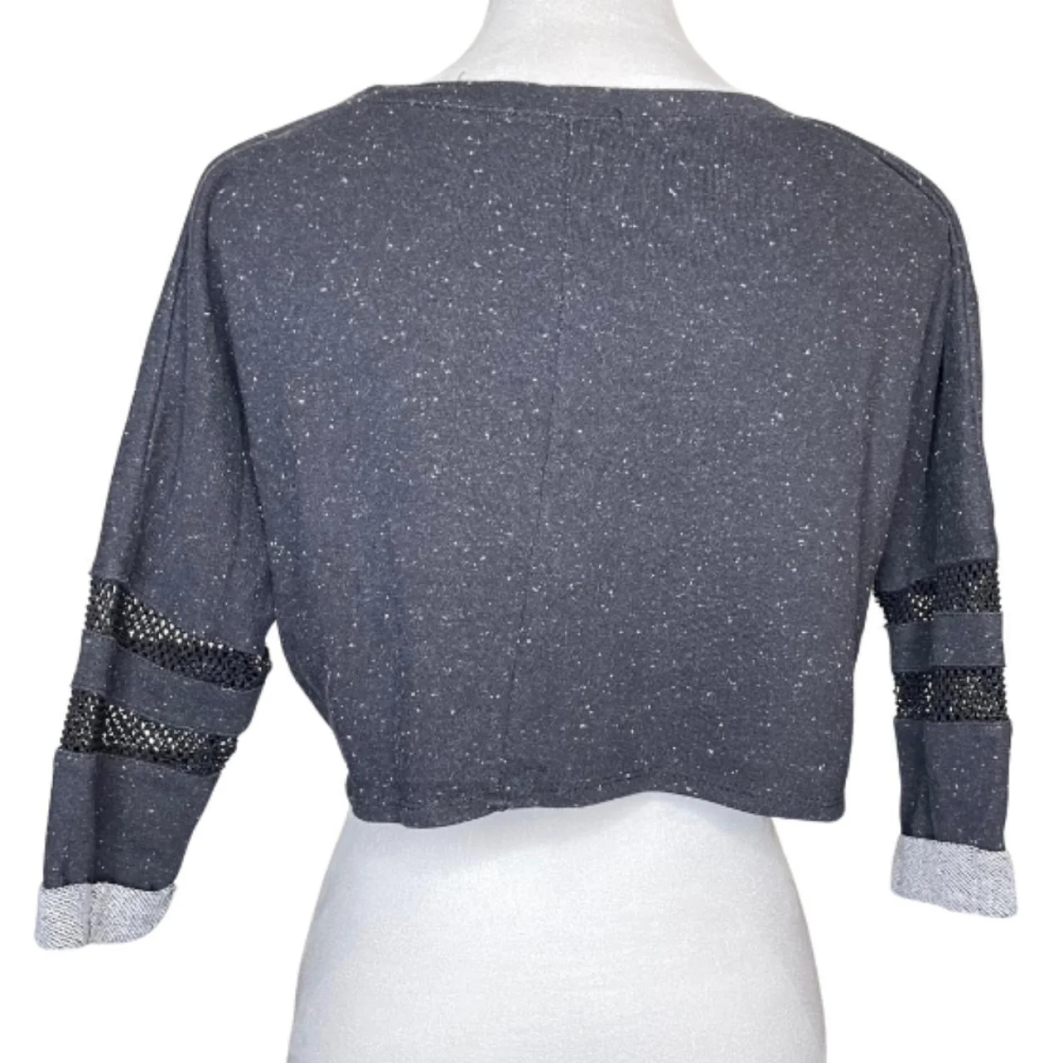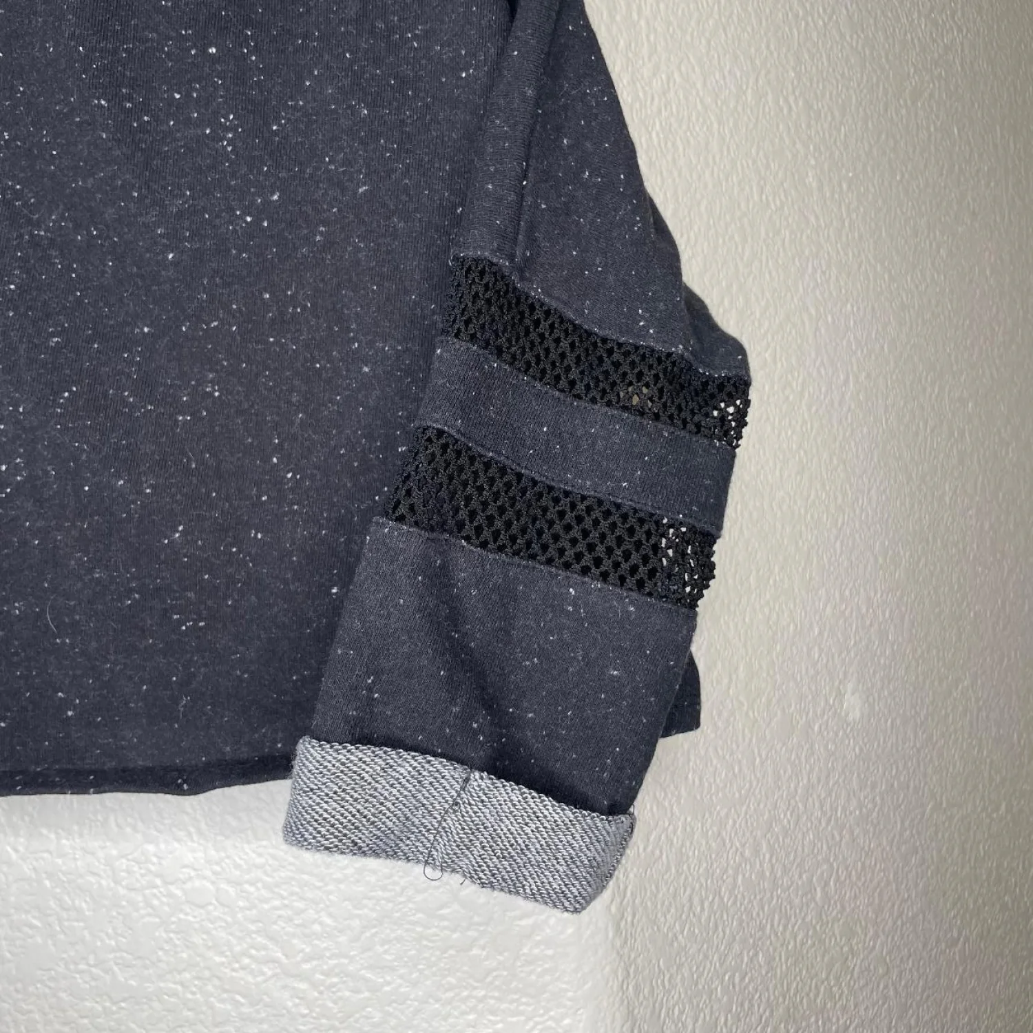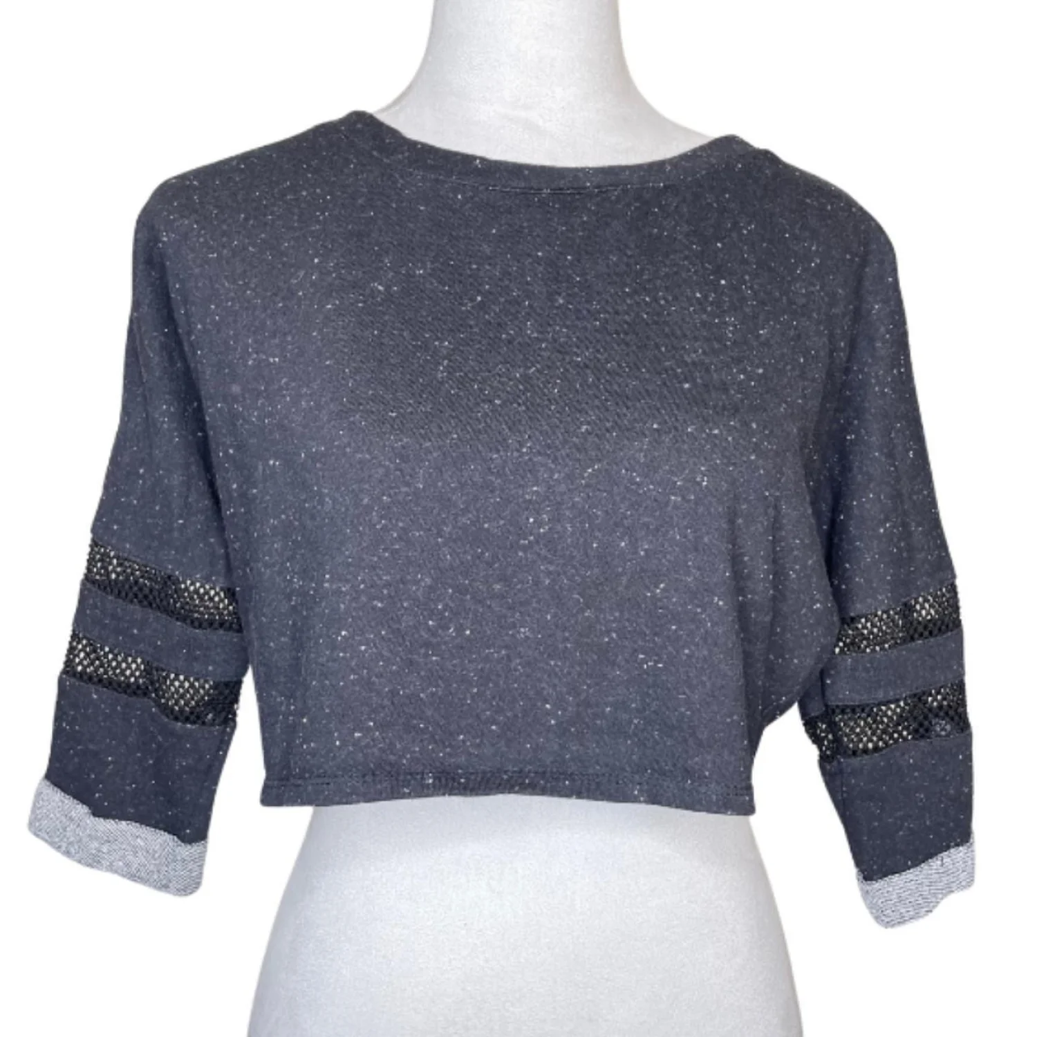 Ambiance Gorpcore Speckled Cropped Sweatshirt Mesh Sleeve Detail Grey S