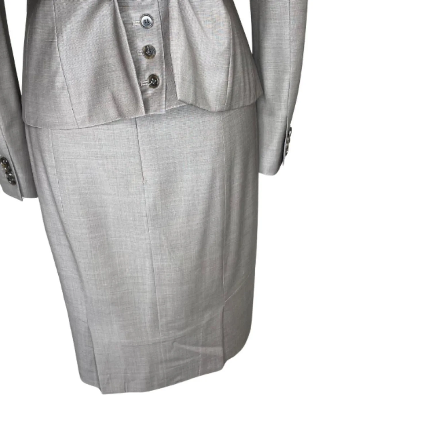 Offers Welcomed 🎉 Features: • Style Profile: Soft Luxury Academia Office Business, Career, Professional • Flaws: No Holes, stains, or tears • Please see photos for measurements (in inches) *Exact Skirt size is unknown, but measurements are shown Waist: 15' Skirt Length: 22' PTP: 17' Blazer Length: 23' Sleeve Length: 23' • Happy to answer your questions! Super Fast Shipper!