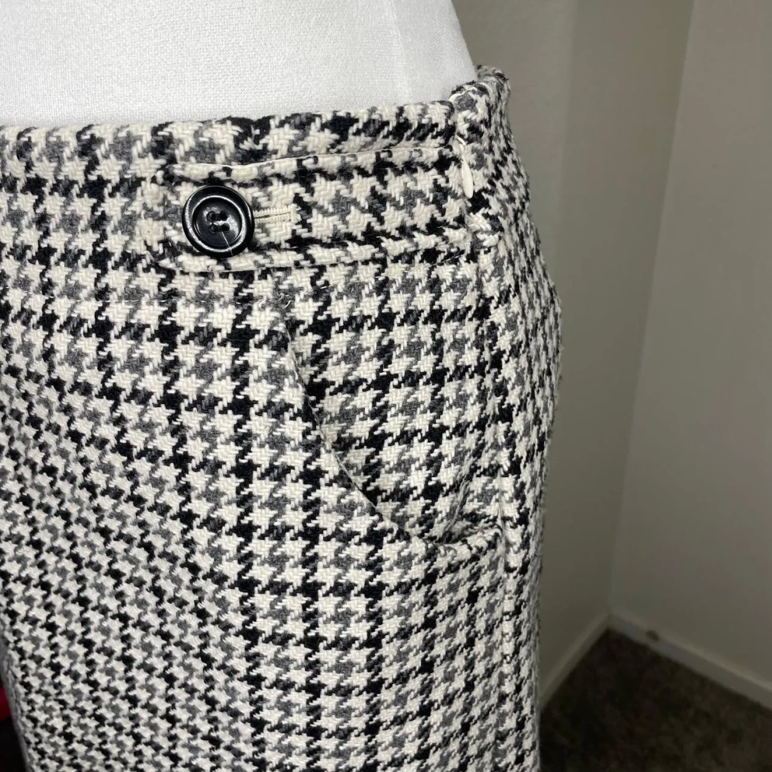 Ann Taylor Women's Wool Blend Houndstooth Preppy Career Pocket Pencil Skirt