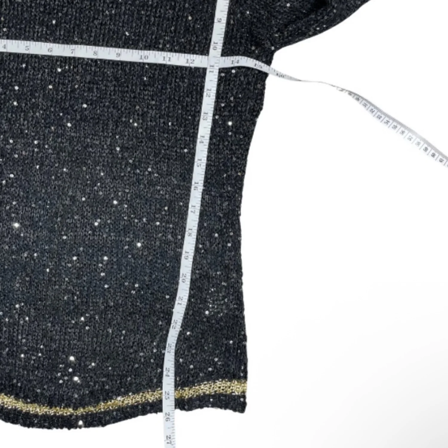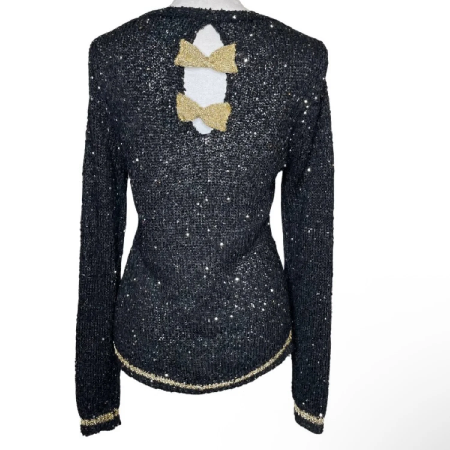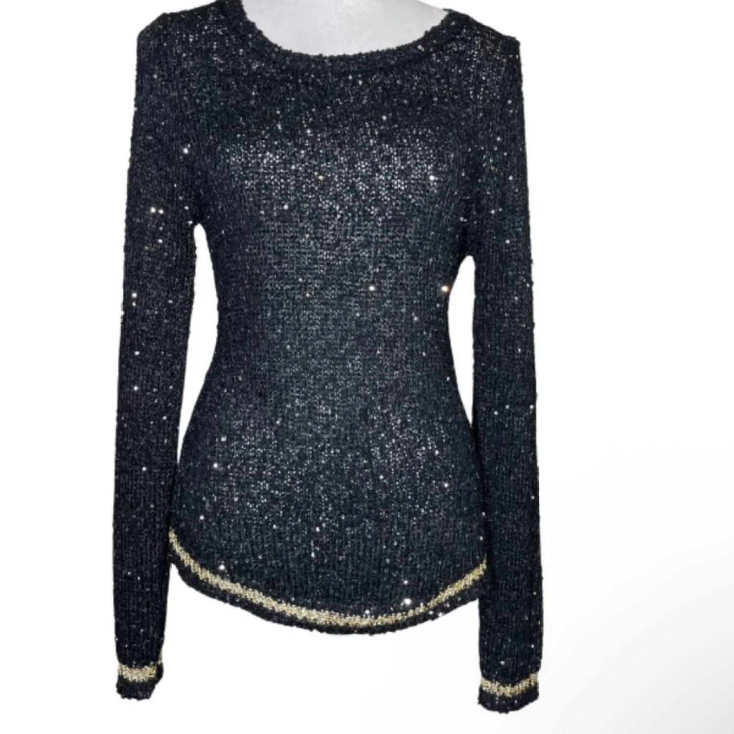Anthropologie Paper Crane Black Gold Shimmer Semi Sheer Sweater size M/L
