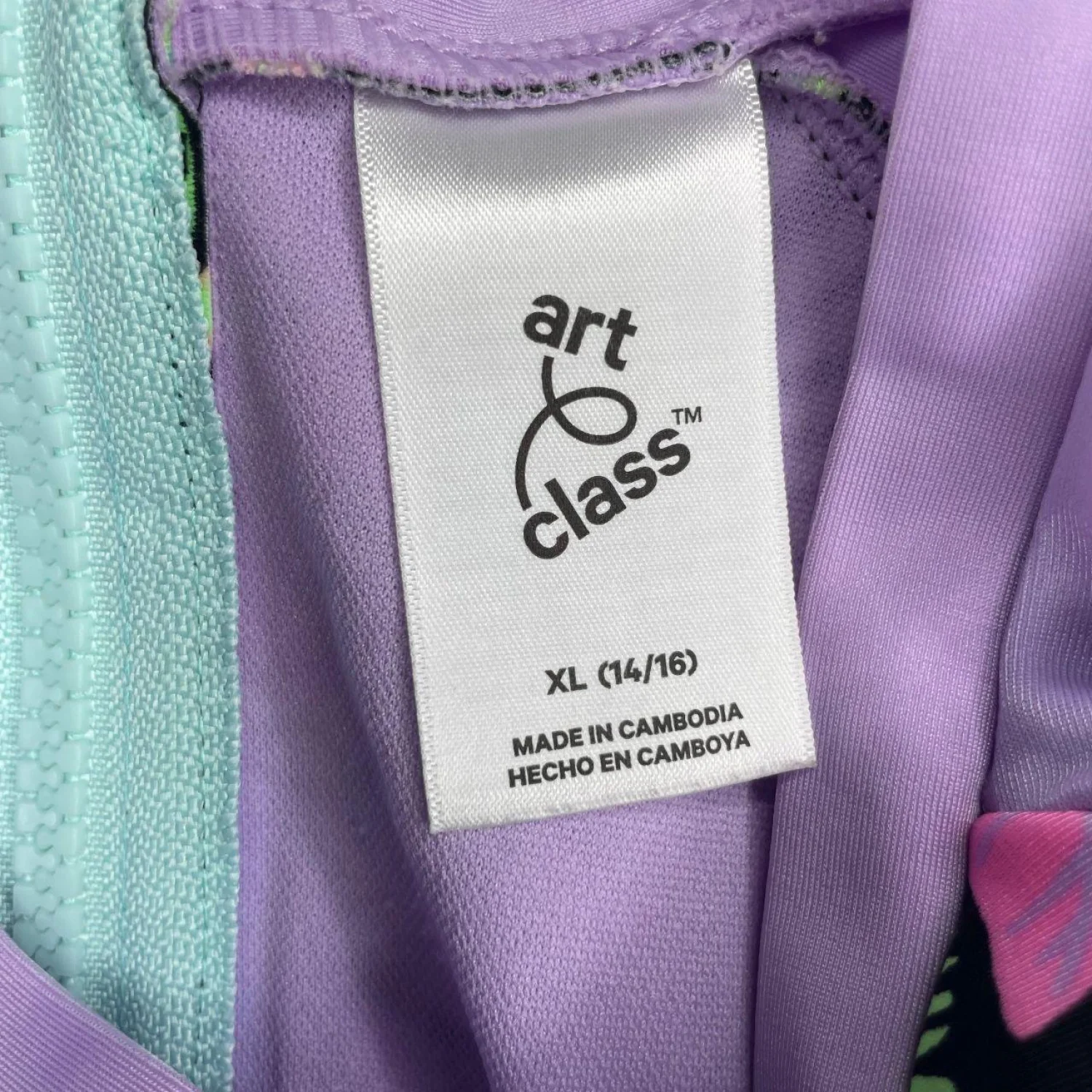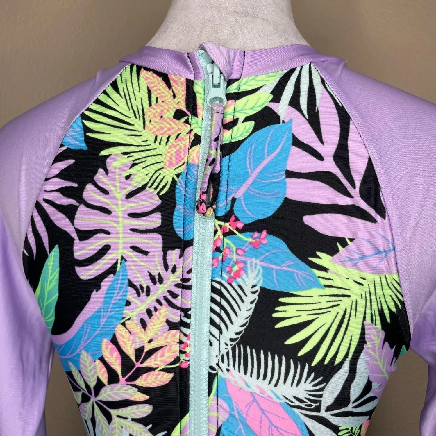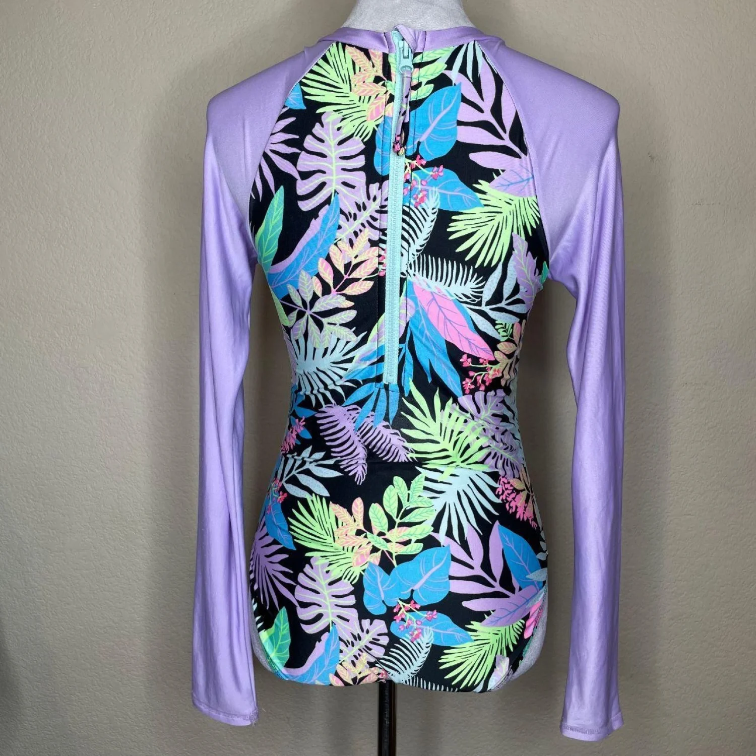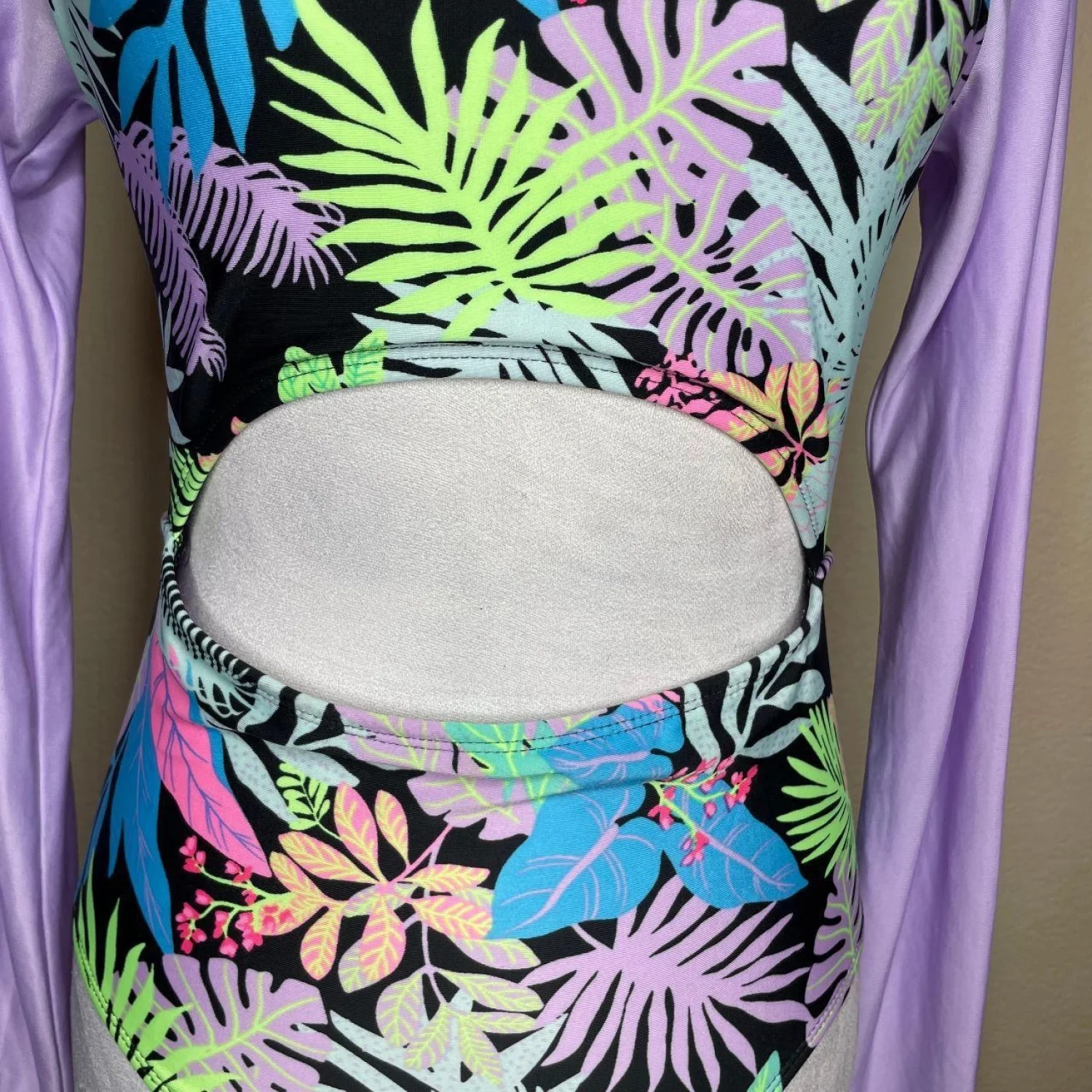 Art Class Tropical Neon Cutout Long Sleeve Swimsuit XL 14/16 Features: This Art Class one-piece hits that Cyber-Y2K meets Tropical Goth vibe perfectly. Features a sharp waist cutout and high-contrast neon botanical print against a black base. The raglan long sleeves in lavender provide extra coverage while the exposed back zipper adds a utility edge. Hits with a sleek, athletic silhouette and a supportive, high-neck finish. • Style Profile: Cyber Y2K, Tropical Goth, Neon Aesthetic, Kidcore, Surf Core, Streetwear, Botanical, Cutout, Utility, Summer 2026 • Flaws: No Holes, stains, or tears • Please see the photos for measurements (in inches). PTP: 12.5' Happy to answer your questions! Super Fast Shipper!
