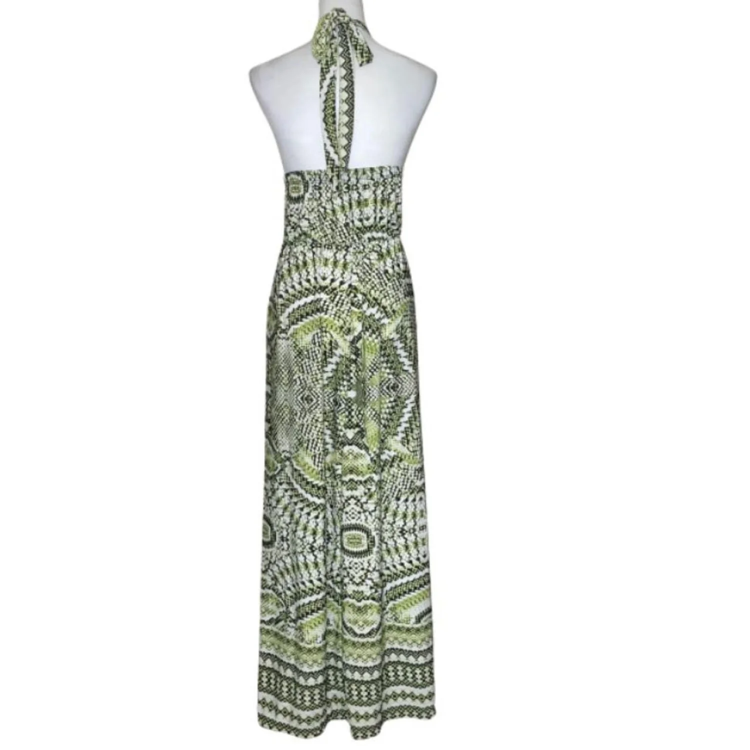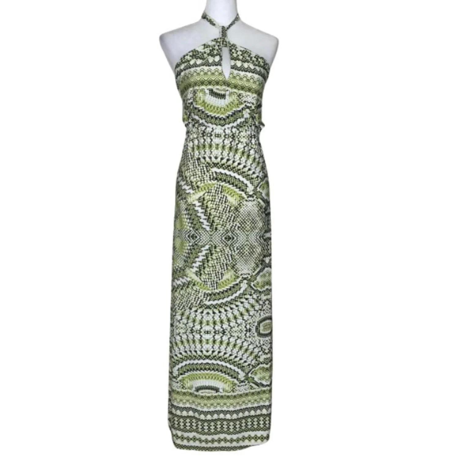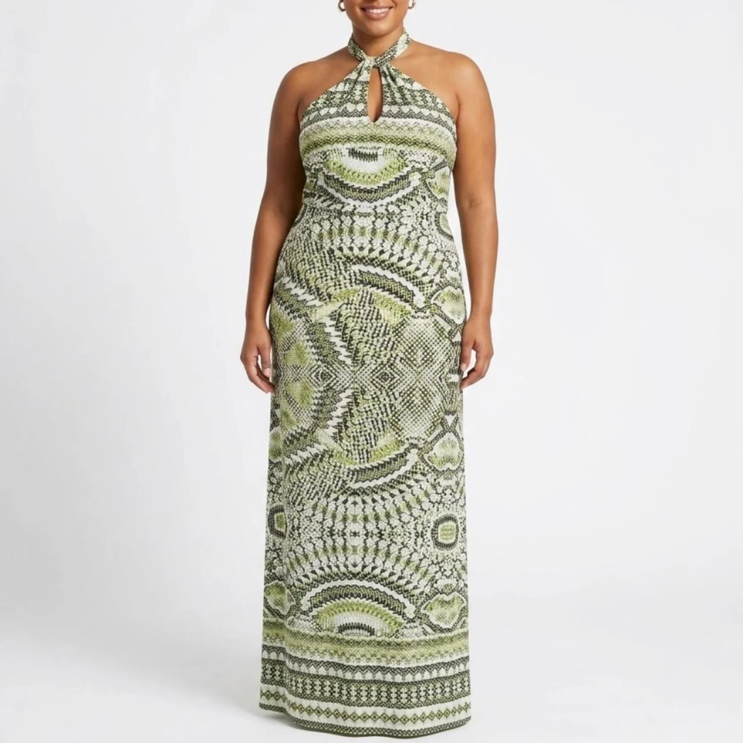 Ashley Stewart Lime Green Snake Geo Halter Maxi Dress 18/20