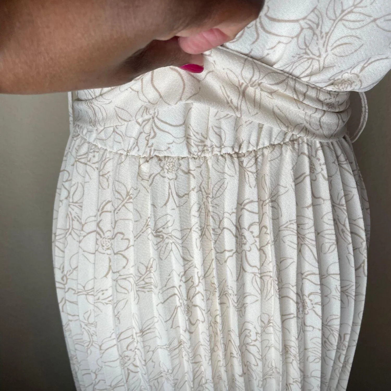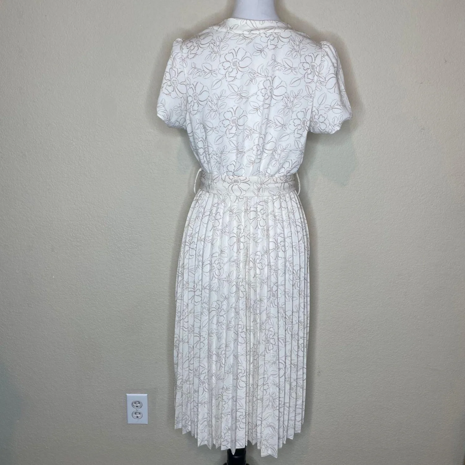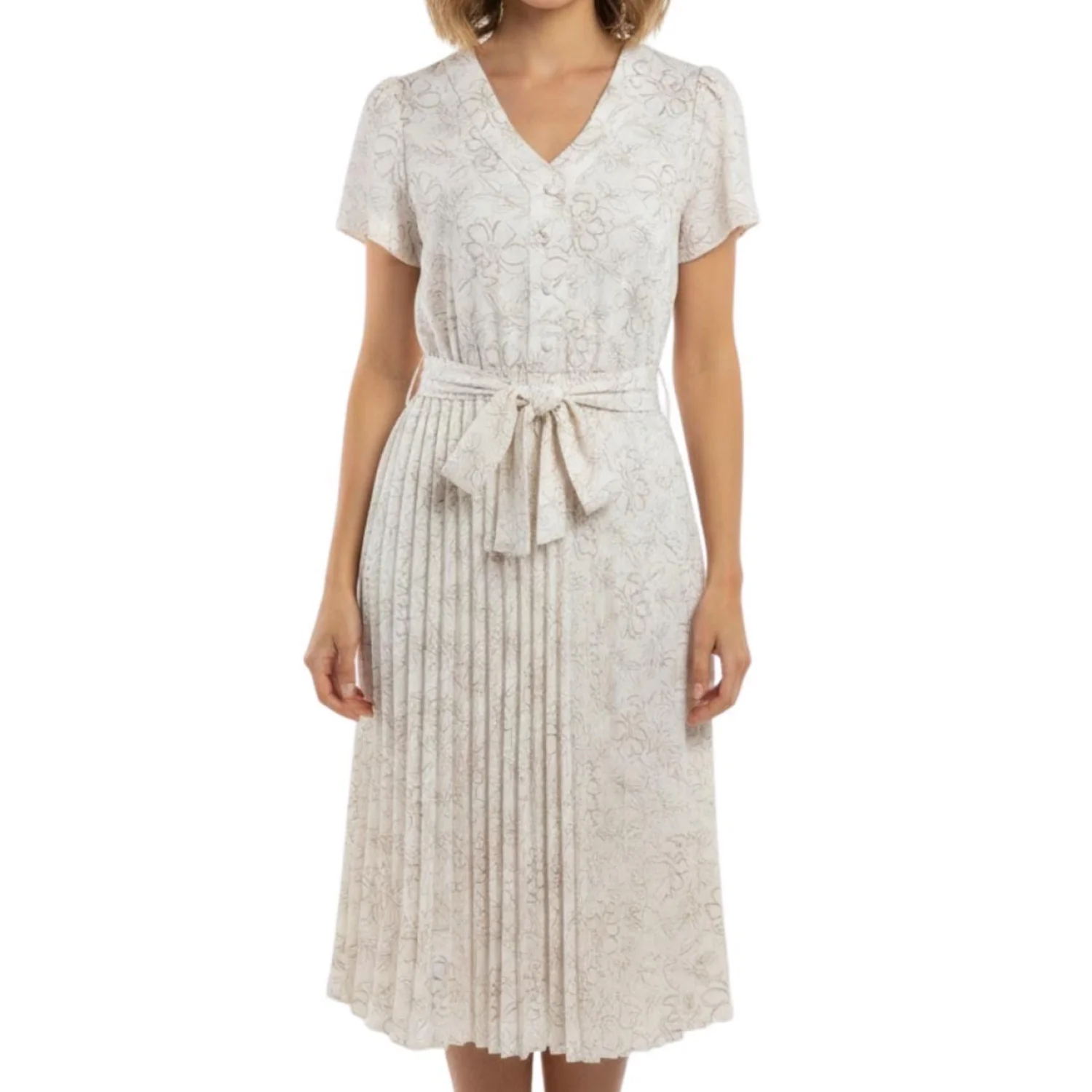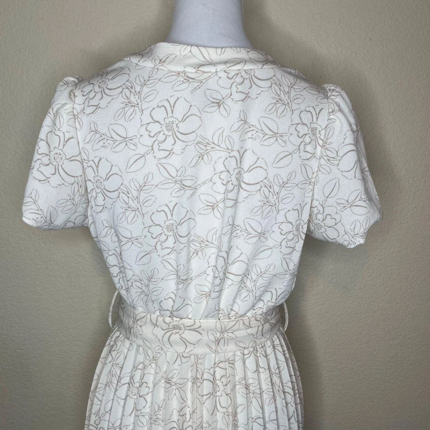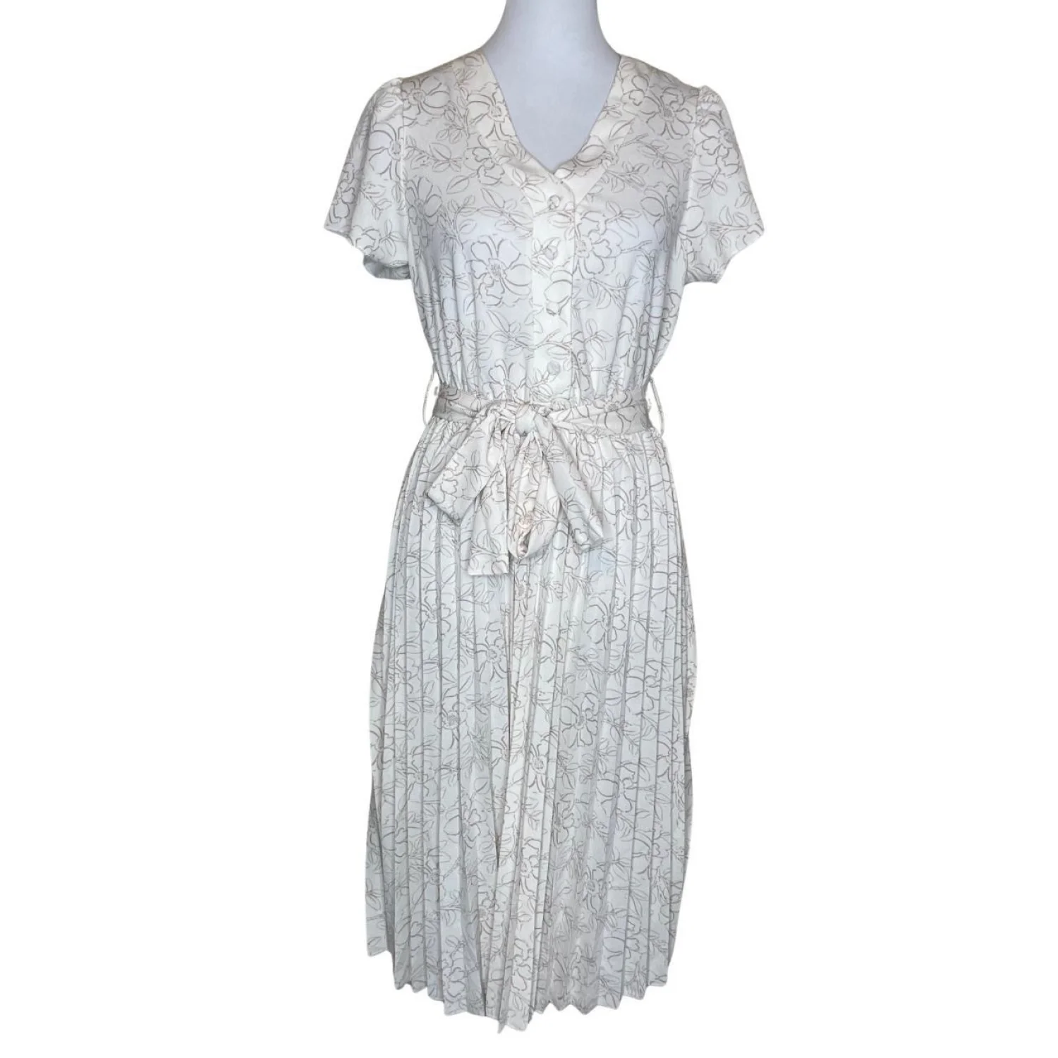 Ashly & Sage Floral Pleated Midi Dress – Cream/Taupe – Size Medium