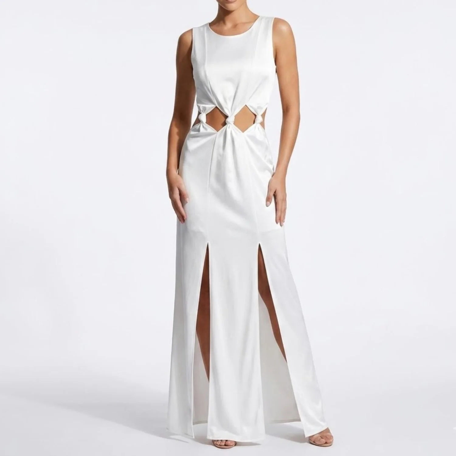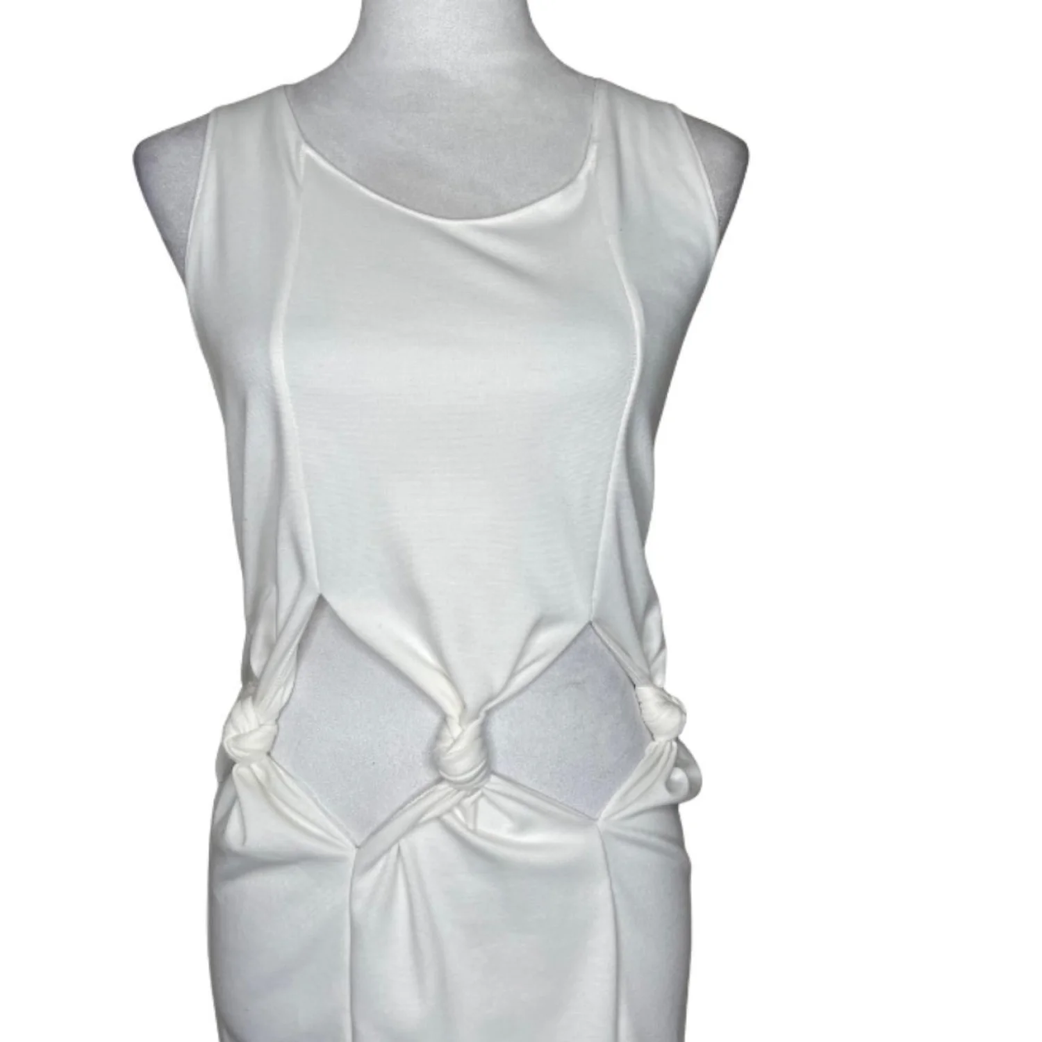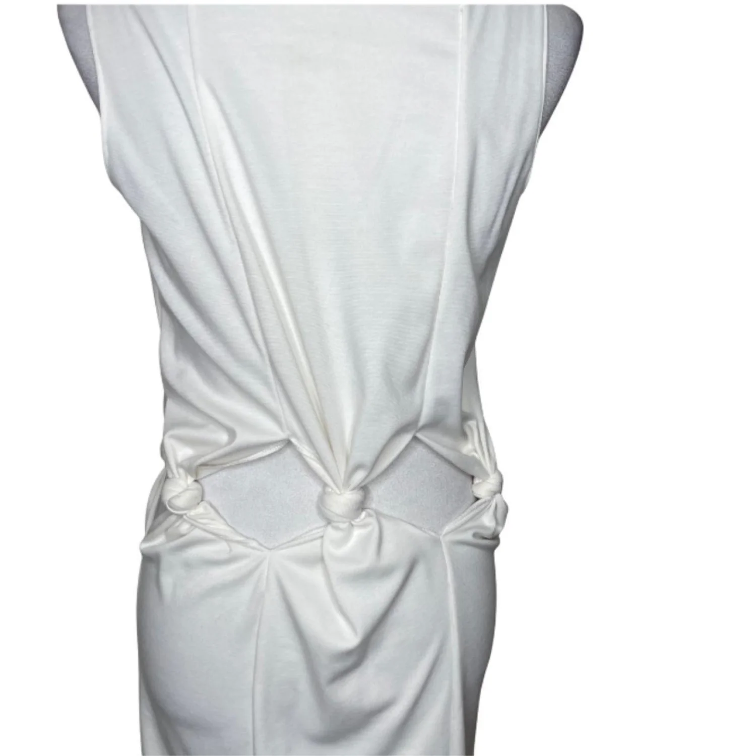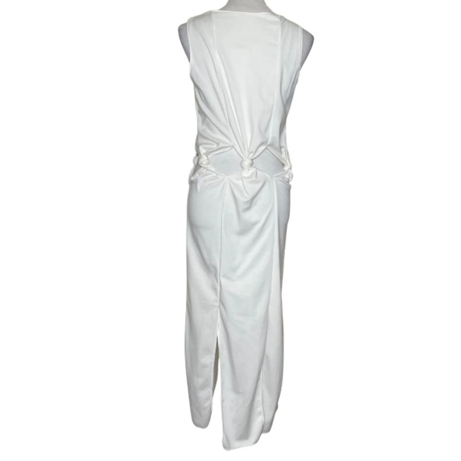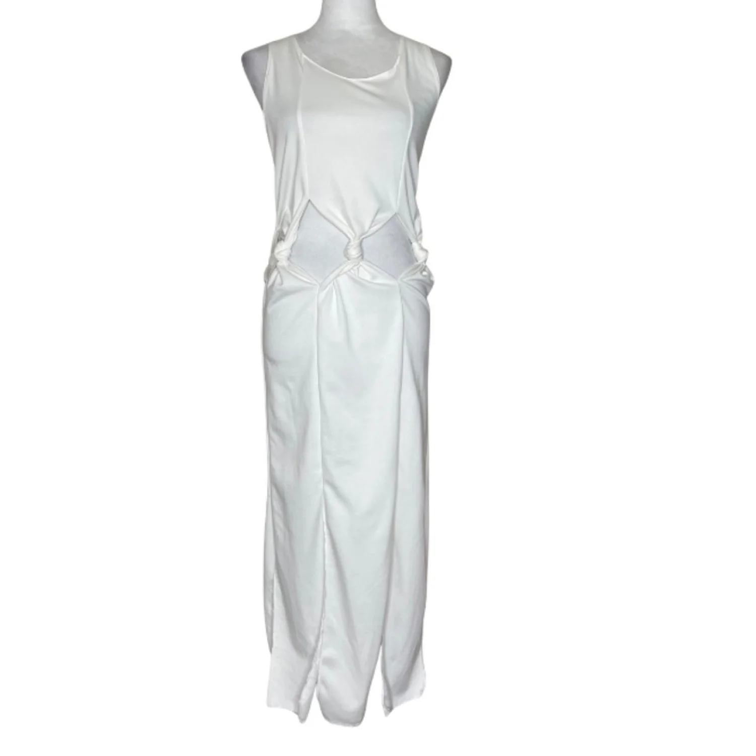 Avant Garde Knotted Waist Cutout Maxi Dress Sleeveless Sci-Fi Minimalist White S