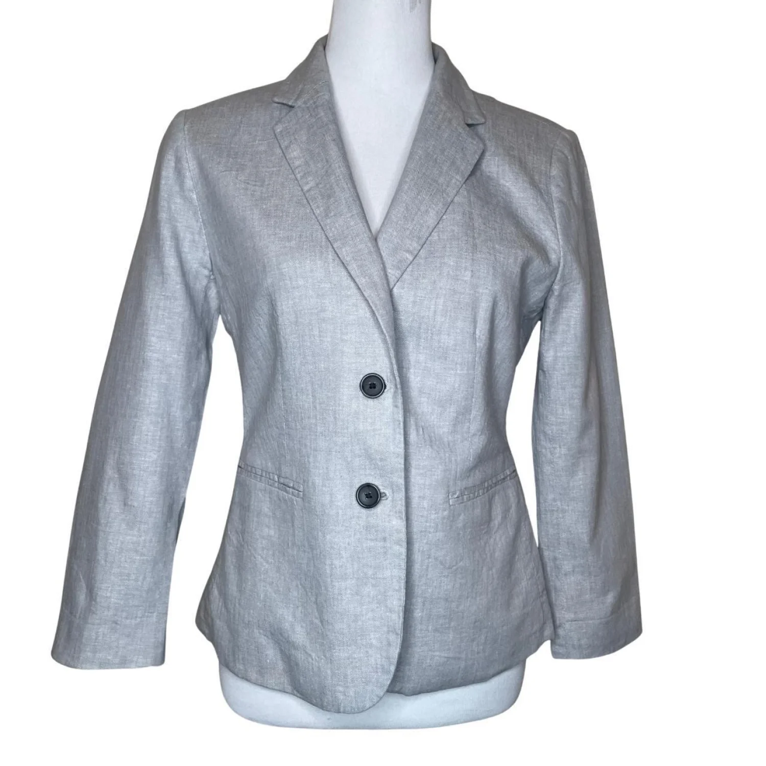 Banana Republic Linen Blend Blazer Size 4 Light Silver Grey 2-Button Tailored