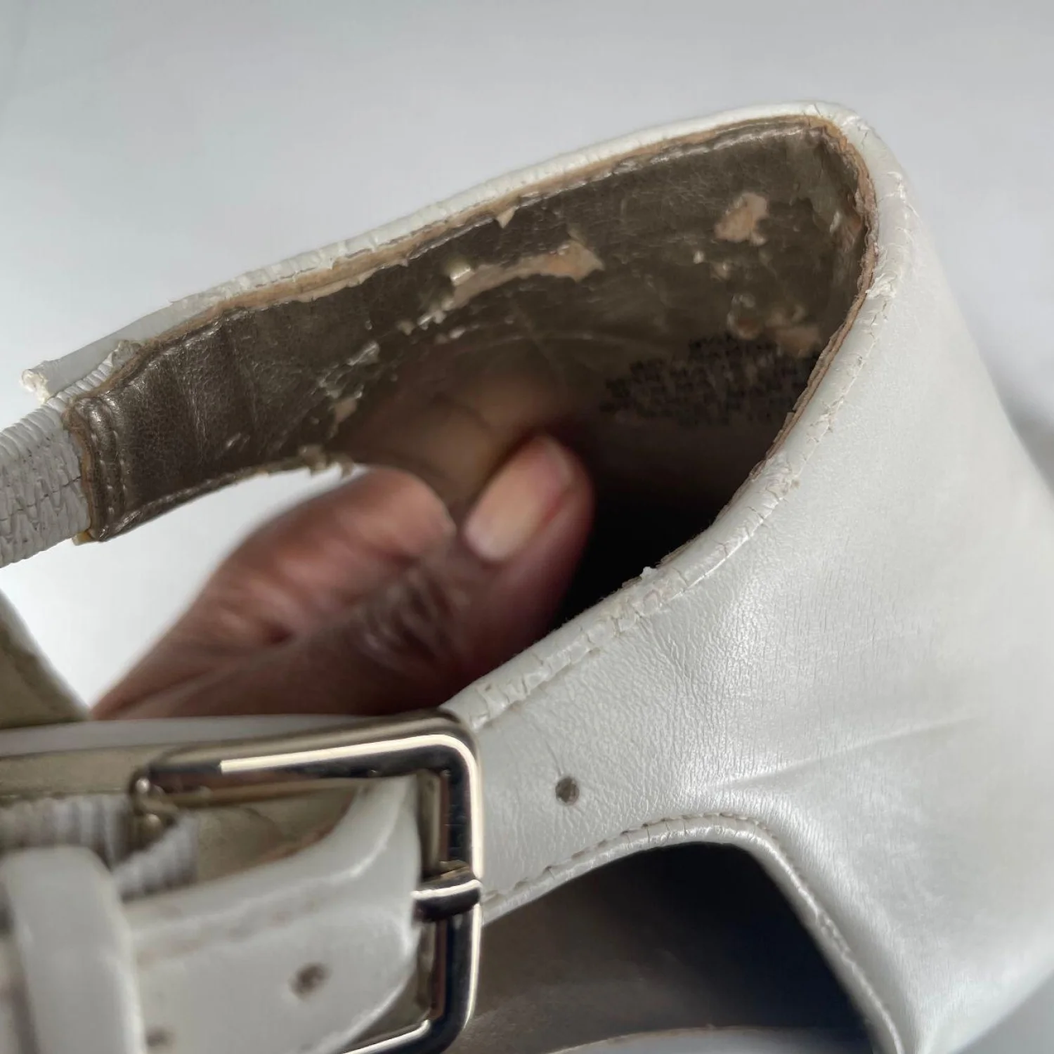 Offers Welcomed🎉 Features: • Style Profile: Neutral Capsule Mature Everyday Career officesiren Career, Academia, Professional contemporary closet staple • Flaws: Slight peeling on inner shoe and discoloration on back heel which is pictured • All measurements are approximate Heel Height: 3' Happy to answer your questions! Super Fast Shipper!