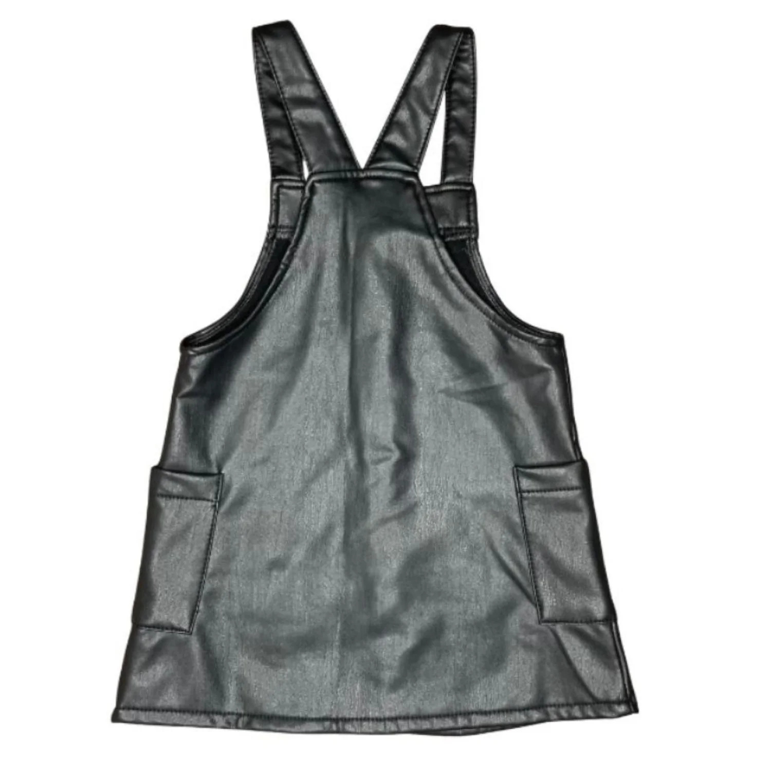 Barbie by Mattel Girl's Black Faux Leather‎ Snap Front Jumpsuit Dress Size 2T