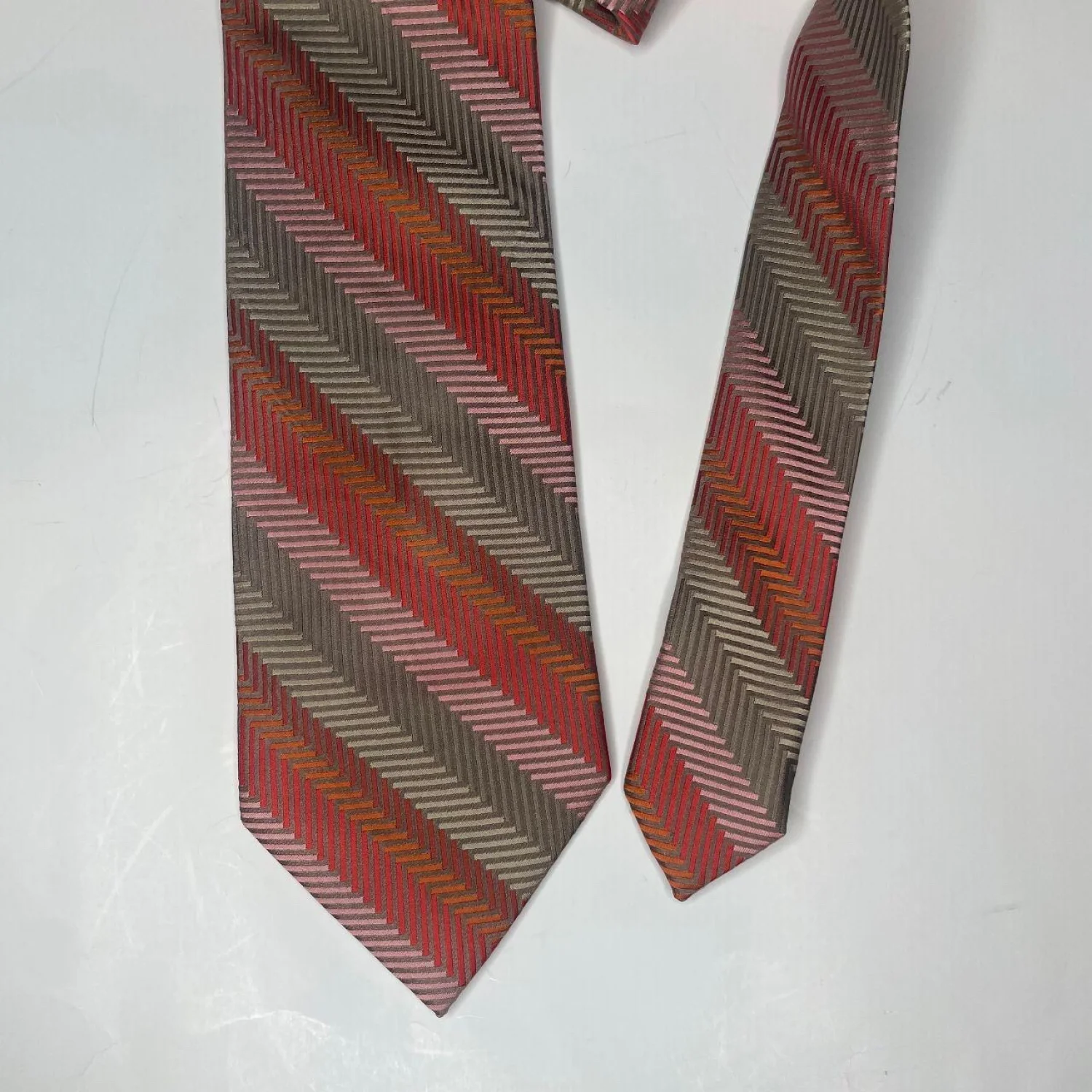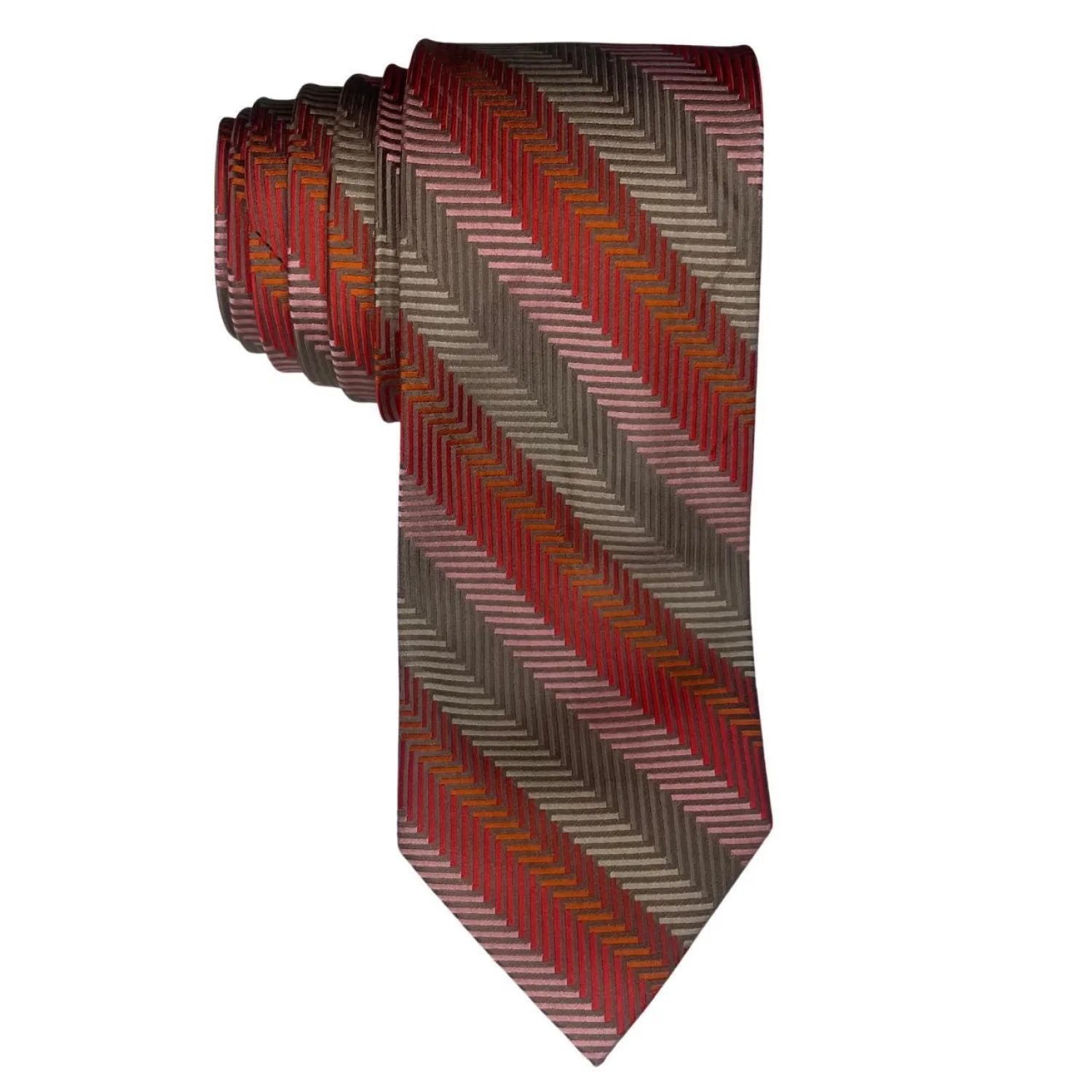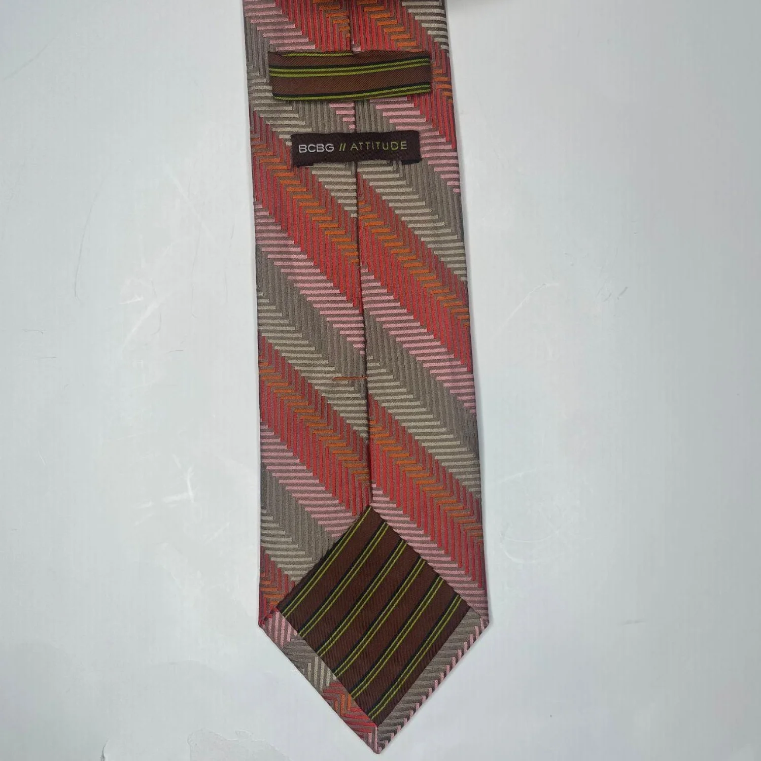 BCBG Attitude 100% Silk Tie Red Pink Grey Chevron Herringbone Hand Sewn