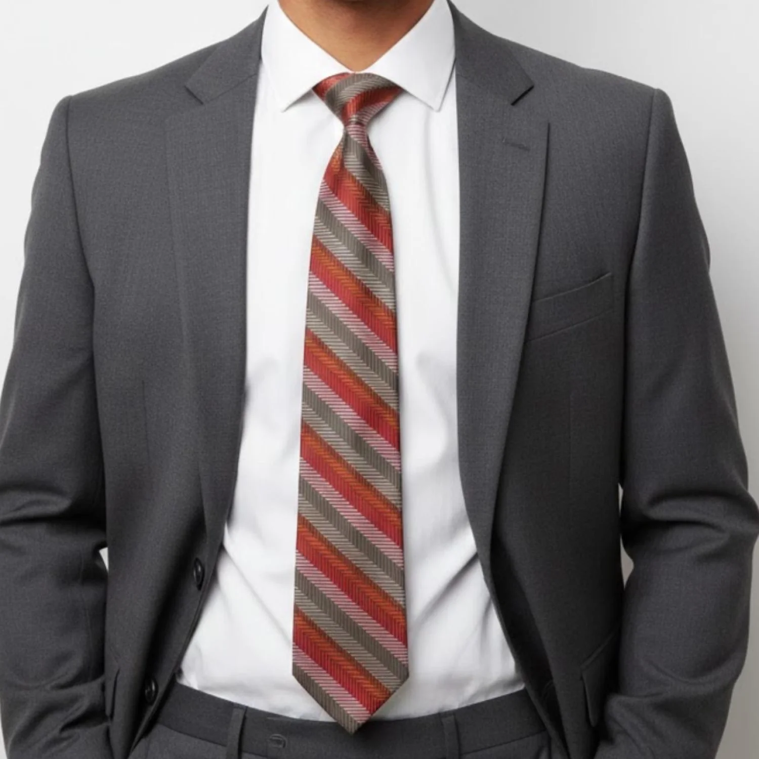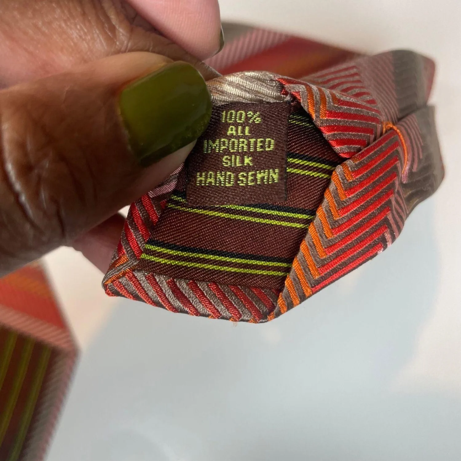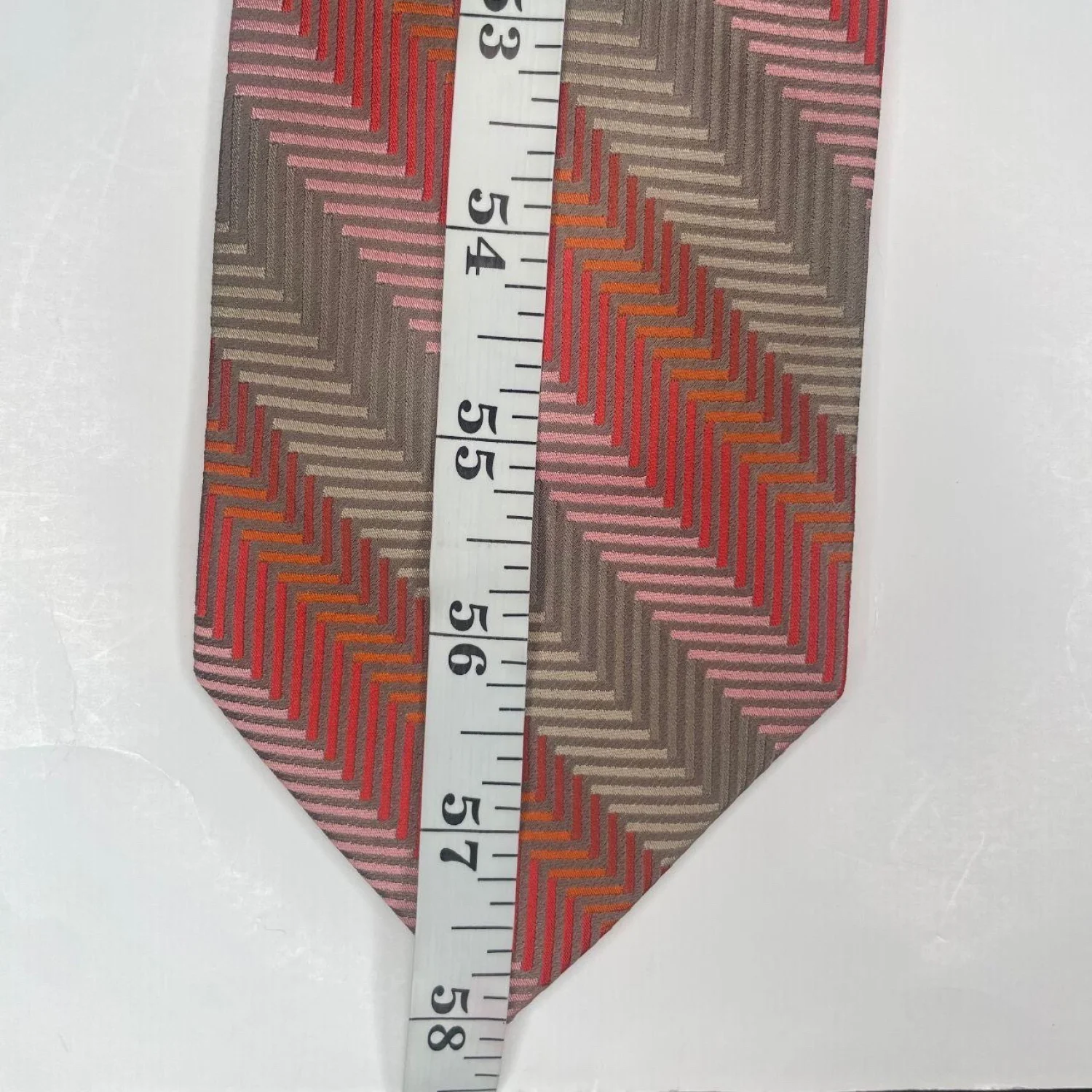 BCBG Attitude 100% Silk Tie Red Pink Grey Chevron Herringbone Hand Sewn