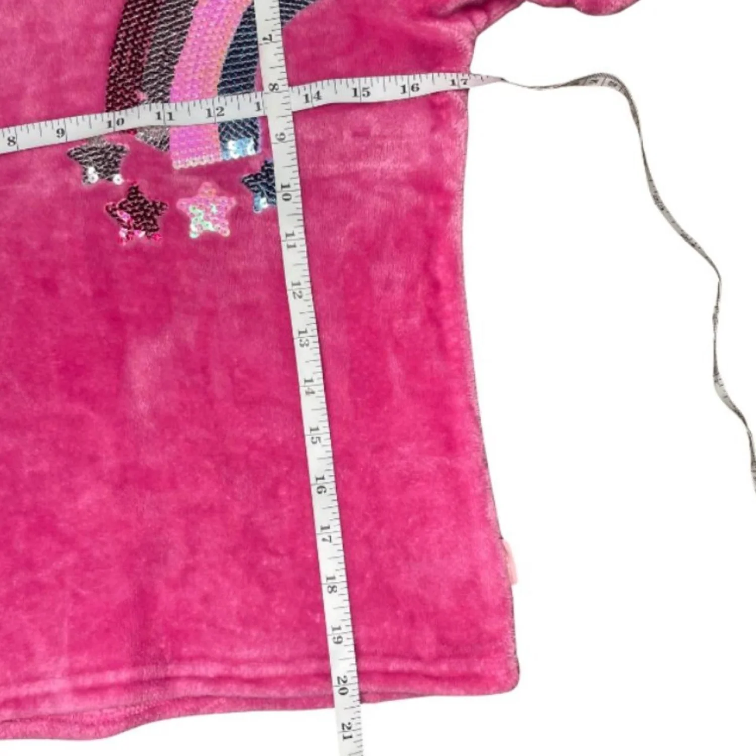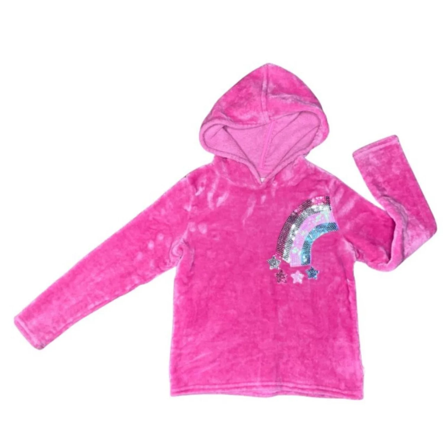 BCBG Girl Pink Fur Fleece Rainbow Sequin Hooded Sweatshirt Medium 10/12 Cozy