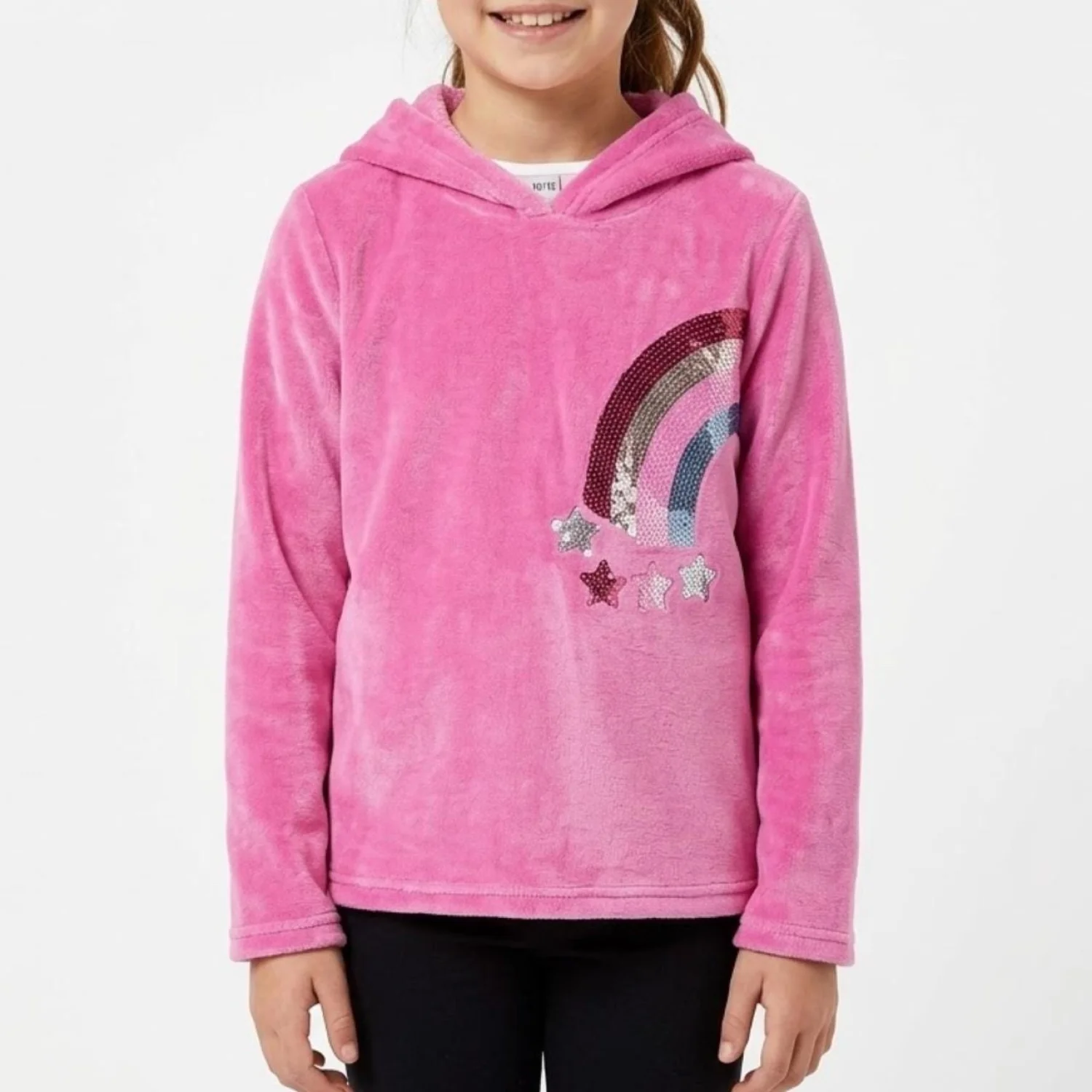 BCBG Girls Pink Sequin Rainbow Star Hoodie Plush Fleece Soft Girl Kidcore M 10/12
