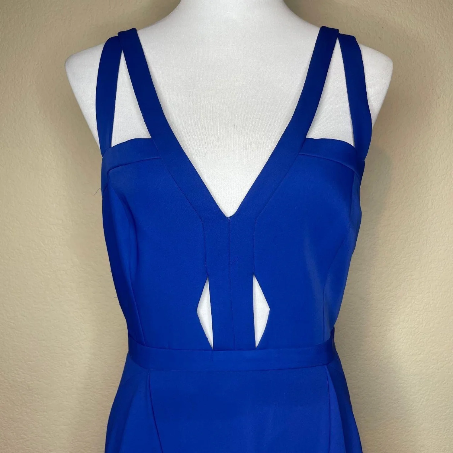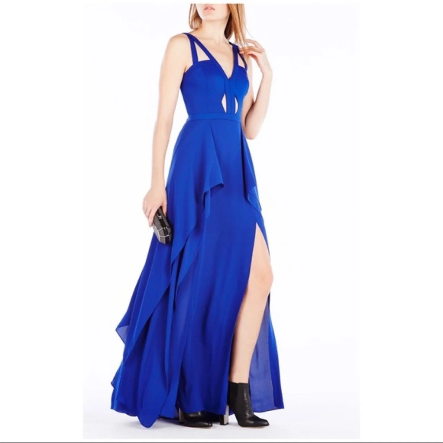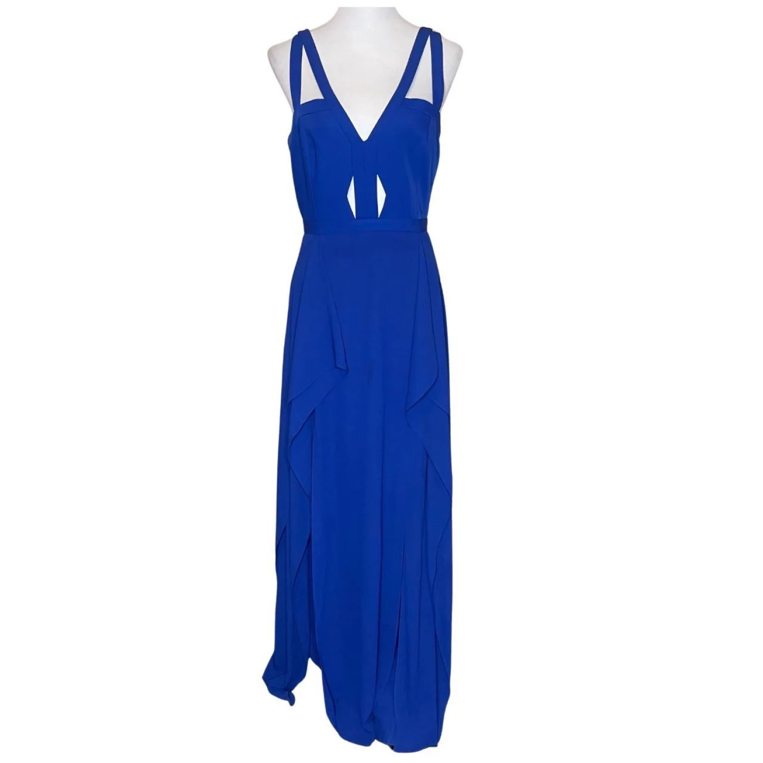BCBGMaxAzria Royal Blue Cut Out Maxi Dress Ruffle Formal Gown Size 10