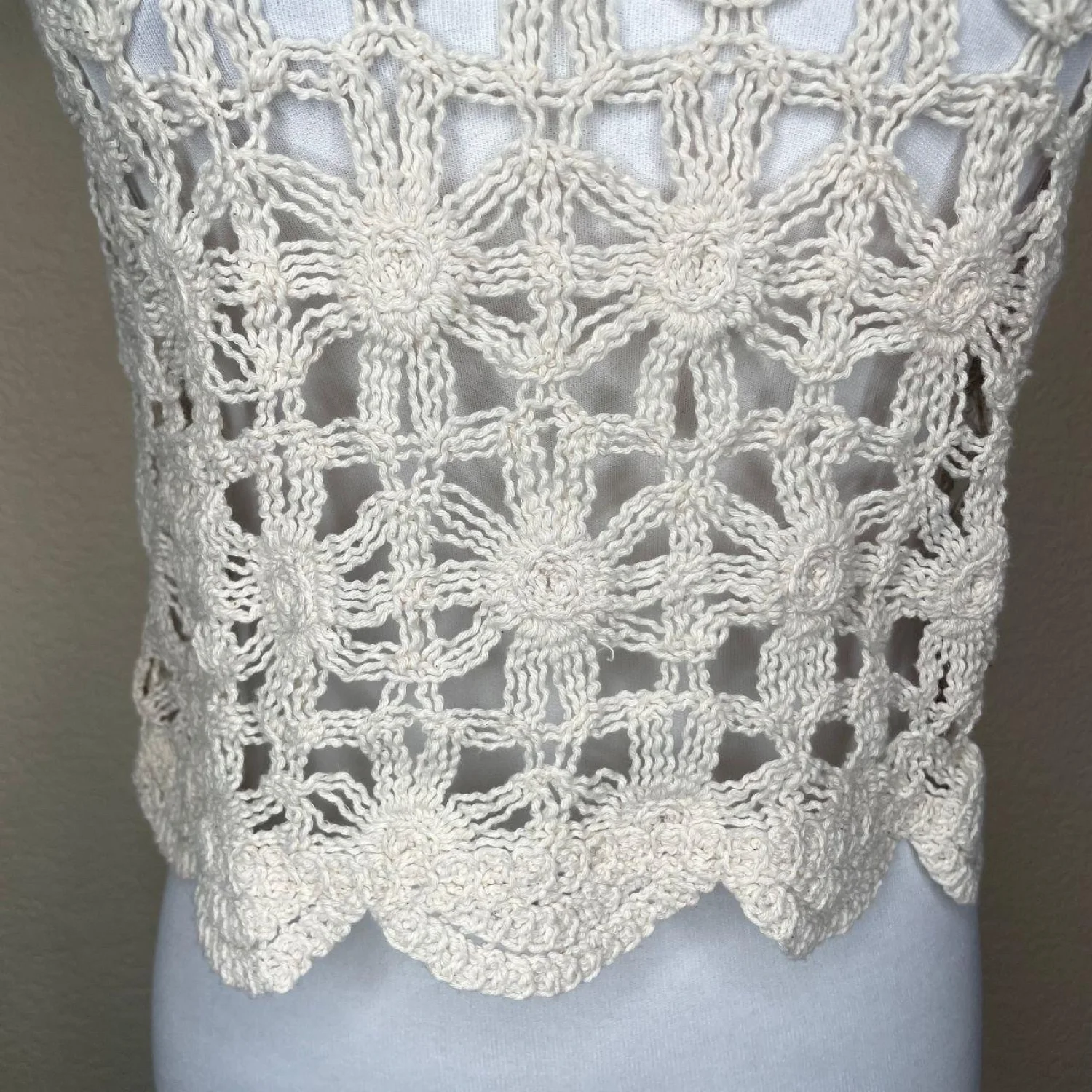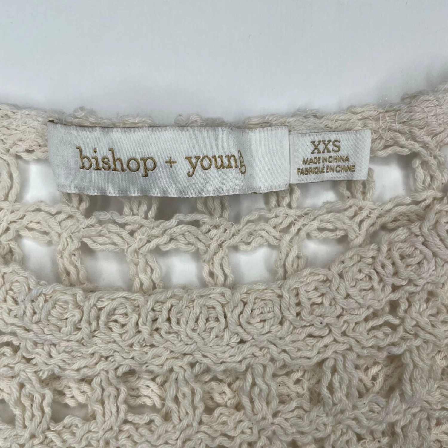Bishop + Young Ivory 100% Cotton Crochet Eyelet Flutter Sleeve Crop Top XXS Features: Elevate your boho wardrobe with this beautiful Bishop + Young crochet top. Featuring a delicate floral knit pattern and romantic eyelet ruffle sleeves, this cropped silhouette is perfect for festivals, beach days, or pairing with high-waisted denim. Made from 100% cotton with a comfortable, slightly stretchy lining. Excellent pre-loved condition. • Style Profile: Bohemian, Cottagecore, Festival, Coquette, Coastal Grandmother, Romantic, Prairie, Summer, Shabby Chic, Ethereal • Flaws: No Holes, stains, or tears (Excellent pre-owned condition) • All measurements are approximate PTP: 15" Length: 18" Happy to answer your questions! Super Fast Shipper!