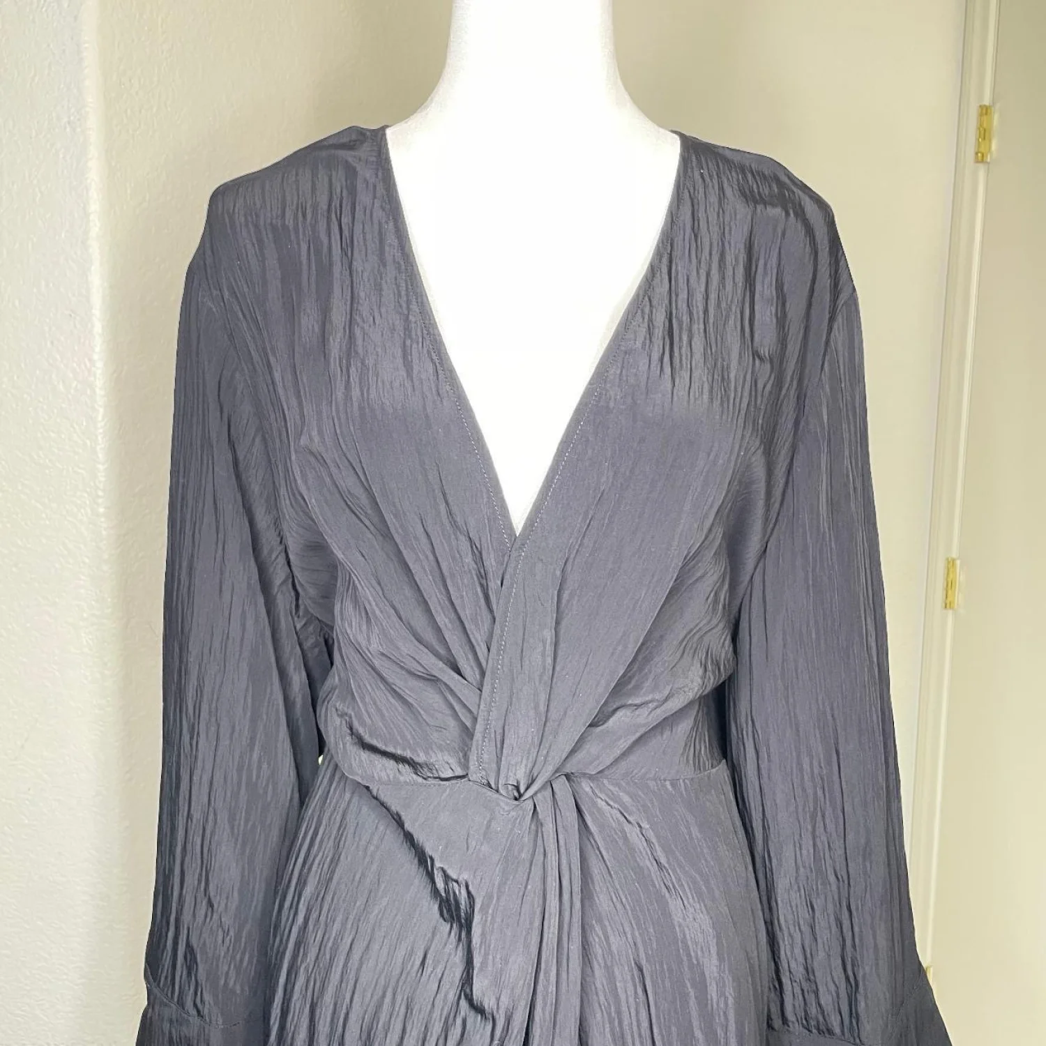 Offers Welcomed 🎉 This elegant black crinkle dress features long sleeves, a deep V-neckline, and a flattering wrap design that ties at the waist. Made from lightweight fabric, it's perfect for both casual and formal occasions. The dress comes in an XL size, ensuring a comfortable fit. #longdress #blackdress #eveningwear