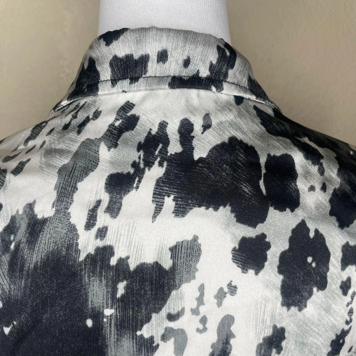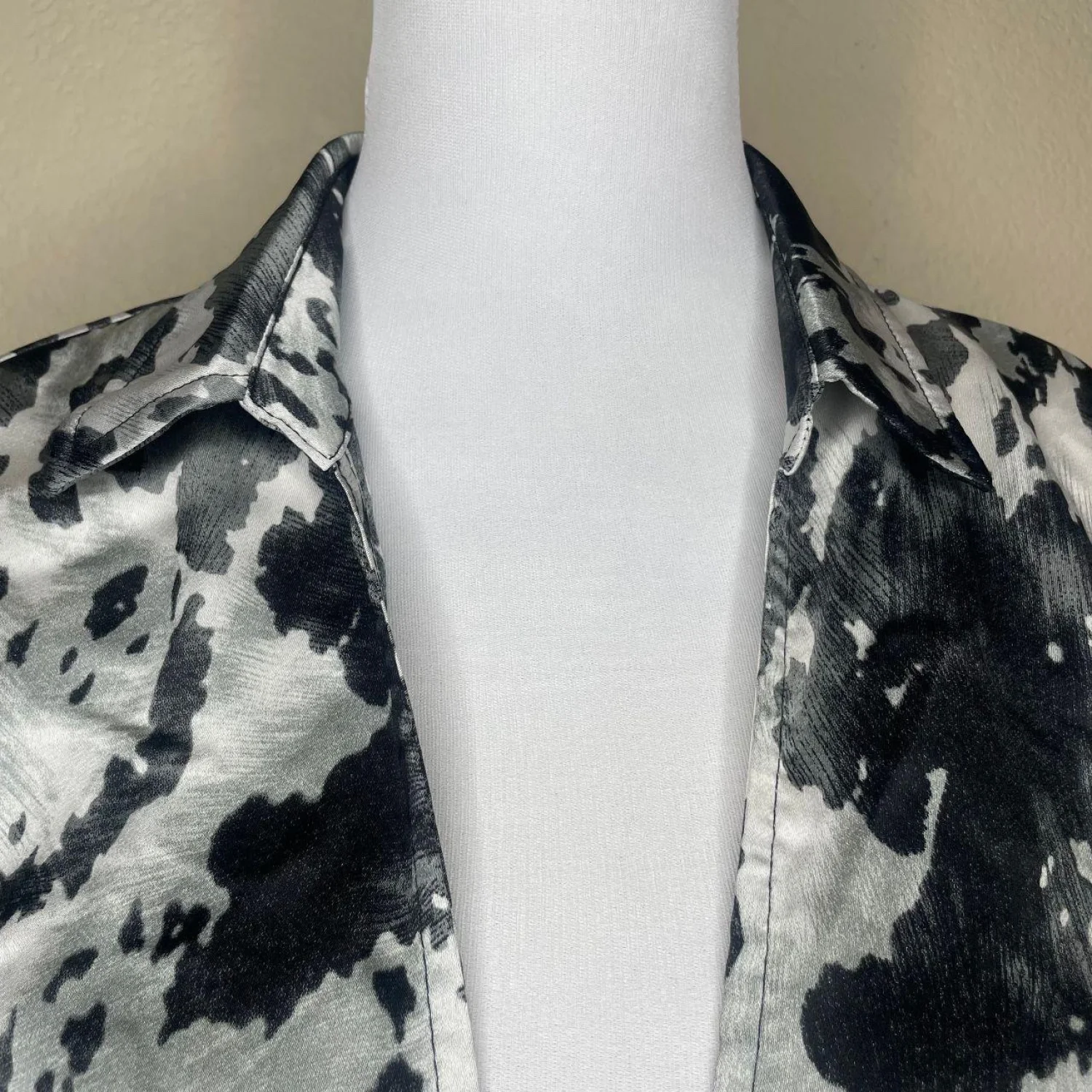 Blue B Collection Mettalic Open Front Collared Tie Long Sleeve Blouse Event Sz S