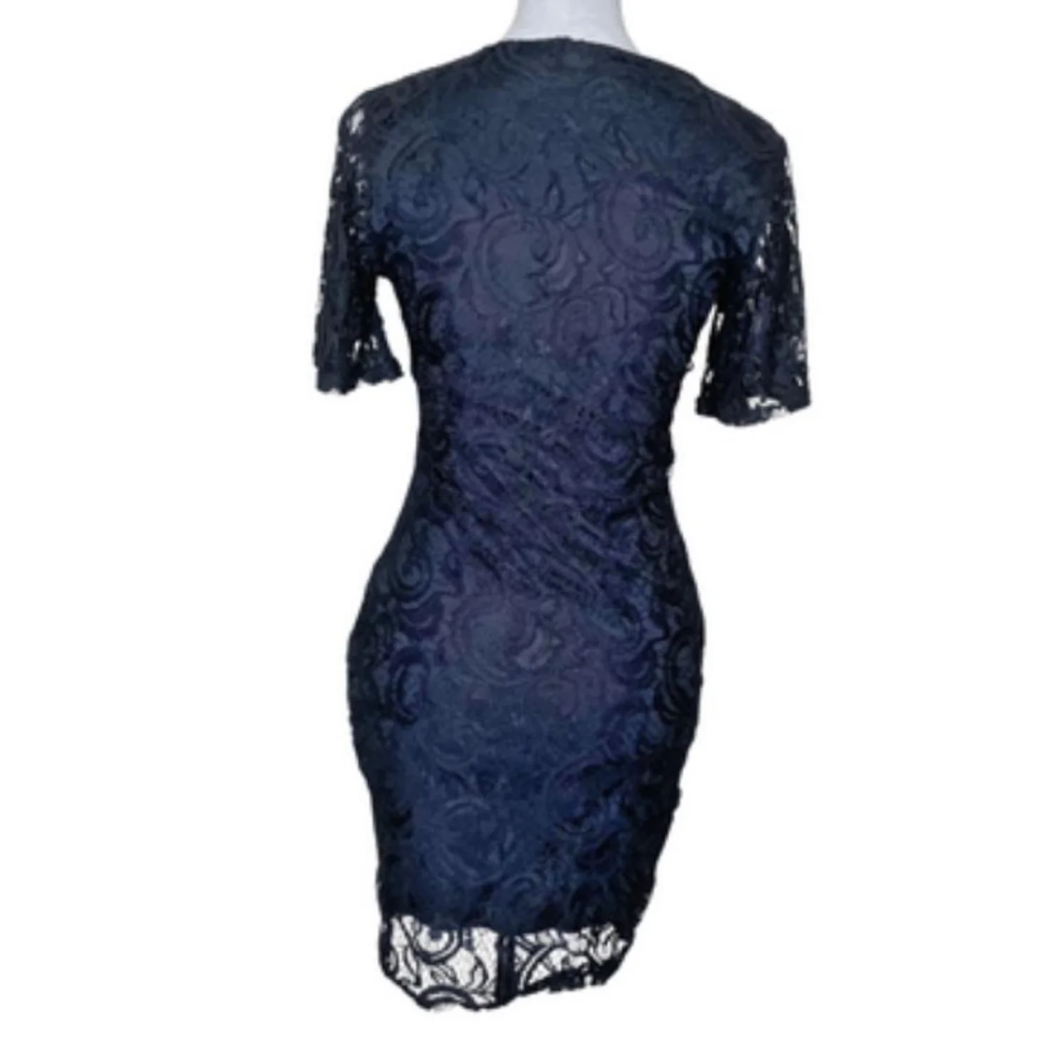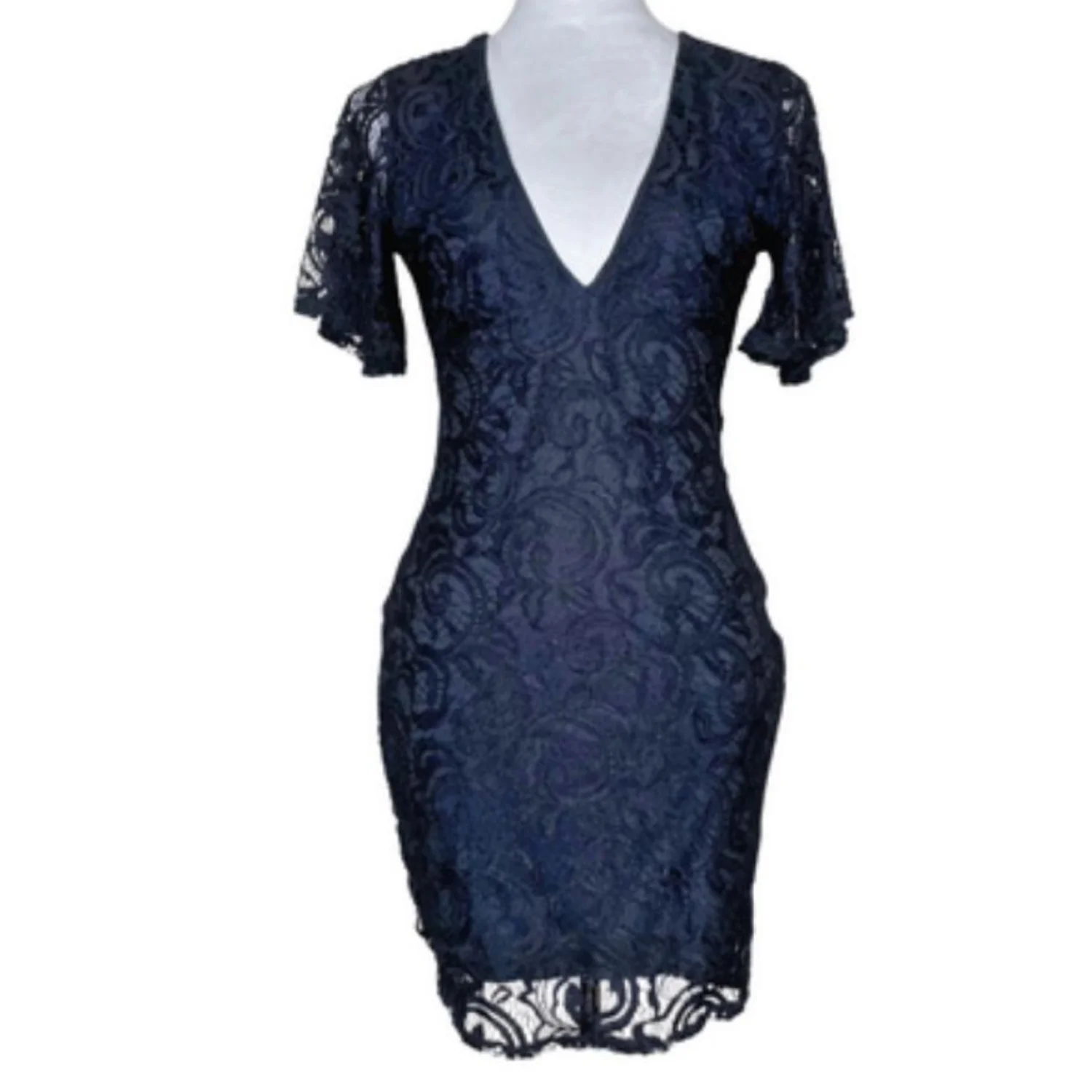 Boohoo Night Black Lace V-Neck Mini Dress Short Sleeve Size US 8 UK 12 Party Features: Stunning Boohoo Night mini dress featuring intricate floral lace overlay and a scalloped eyelash hem. Flattering V-neckline and sheer short sleeves make it perfect for date night, cocktail parties, or a night out. Lightweight with a comfortable lining. • Style Profile: coquette, cocktail, night out, lace, gothic, wedding guest, chic, romantic, feminine, party • Flaws: No Holes, stains, or tears • Please see the photos for measurements (in inches). PTP: 15.5' Length: 34' Happy to answer your questions! Super Fast Shipper!