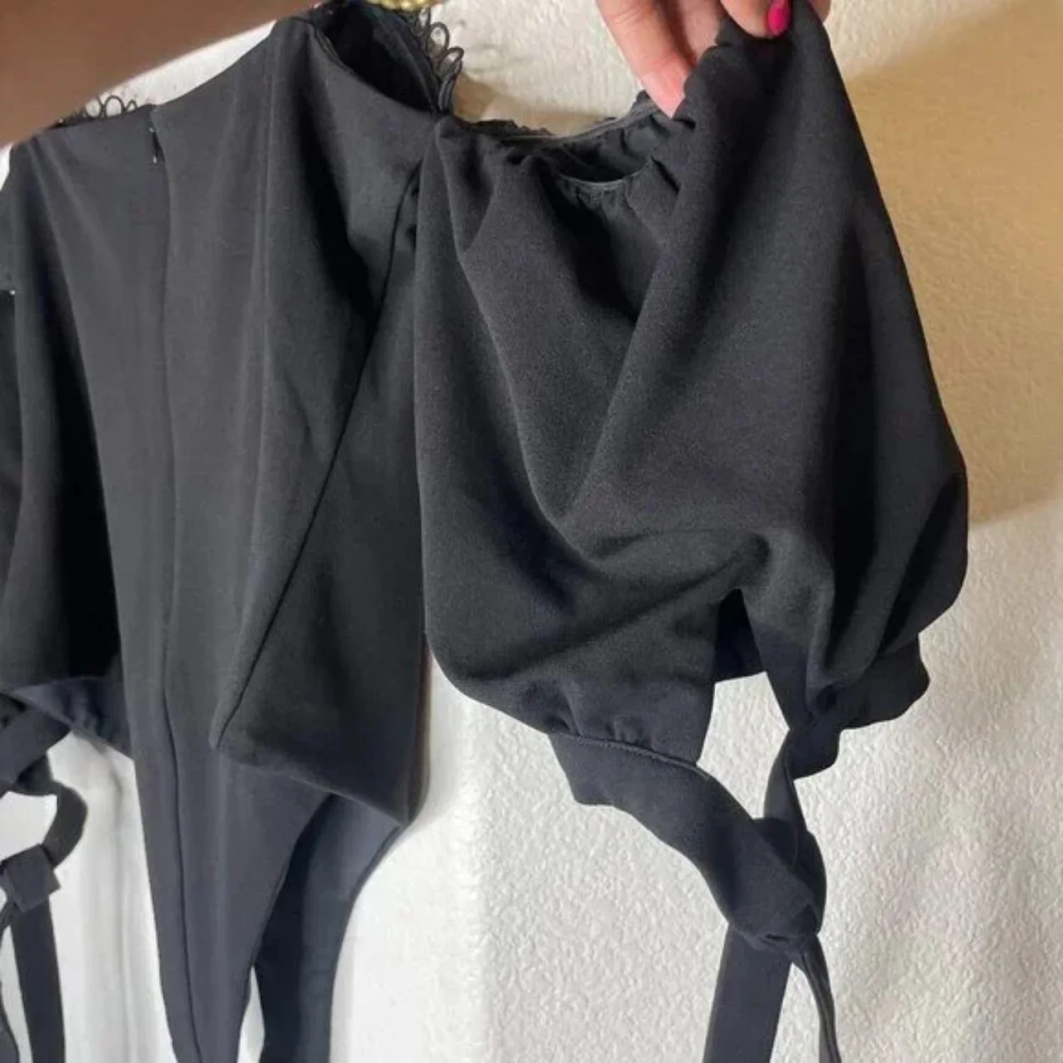 By Egreis Coquette Goth Black Puff Sleeve Off-Shoulder Bodysuit Size L Features: Hardcore romantic energy. This bodysuit features massive, structured puff sleeves with adjustable tie details. The sweetheart neckline is framed by delicate loop lace trim and fixed tank straps for security. It has a sleek, body-conforming fit with a back zipper and a classic thong-cut base to eliminate lines. • Style Profile: Coquette, Goth, Whimsigoth, Regencycore, Dark Romance, Victorian, Party, Night Out, Puff Sleeve, Statement Sleeve • Flaws: No Holes, stains, or tears • Happy to answer your questions! Super Fast Shipper!